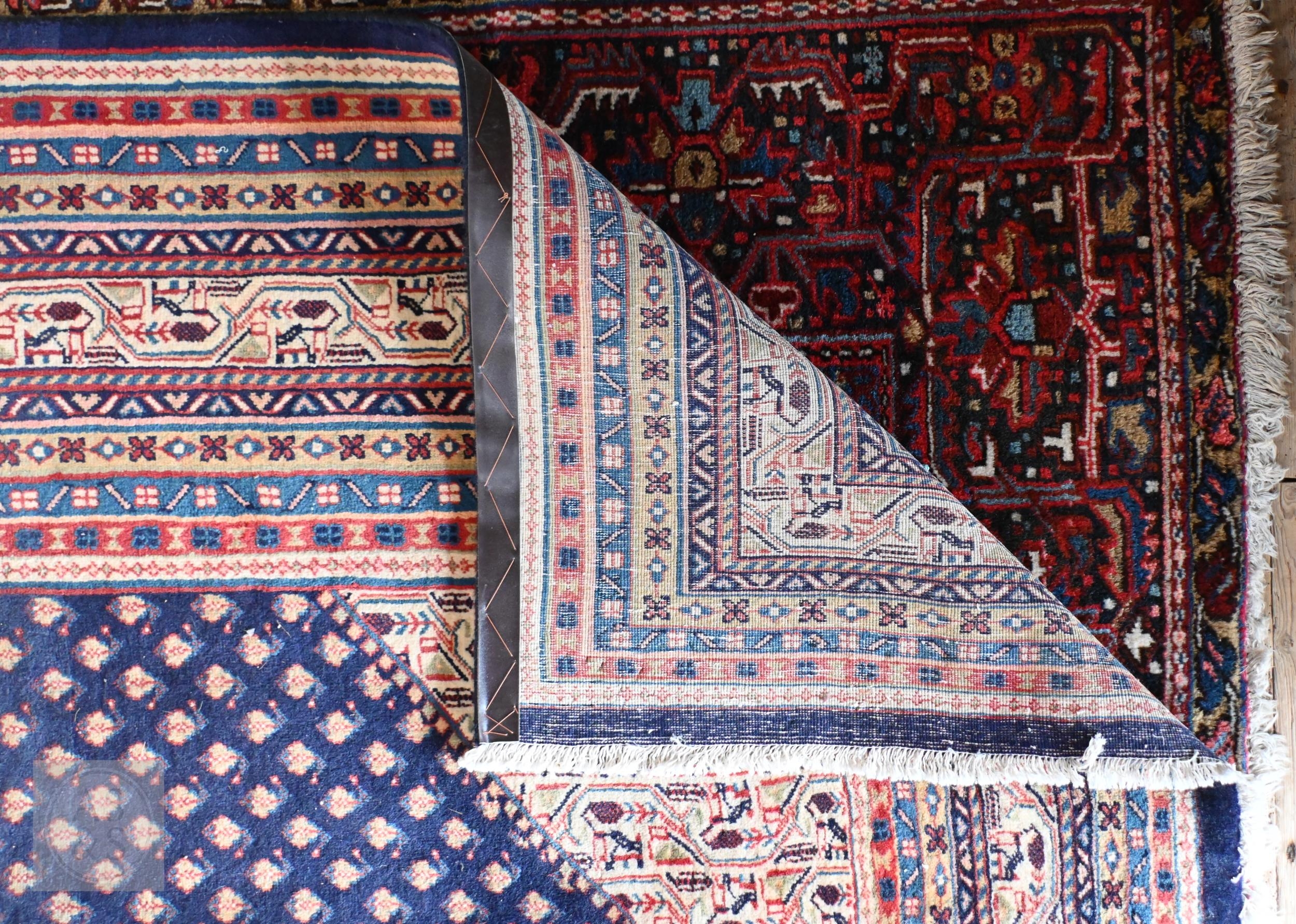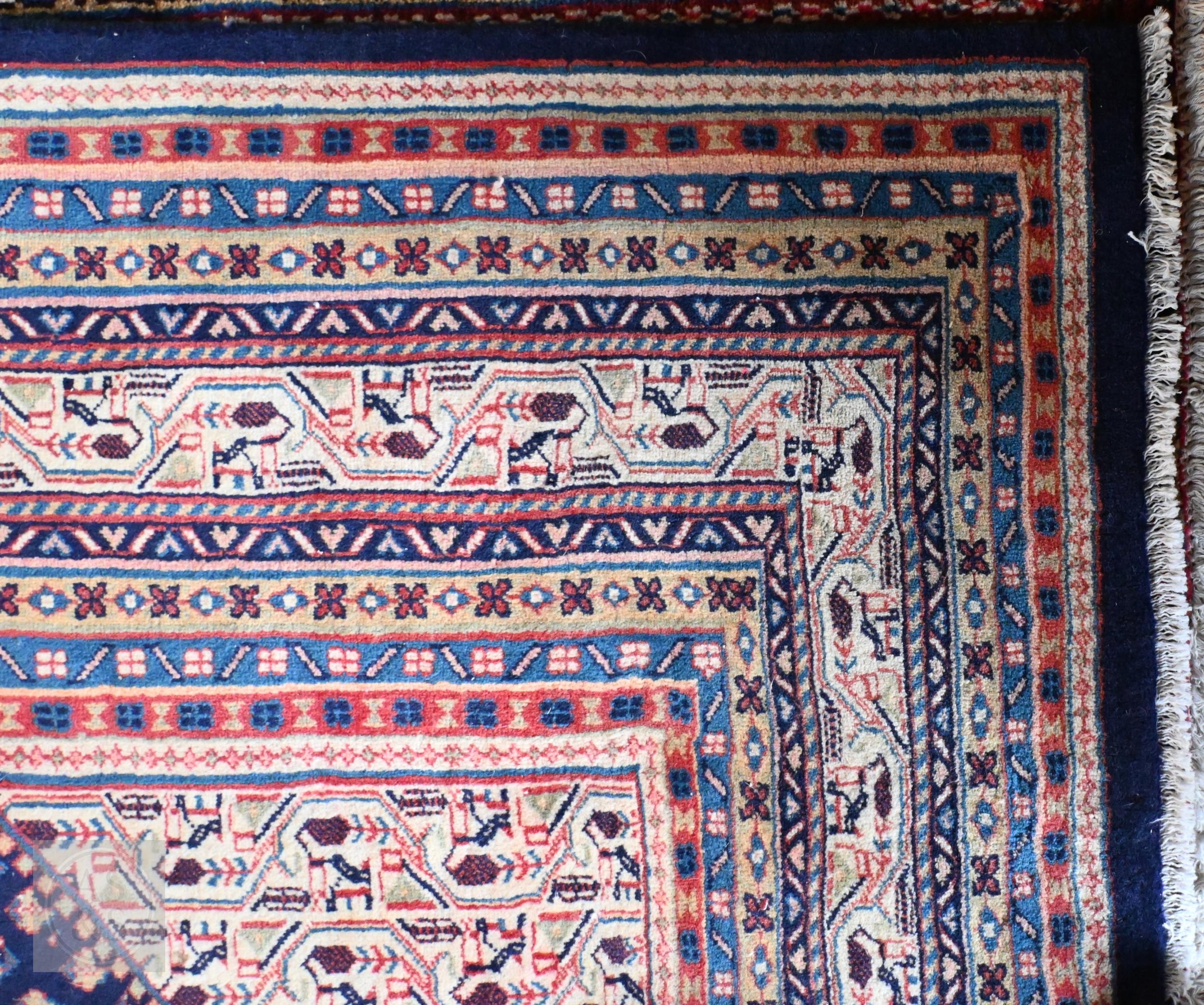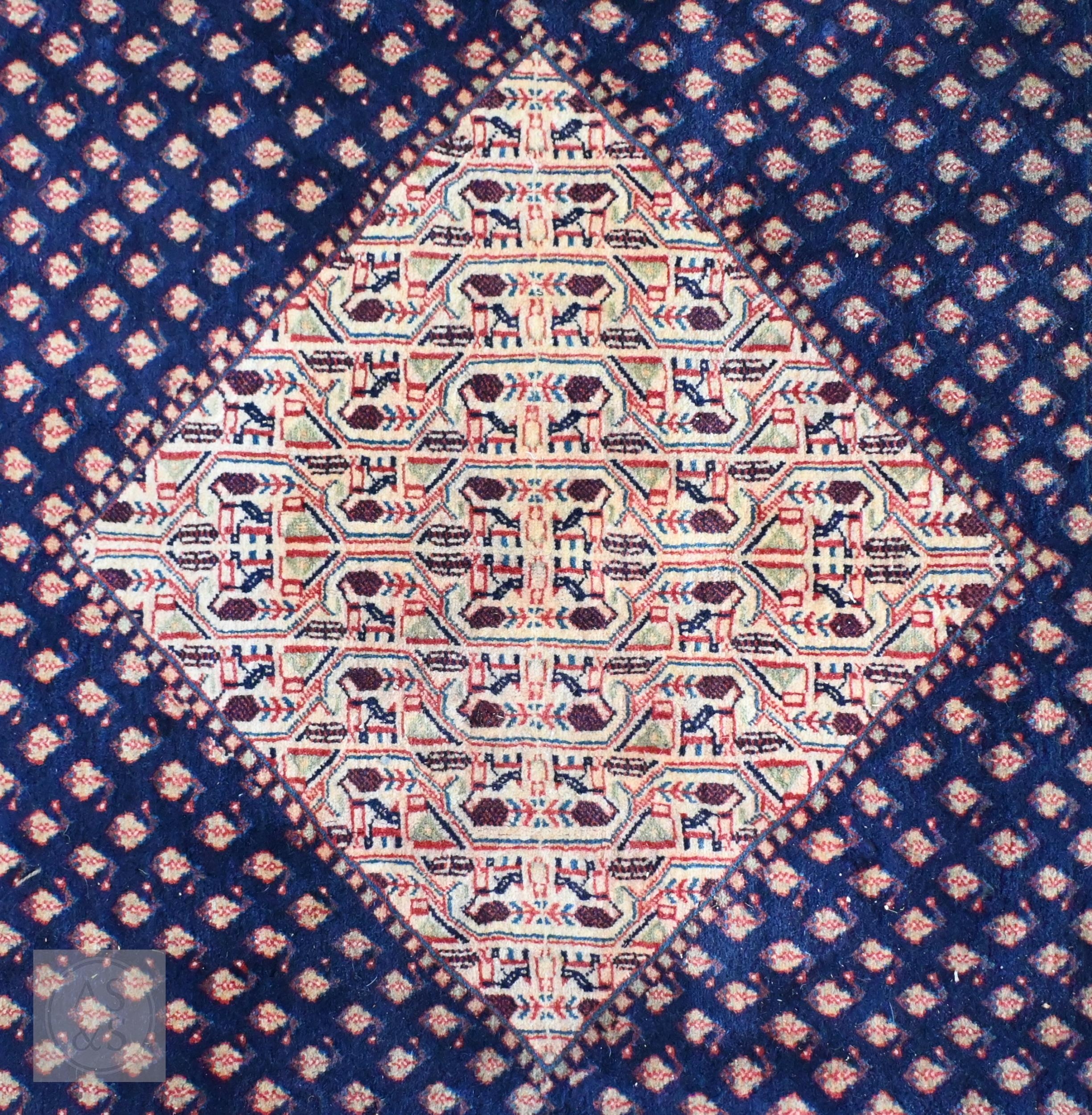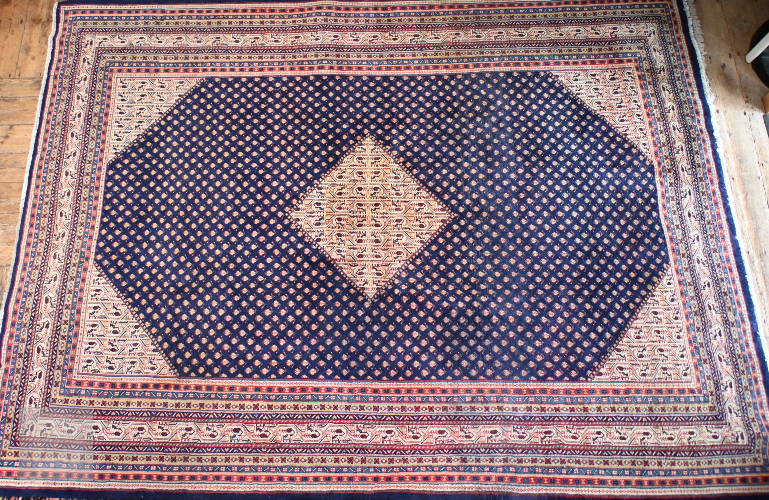 A contemporary Persian Arak carpet, the Boteh design on blue ground, 350 cm x 25 cm