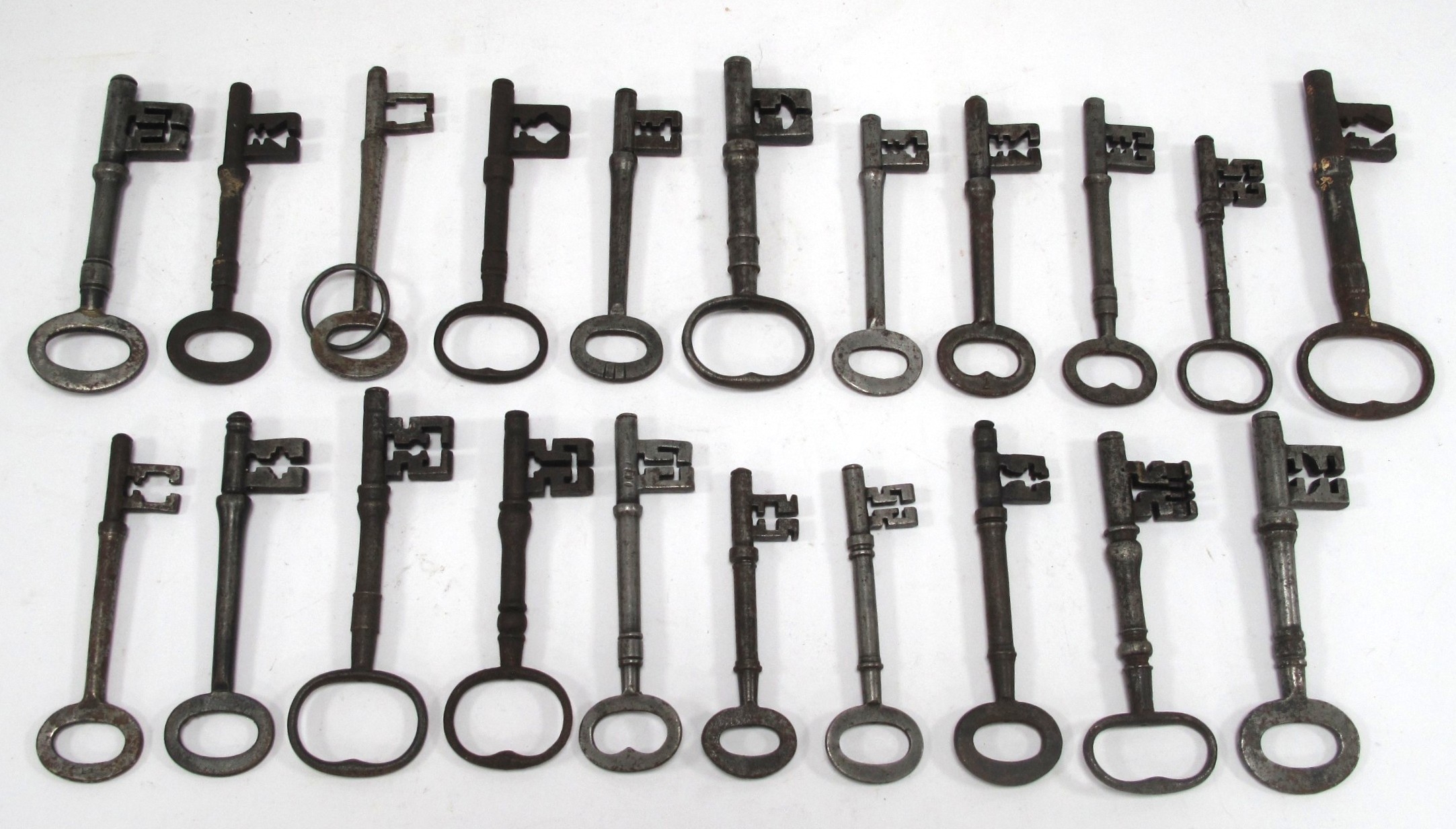 XIX Century Keys, the largest 14cm, approximately twenty-one:- One Tray