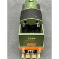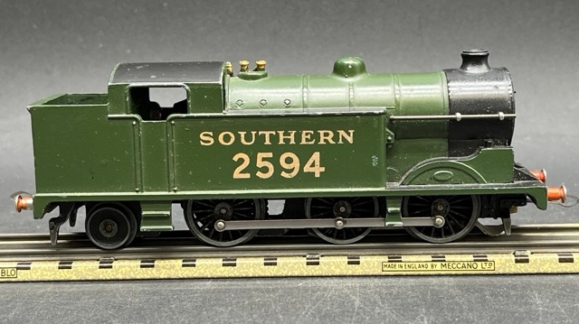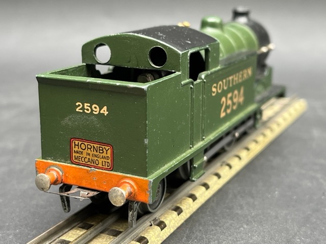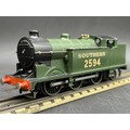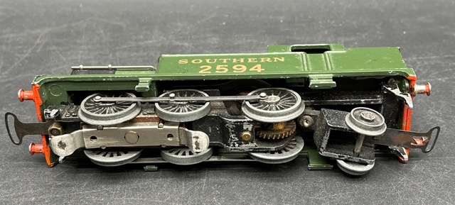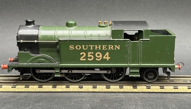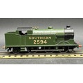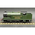 Dark green/black livery with gold SOUTHERN 2594 and pre-war couplings