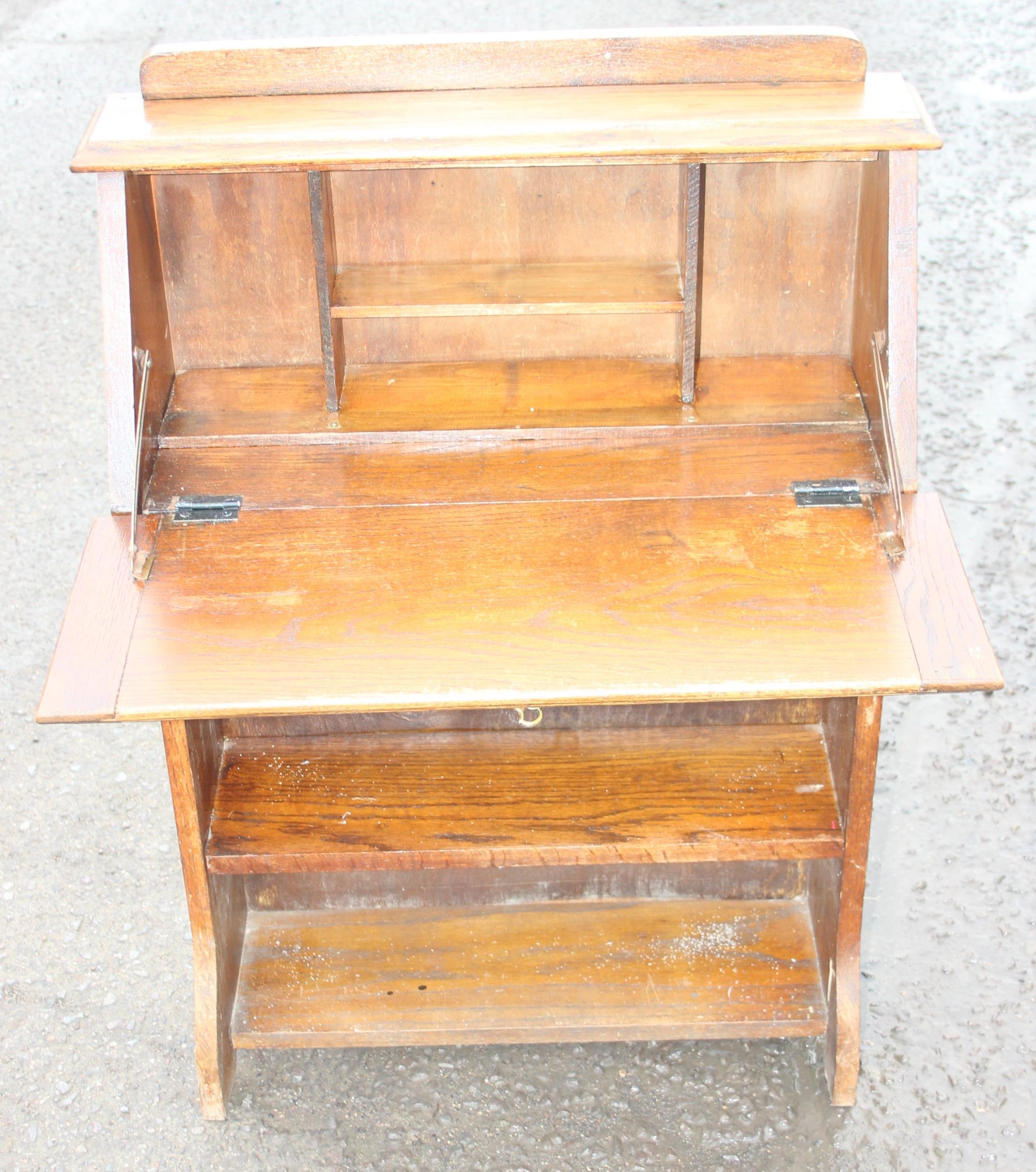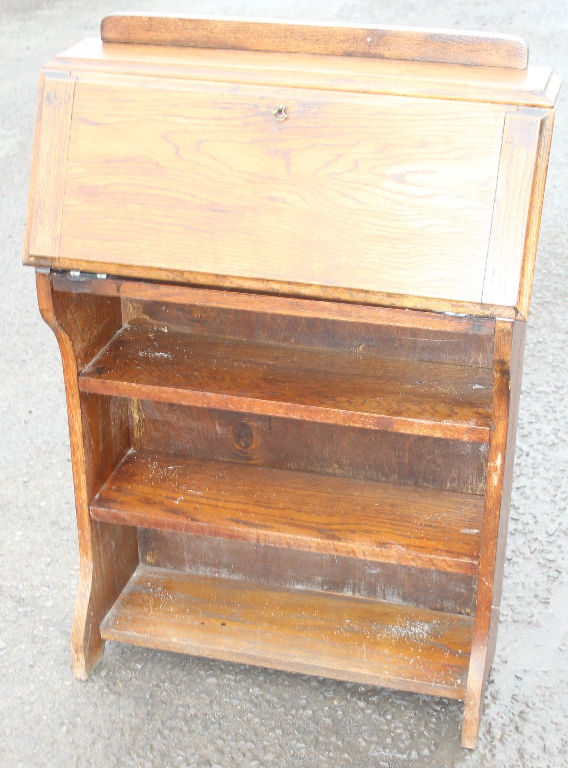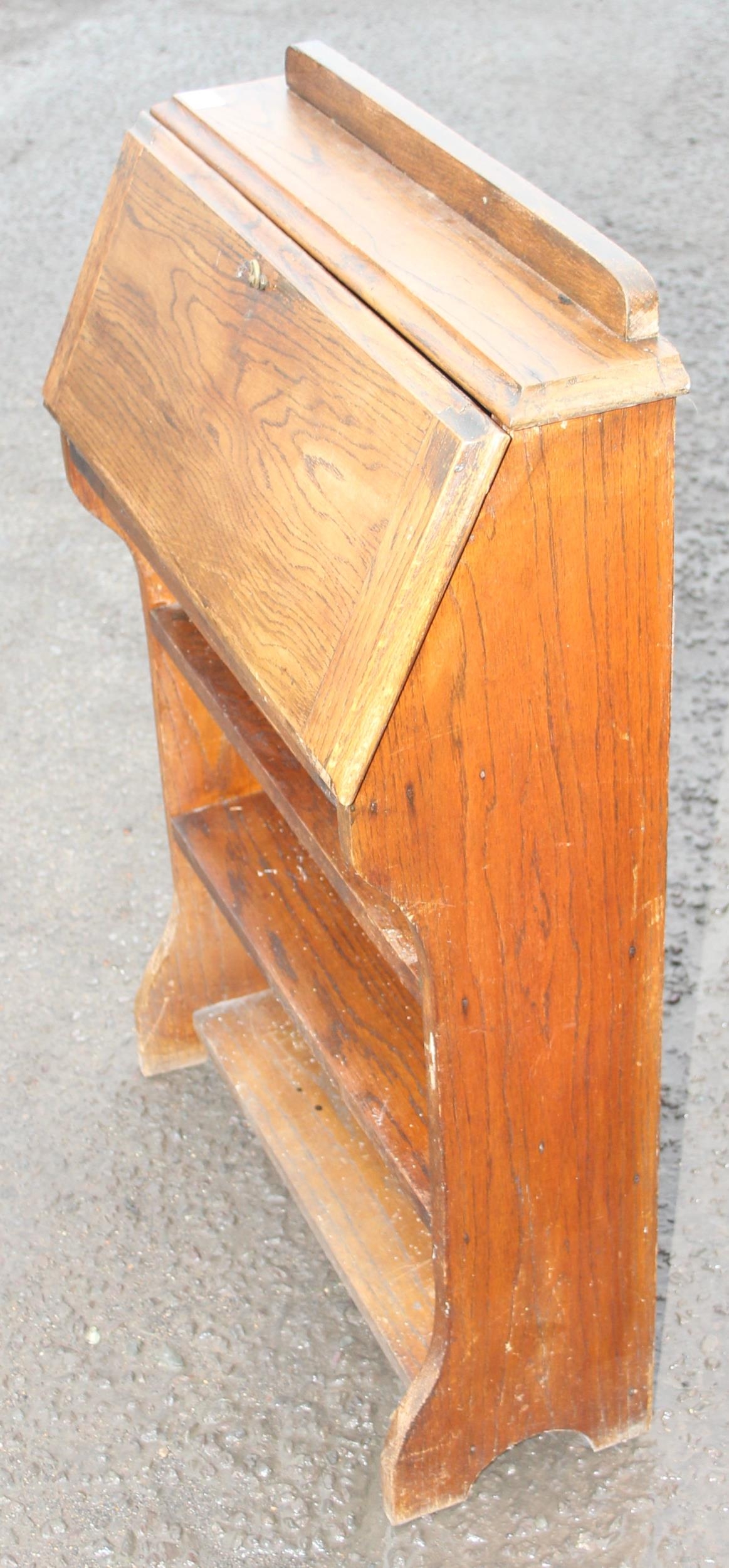 An early 20th century oak student's bureau, approx 66cm wide x 24cm deep x 98cm tall