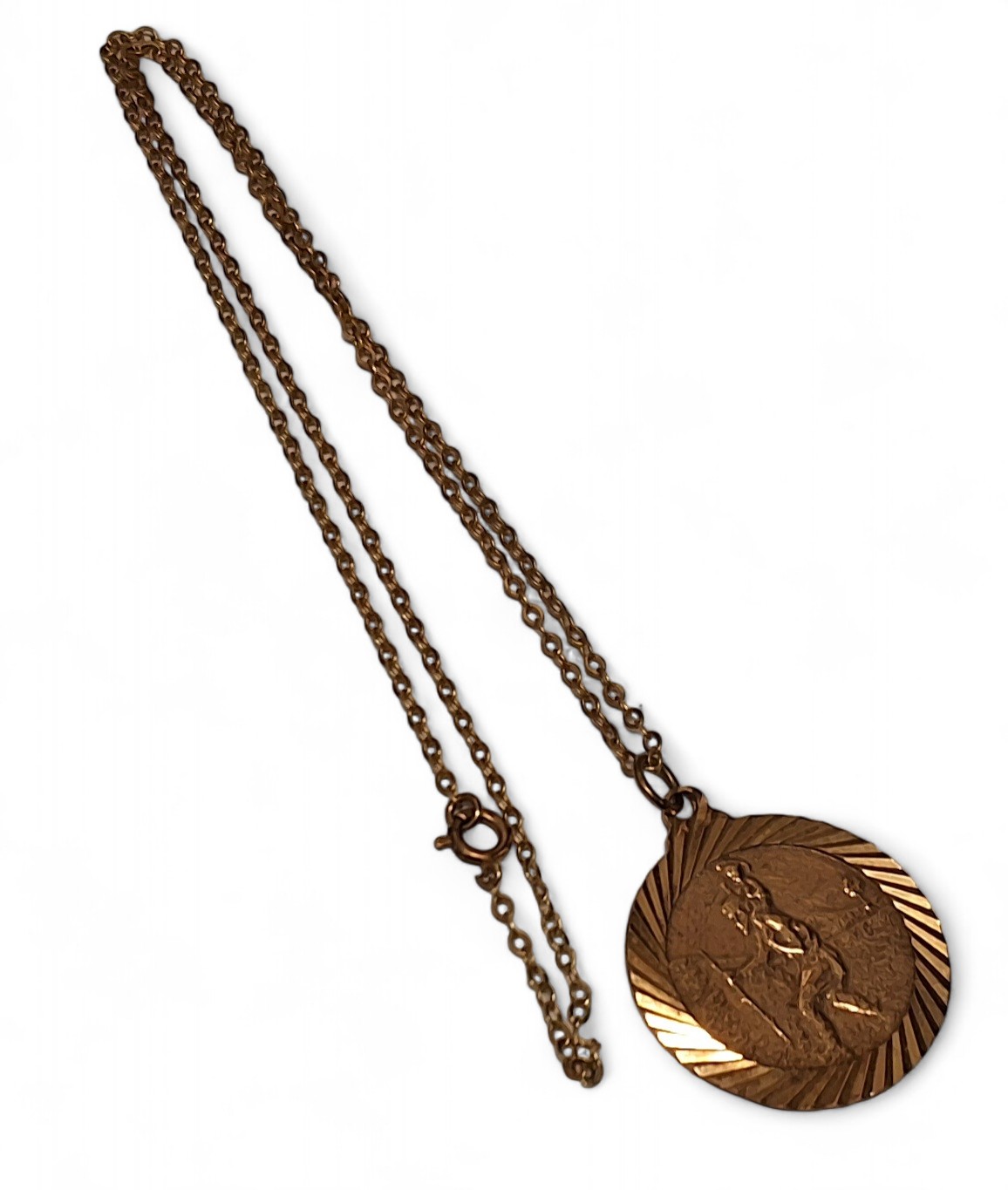 A 9ct gold belcher chain and 9ct gold St. Christopher pendant, 3.9g