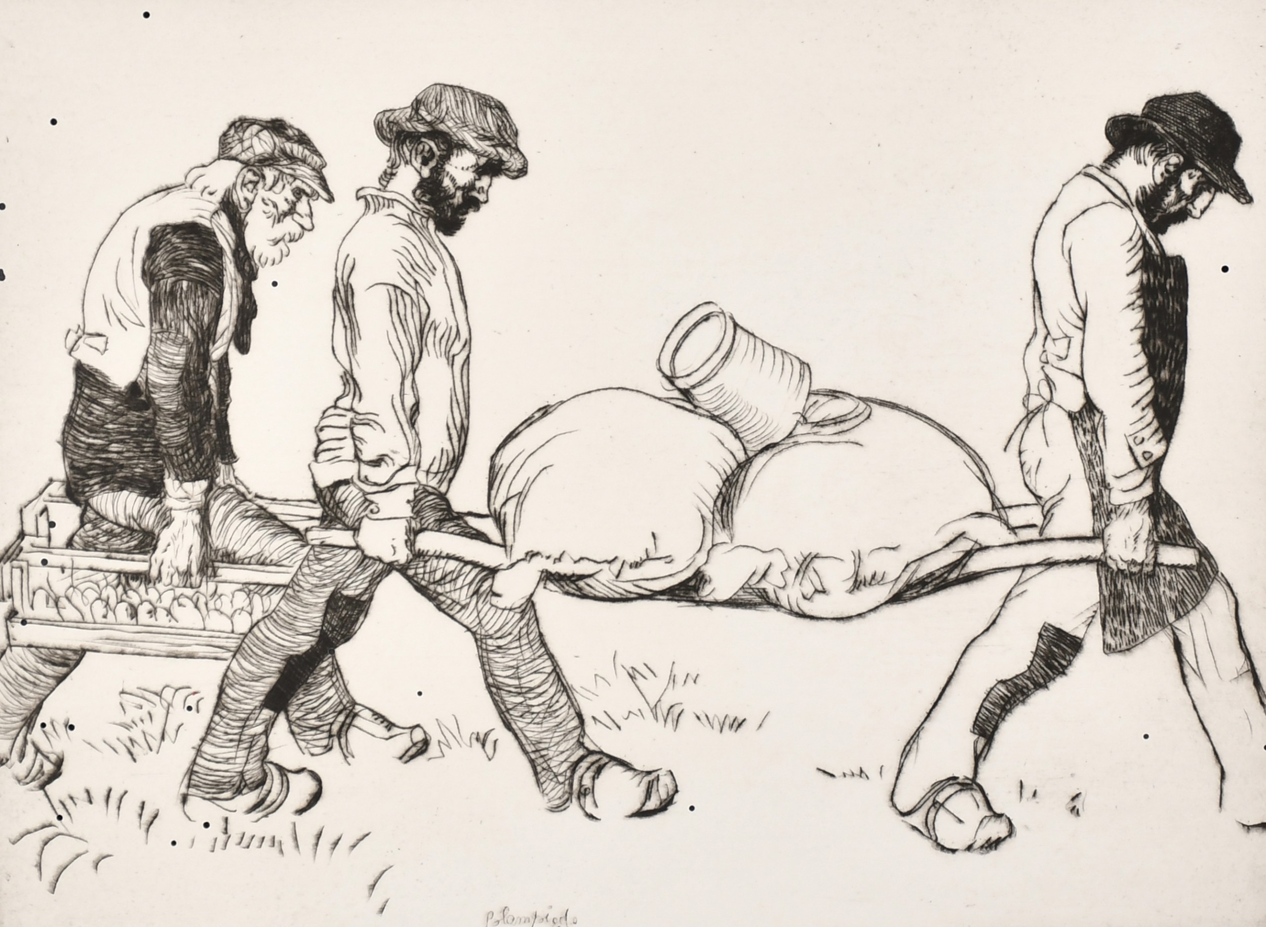 Edmund Blampied (1886-1966) British. "Potato Planters", Etching, Signed in pencil, Unframed, 9.75" x 12.75" (24.8 x 32.4cm)