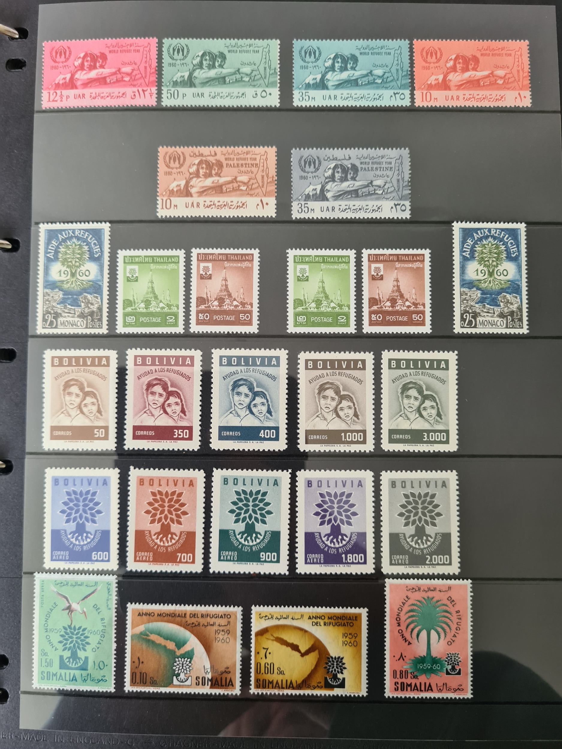 OMNIBUS - 1960 World Refugee Year attractive unmounted mint collection on Hagners mainly extras incl U/M blocks of 4, few covers and FDCs, includes imperf and perf sets, miniature sheets, South America countries incl Peru, Central America incl Panama, Haiti, Ethiopia, Yemen, Bolivia, Vietnam, Libya, slogan cancel on GB OHMS official env., Jordan, Morocco, Iran, Surinam, plus many others, 100s, attractive lot.