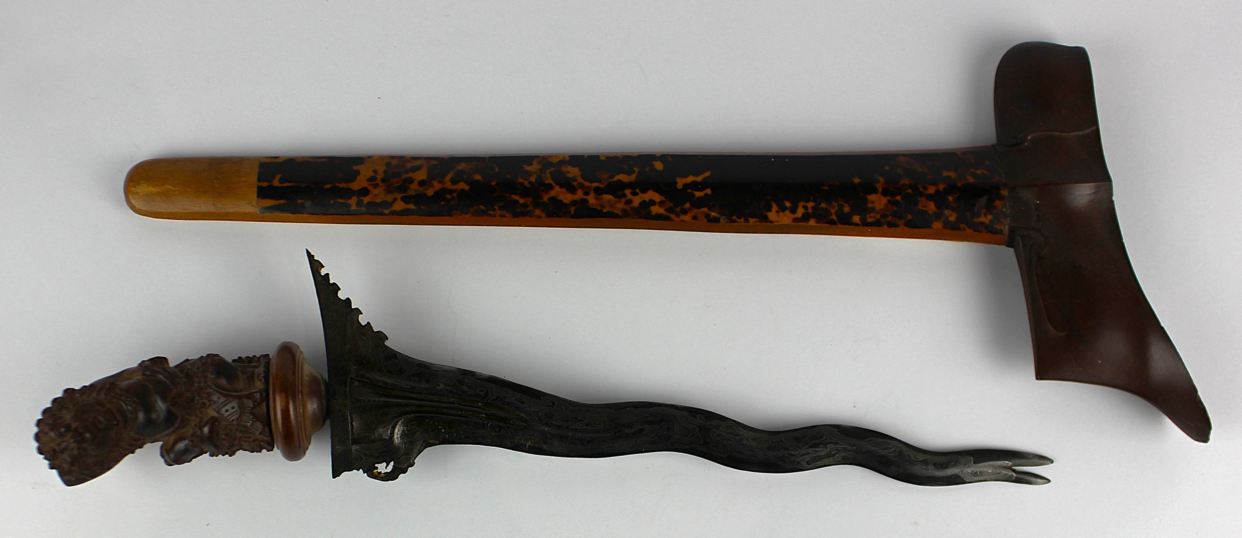 A Balinese kris / keris with wavy edged blade, the hilt carved in the form of a Raksasa, blade 25cm long