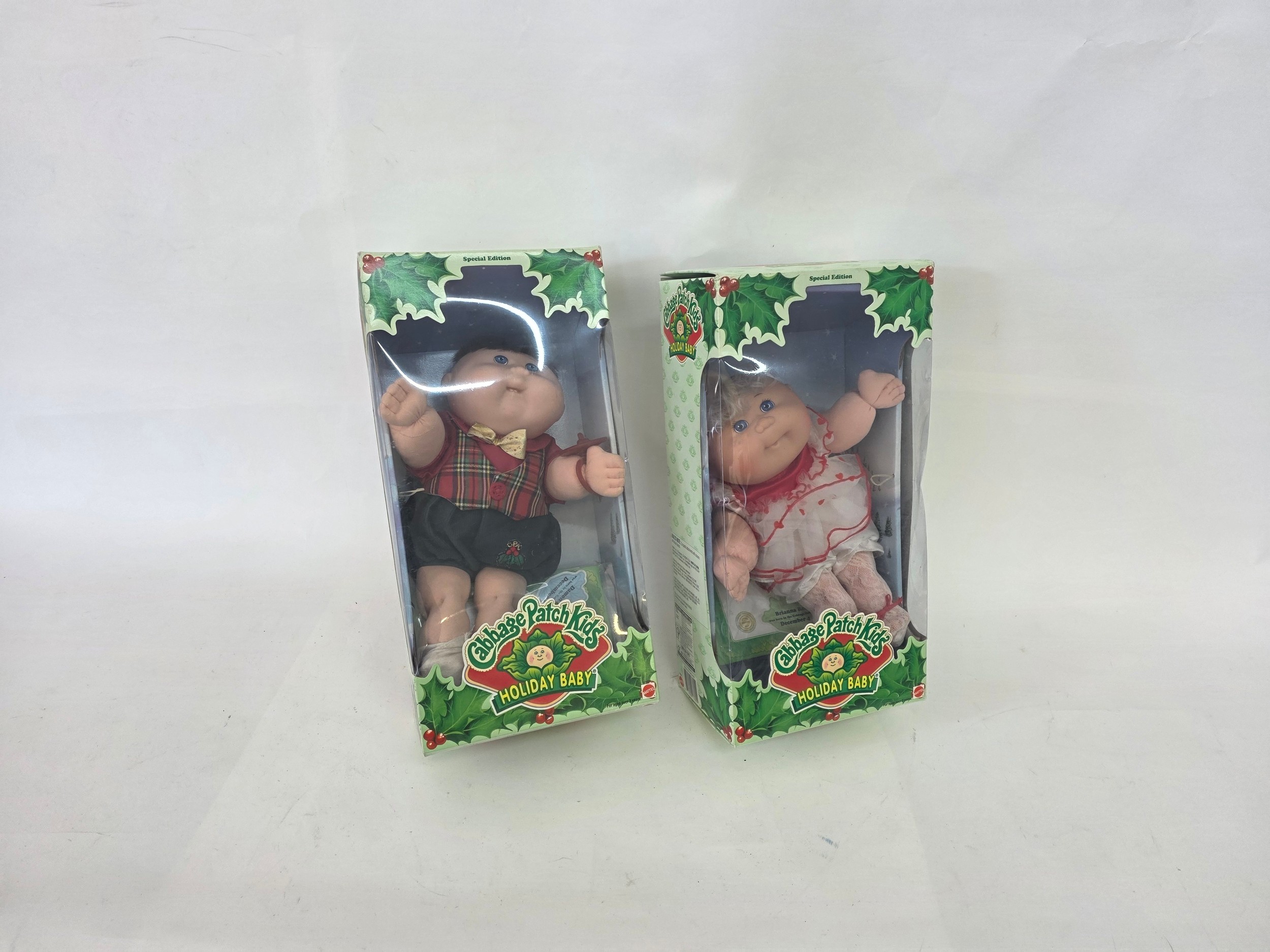 Cabbage Patch Dolls, two special edition Holiday Babies in original boxes