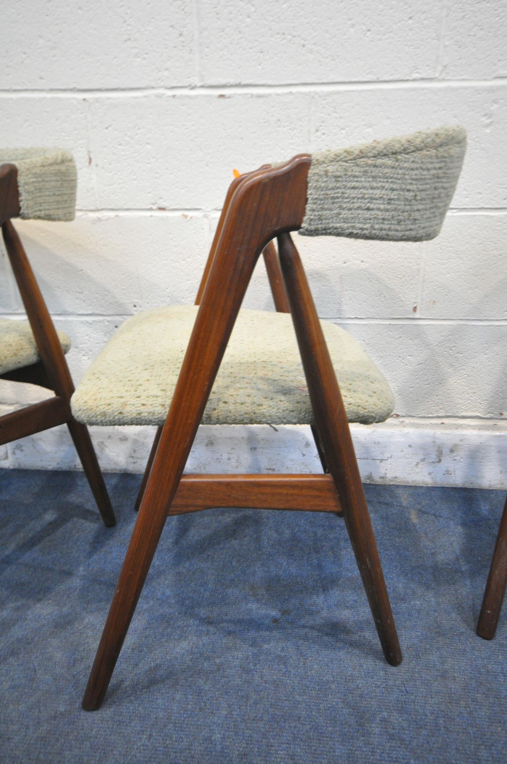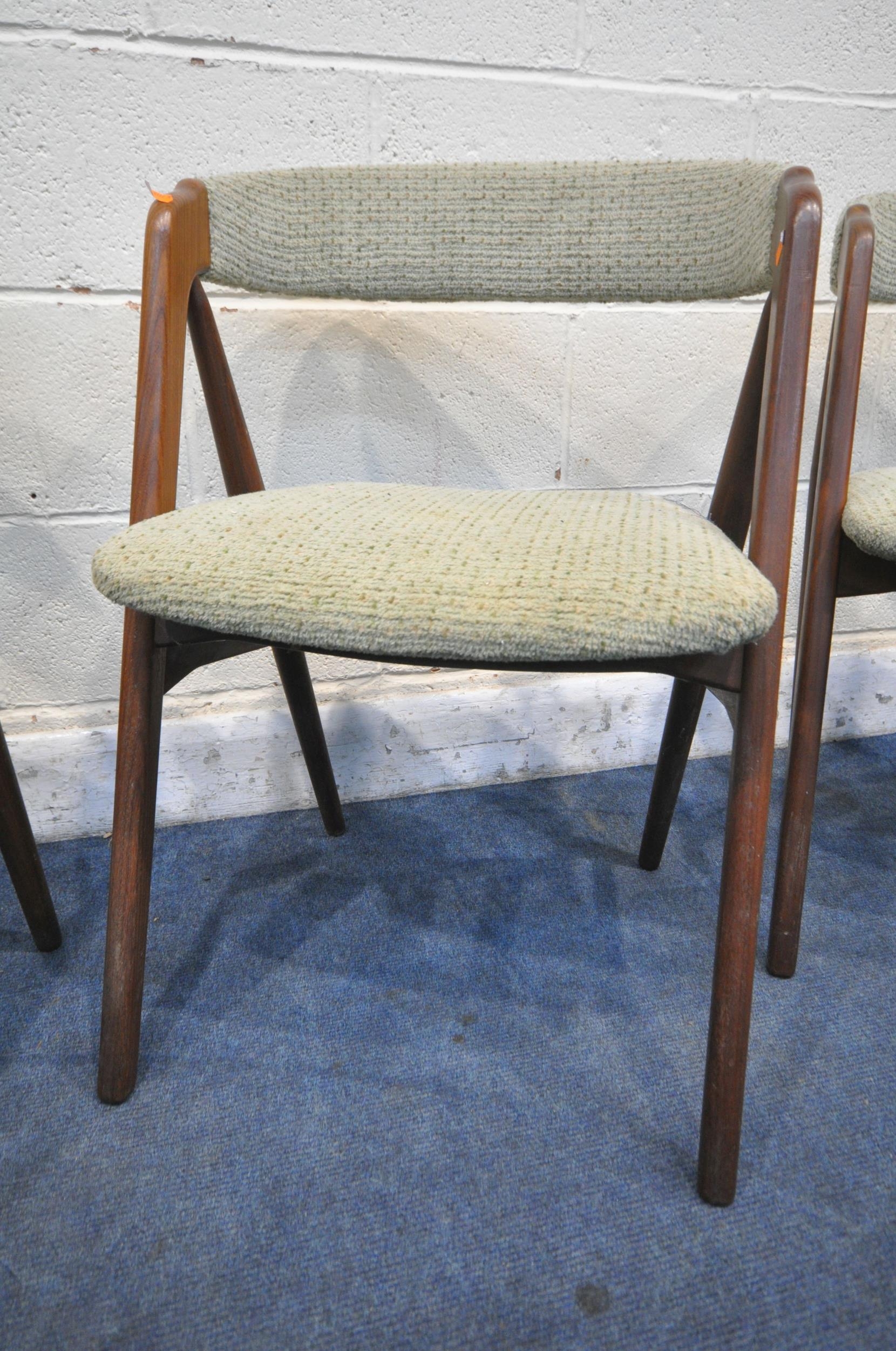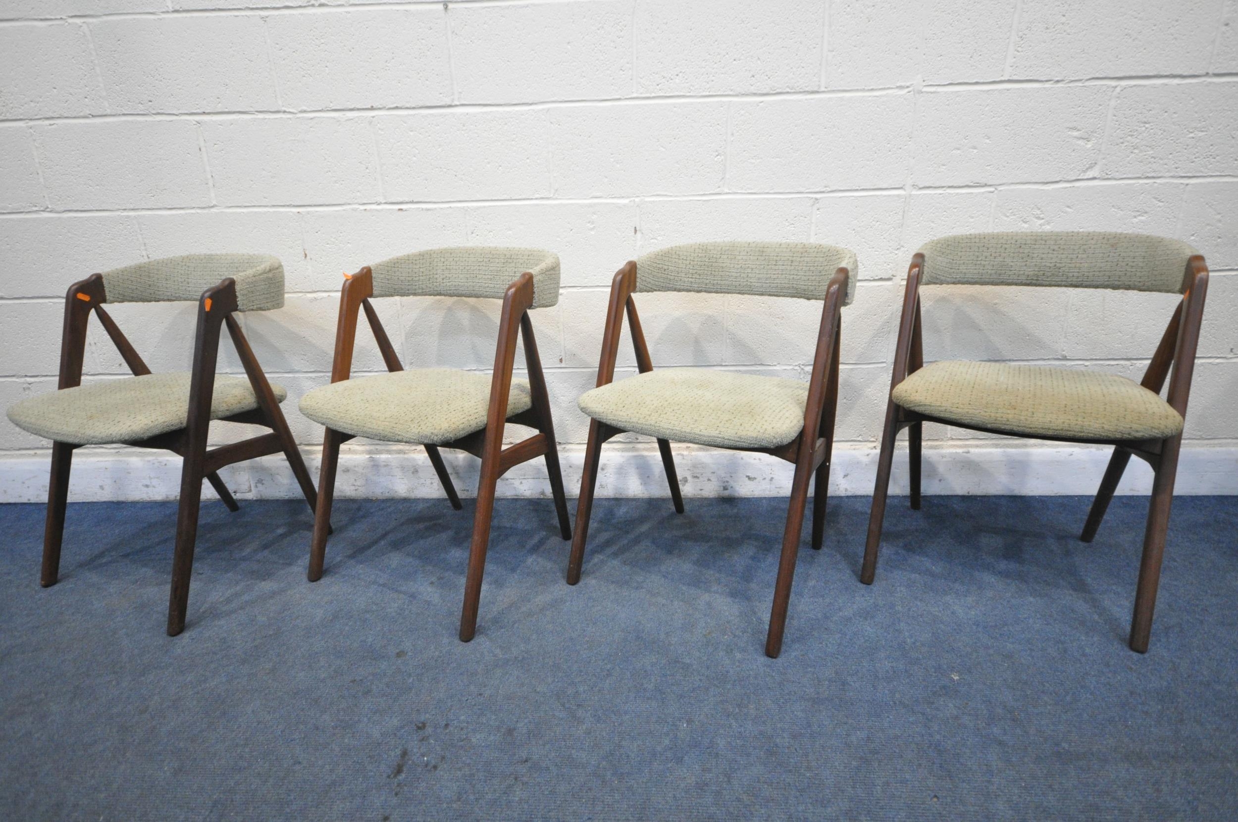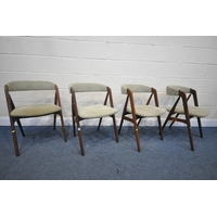 A SET OF FOUR MID-CENTURY THOMAS HARLEV FOR FARSTRUP MOBLER DINING CHAIRS, model 205, with green fabric seat and back, width 51cm x depth 49cm x height 74cm (condition report: surface scratches) (4)