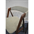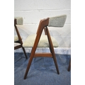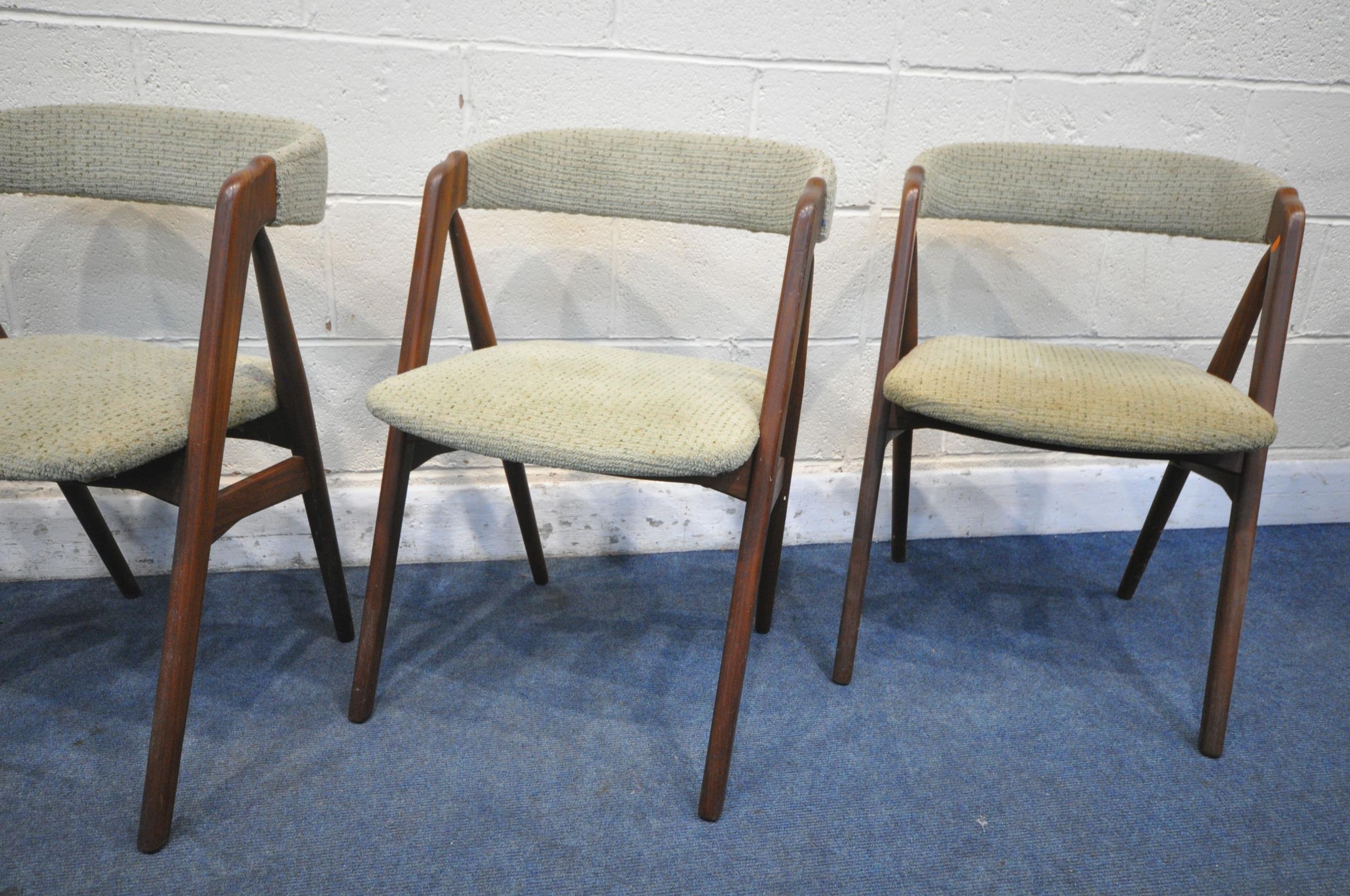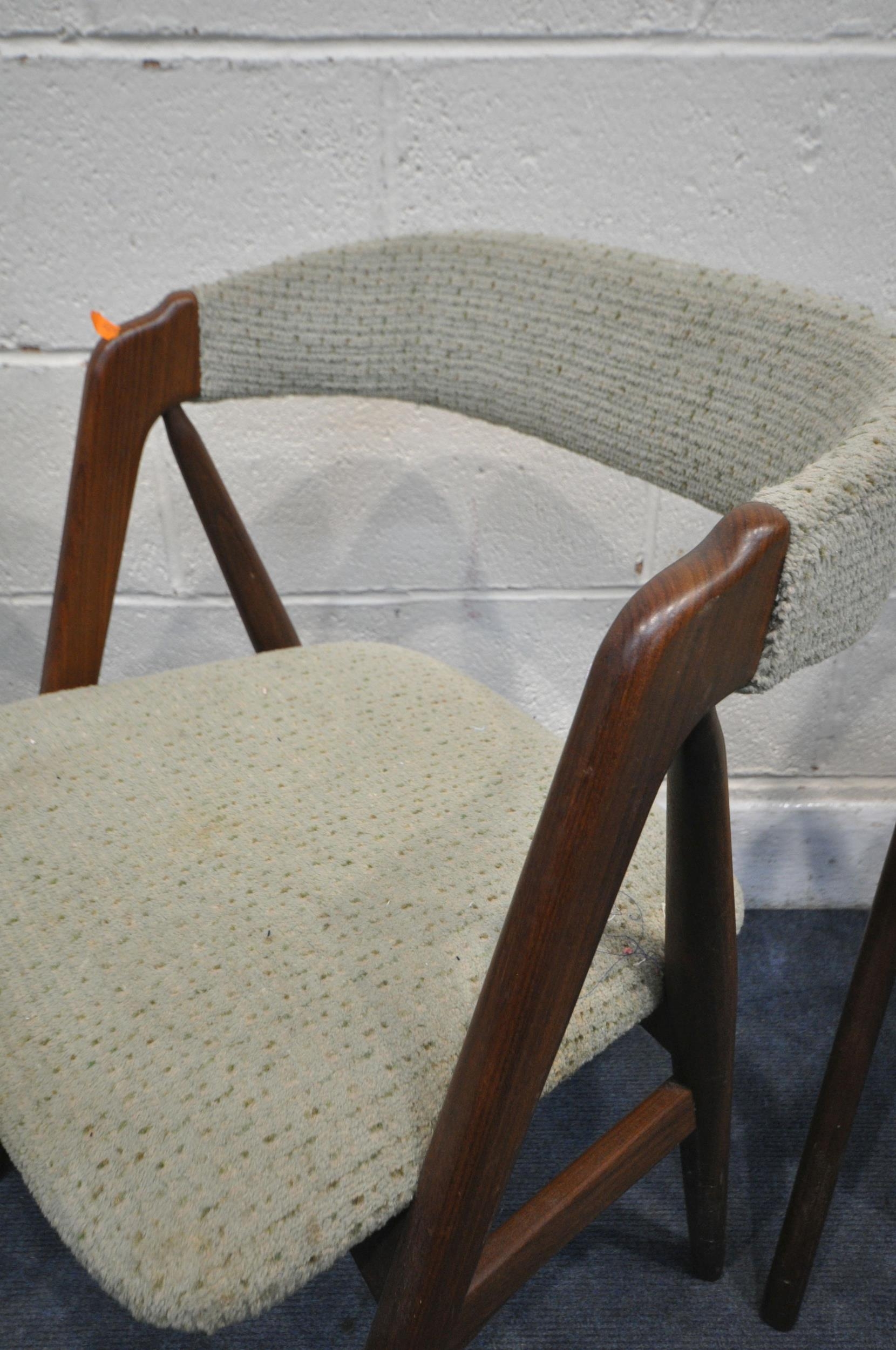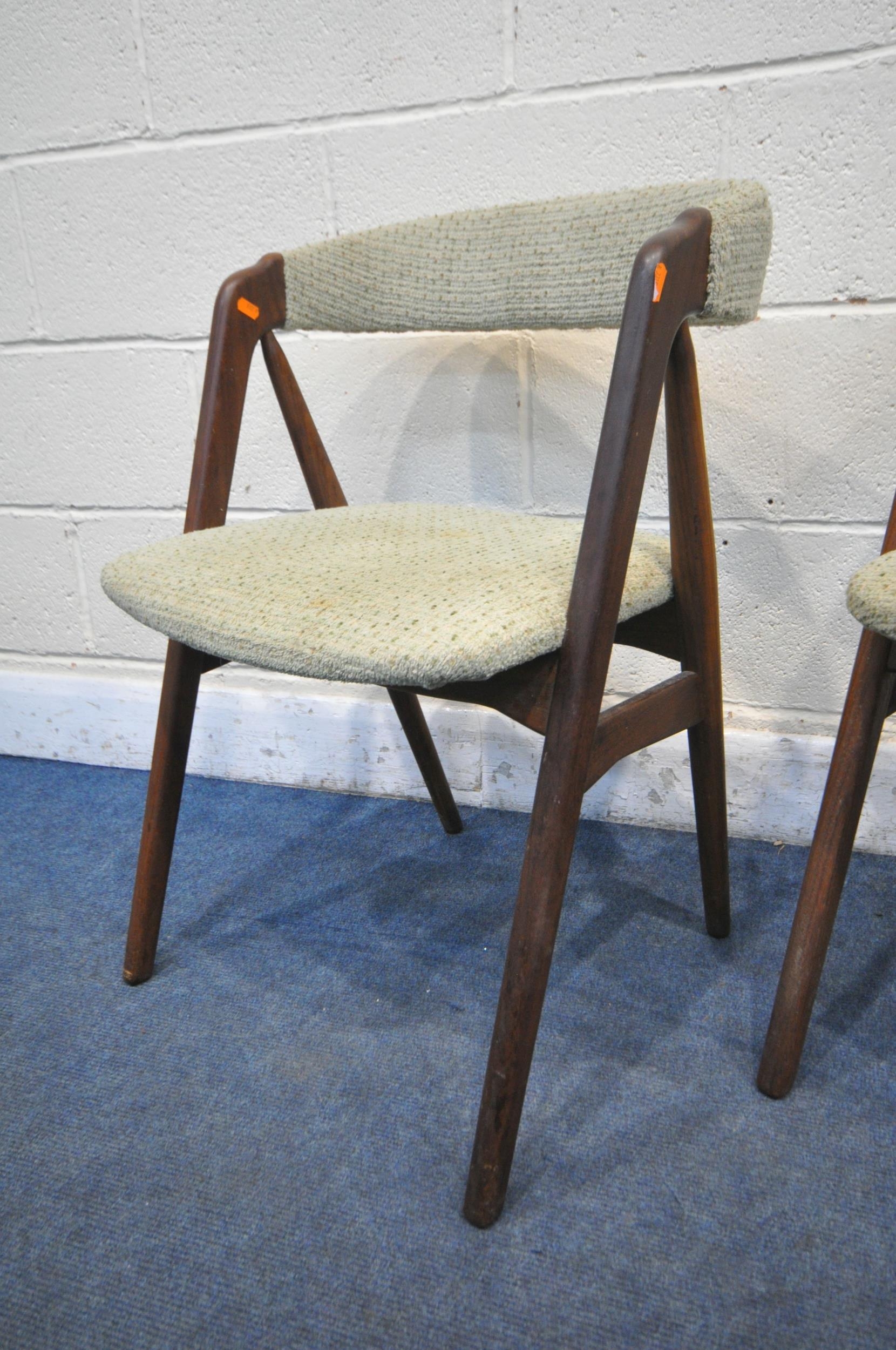 A SET OF FOUR MID-CENTURY THOMAS HARLEV FOR FARSTRUP MOBLER DINING CHAIRS, model 205, with green fabric seat and back, width 51cm x depth 49cm x height 74cm (condition report: surface scratches) (4)