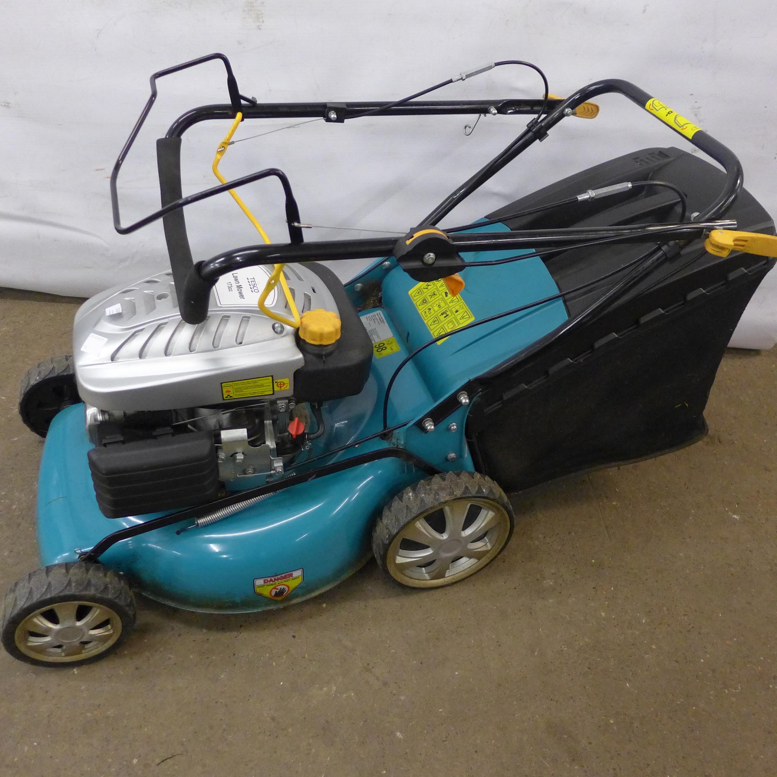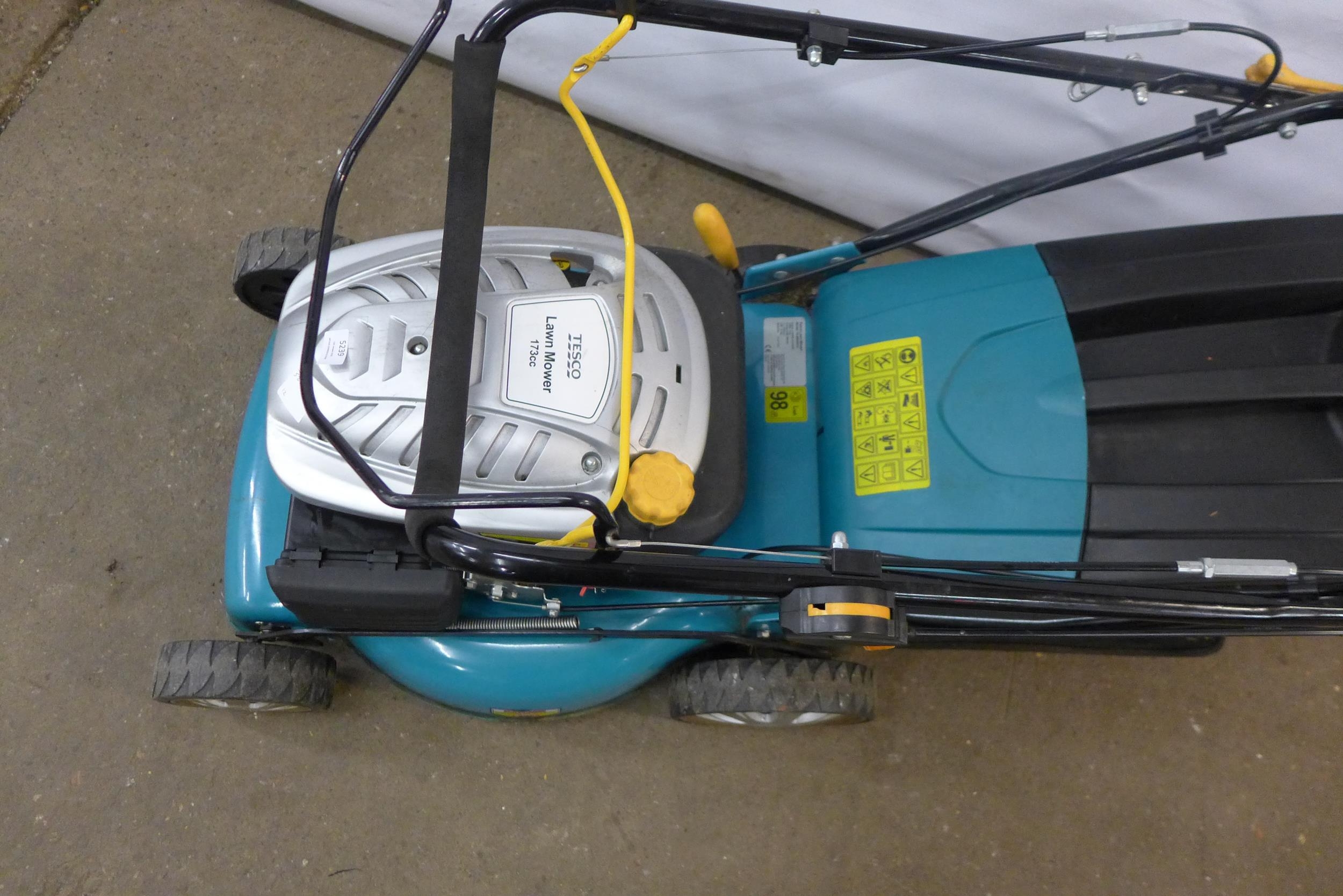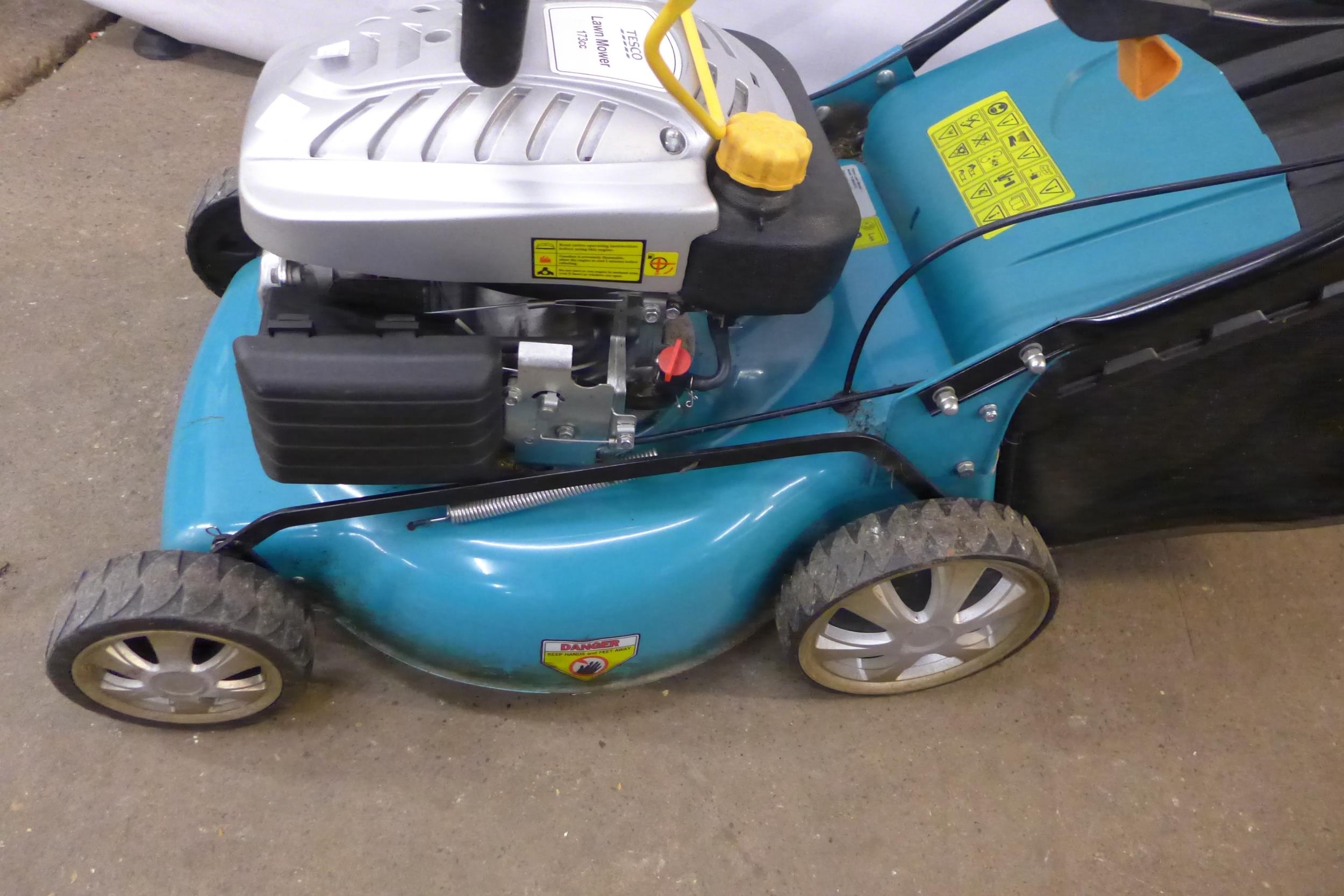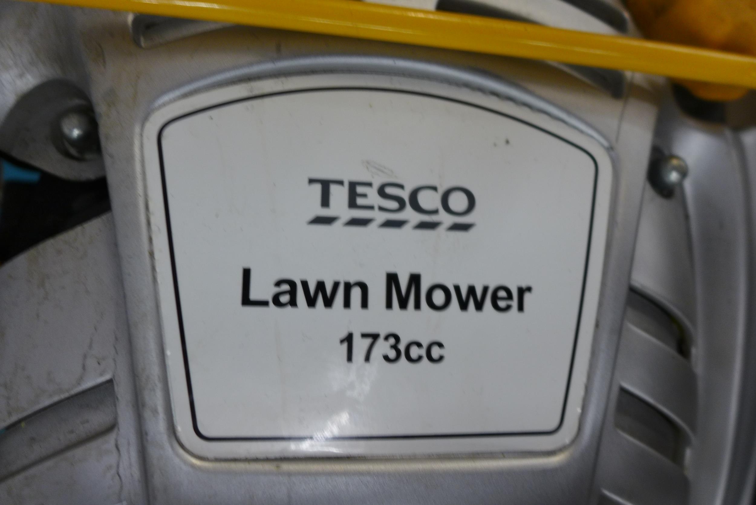 A Tesco 173cc petrol driven lawn mower with collection box *Police repossession