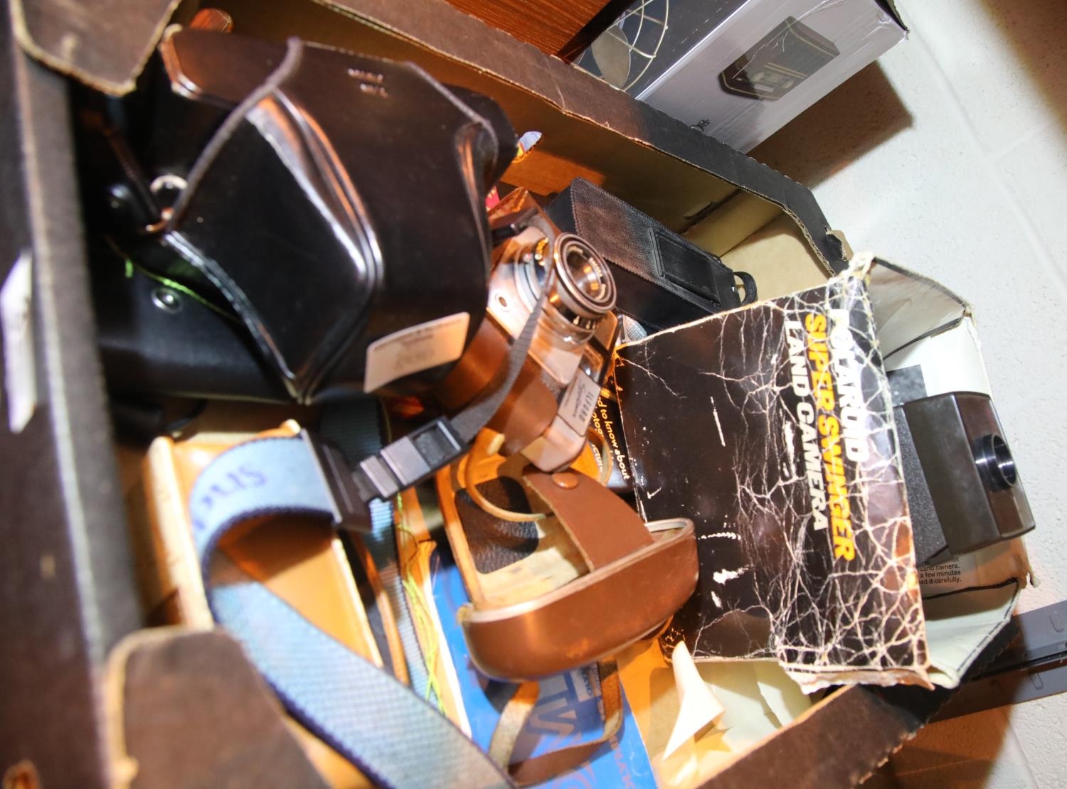 Box of mixed predominantly modern cameras. Not available for in-house P&P, contact Paul O'Hea at Mailboxes on 01925 659133