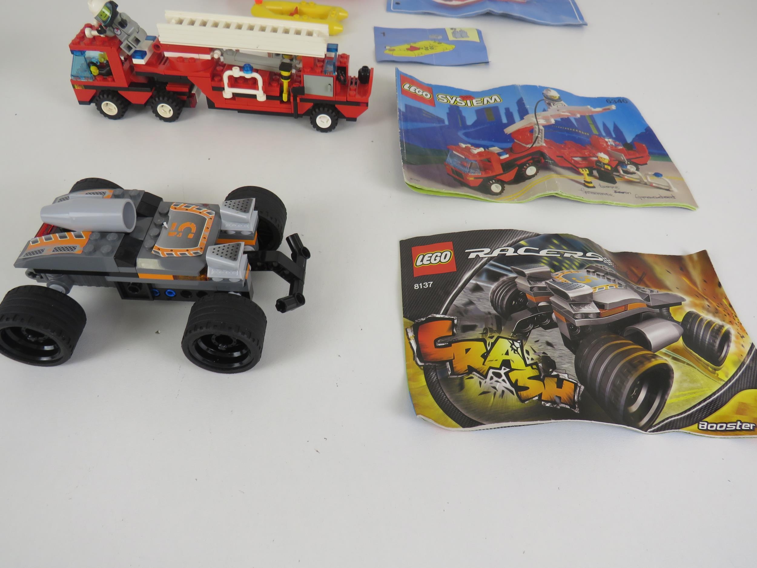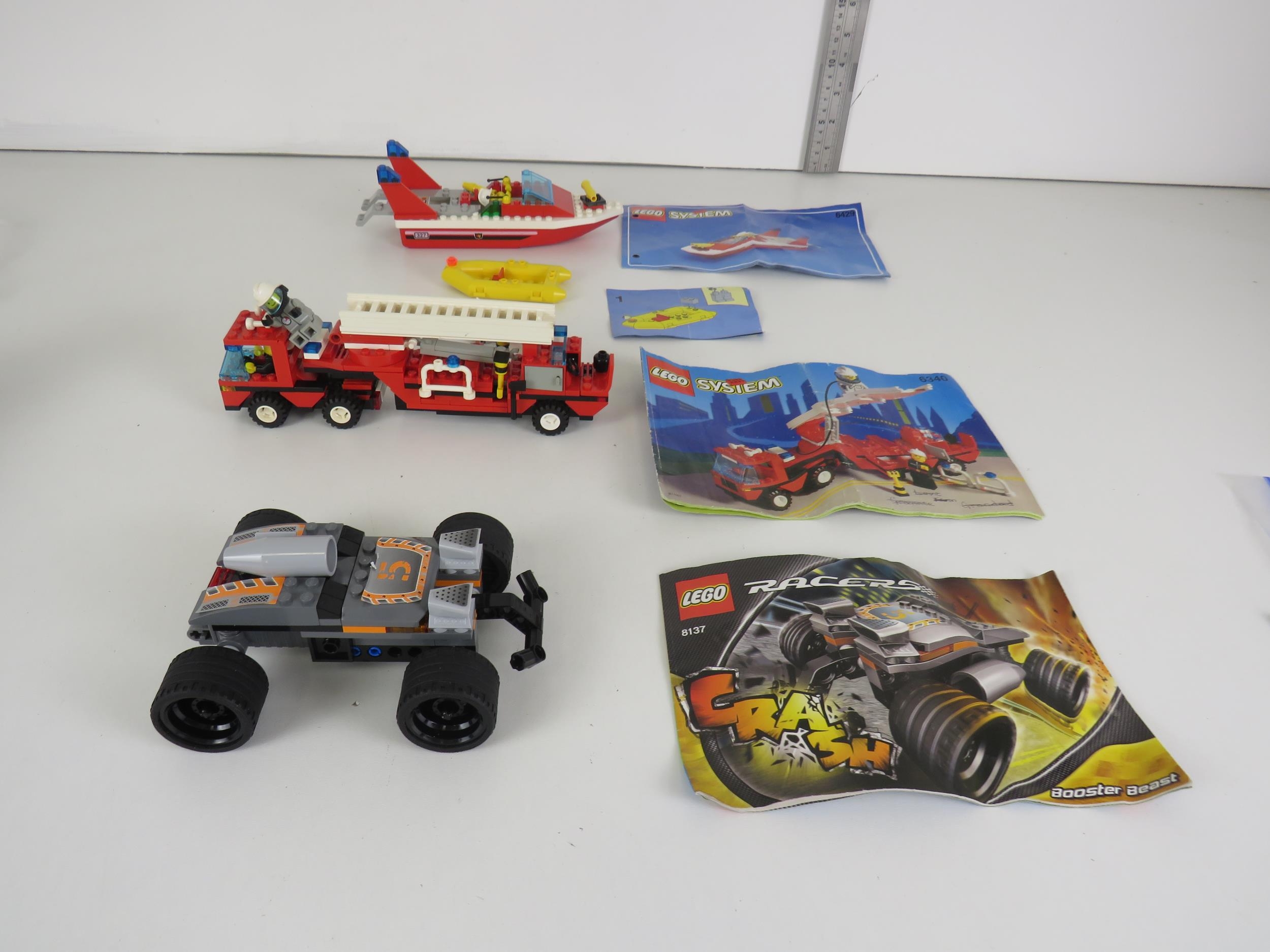 3 x LEGO SETS RECUE BOAT, LEGO RACERS BOOSTER BEAST AND FIRE ENGINE