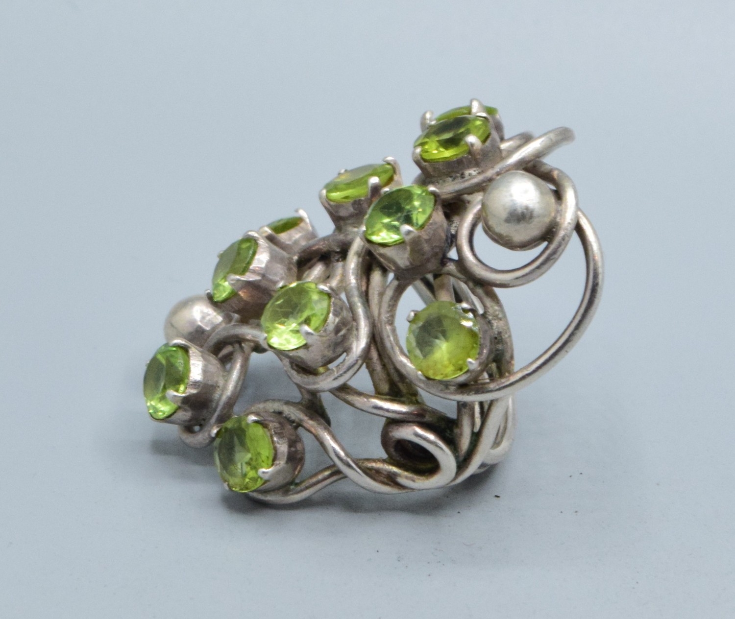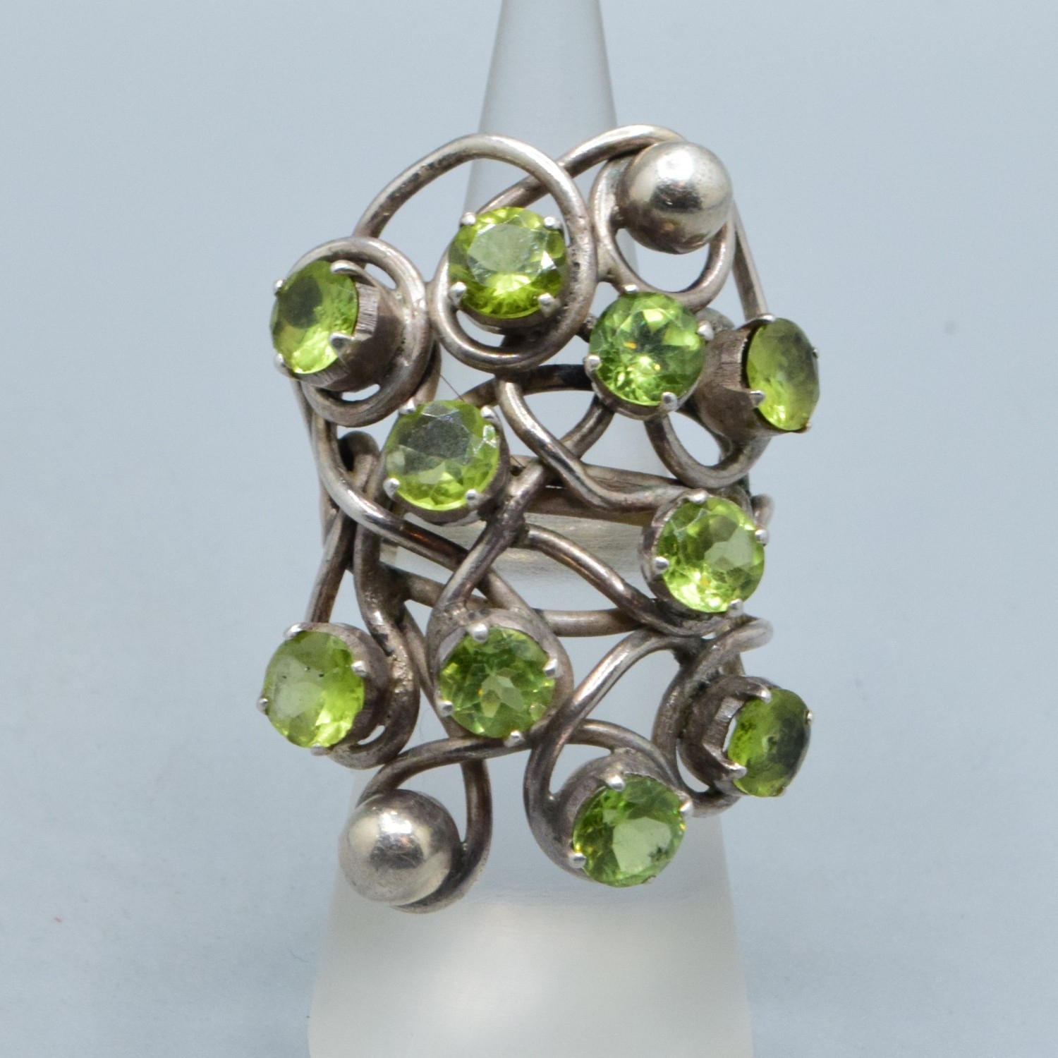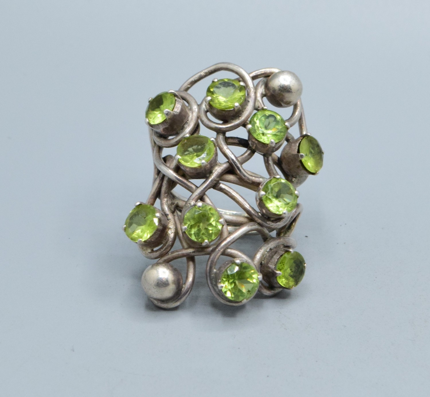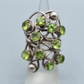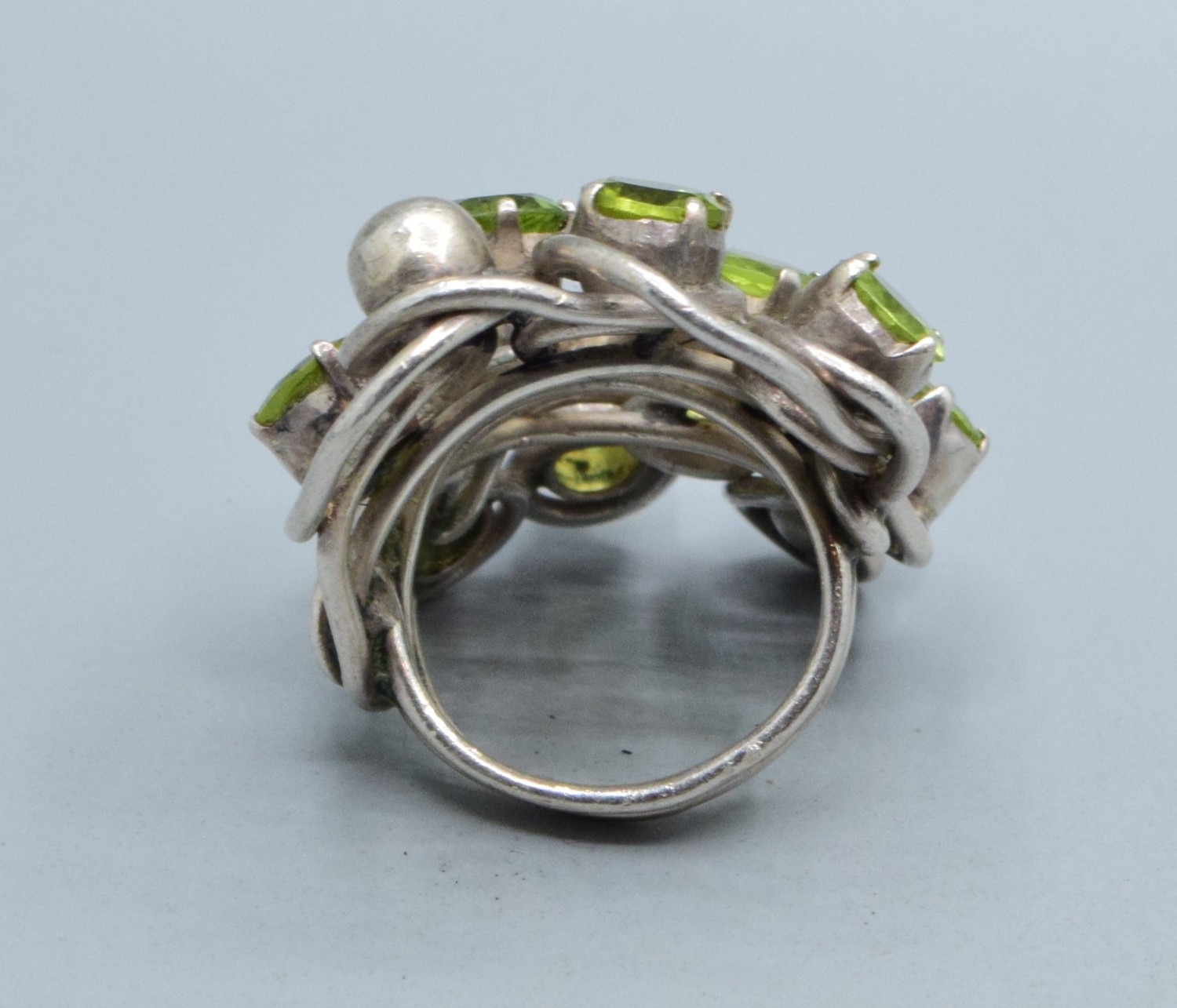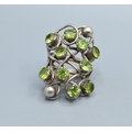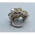 Very large ladies Peridot multi stone statement ring held in an open design in 925 silver, the head being 4.0x2.7cm a definite stand out ring size L