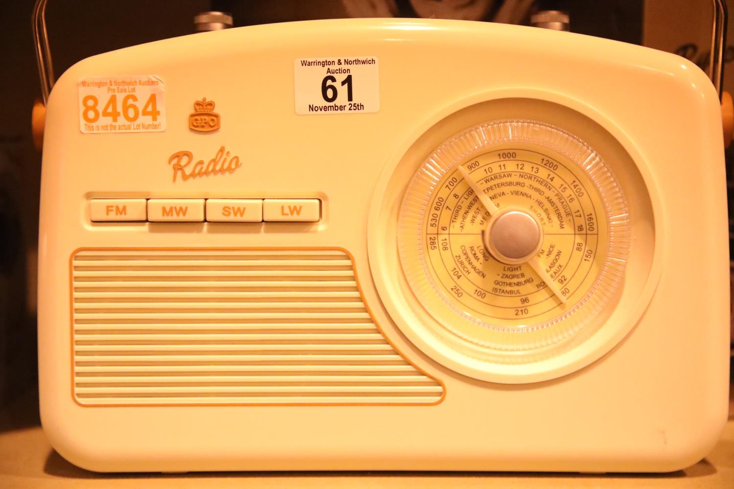 Cream GPO Rydell retro portable four band analogue radio, MW/LW/SW/FM with retro dial face, boxed. Not available for in-house P&P