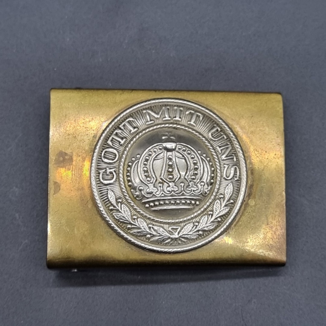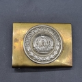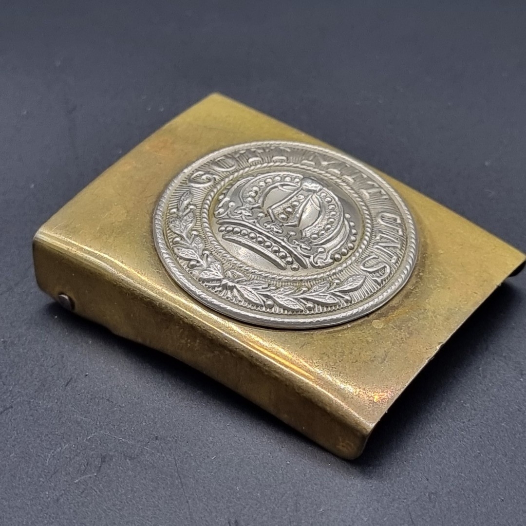 An Imperial German bi-metal belt buckle, inscribed 'Gott Mit Uns' and stamped D.R.G.M.