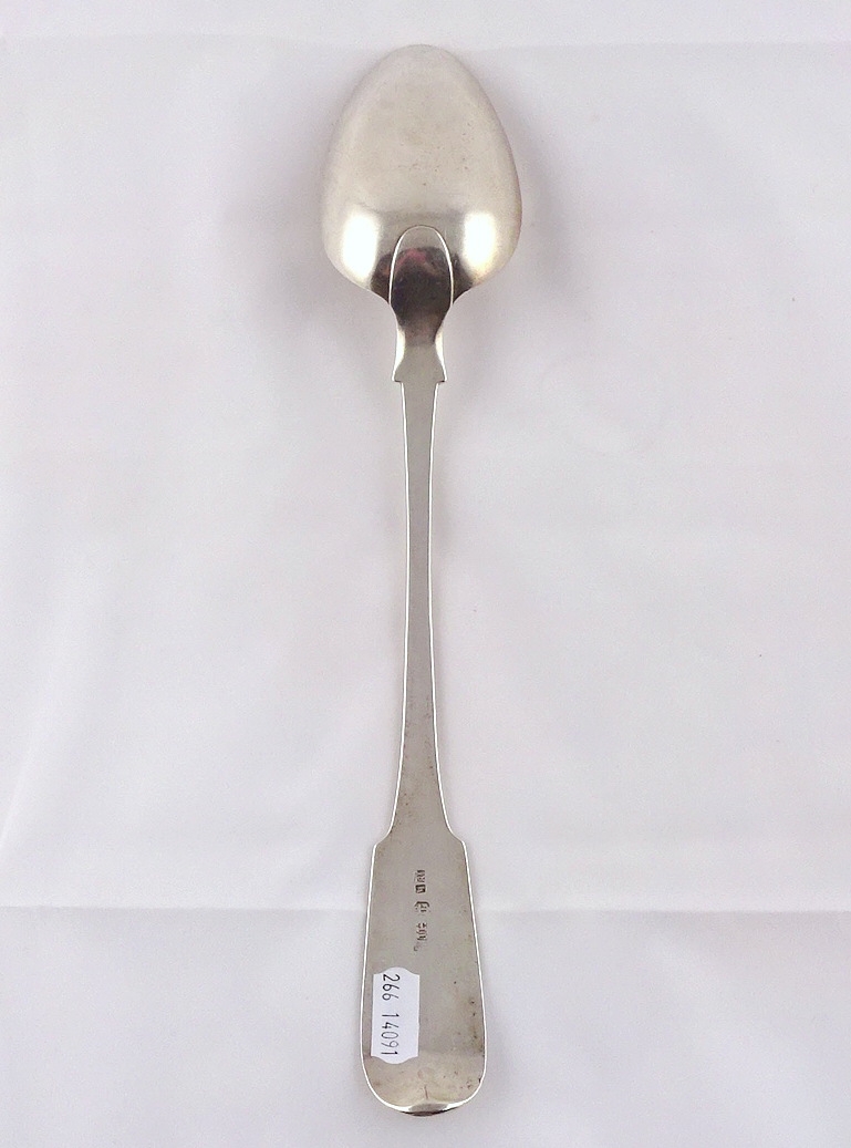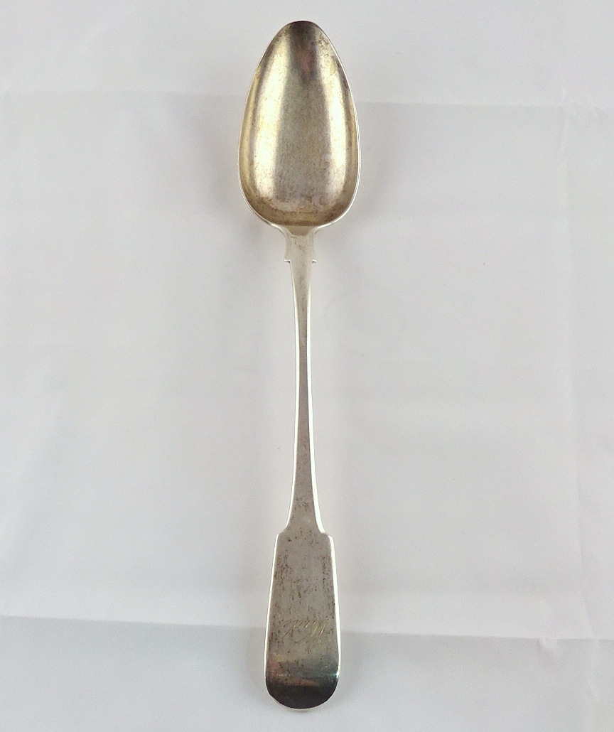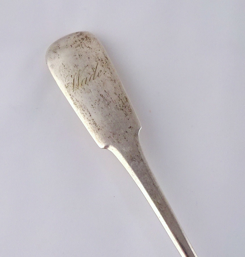 A Scottish provincial silver fiddle pattern serving spoon engraved "Wade", Greenock mark J.H first quarter 19th cent. 155gr / 320mm (by instruction of the family of Dame Fanny Waterman)