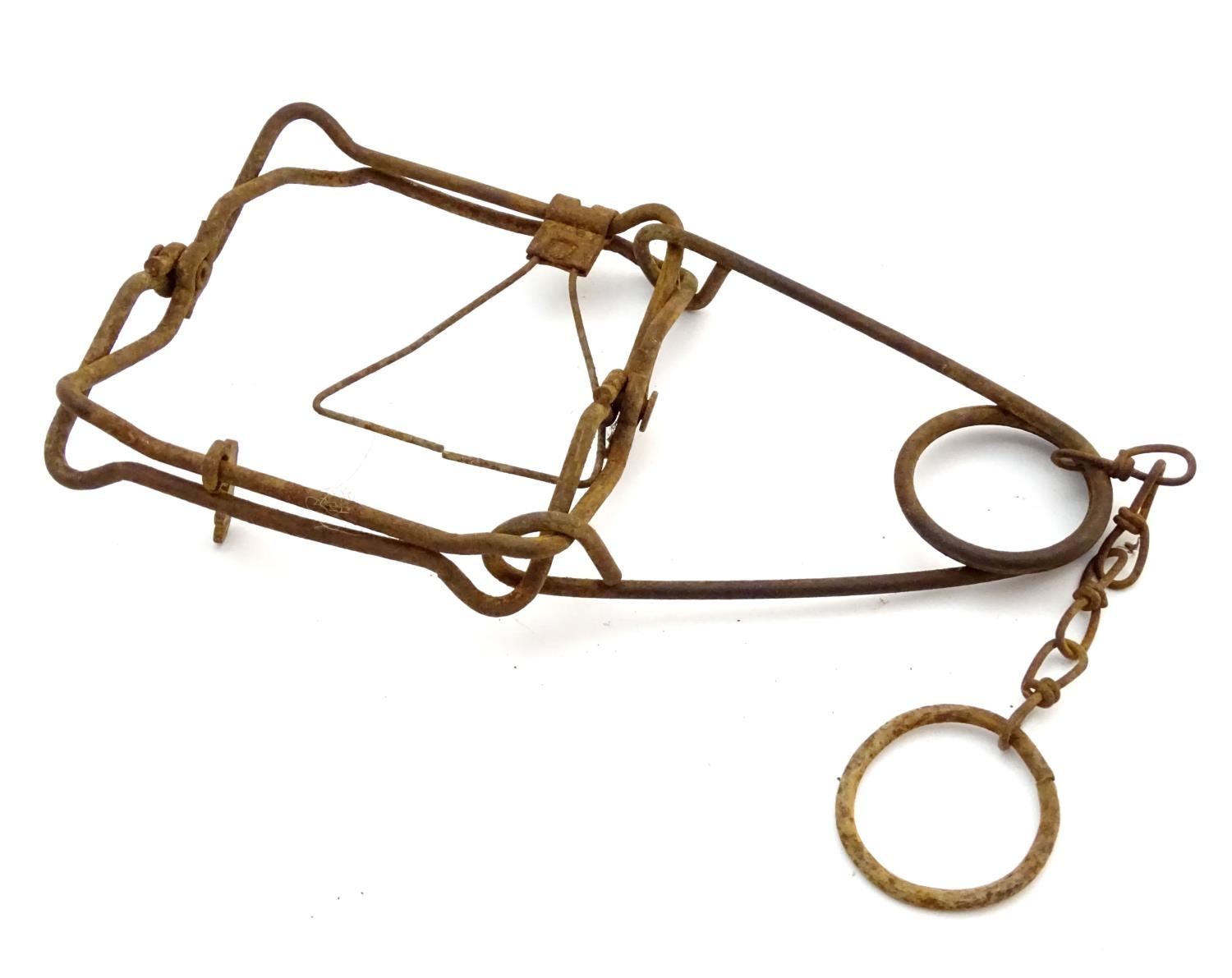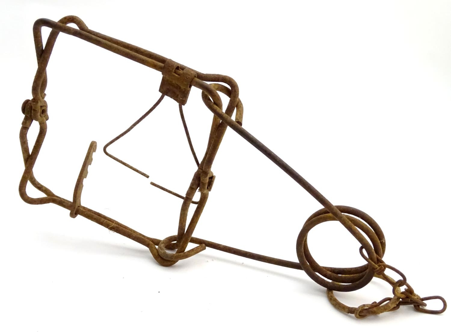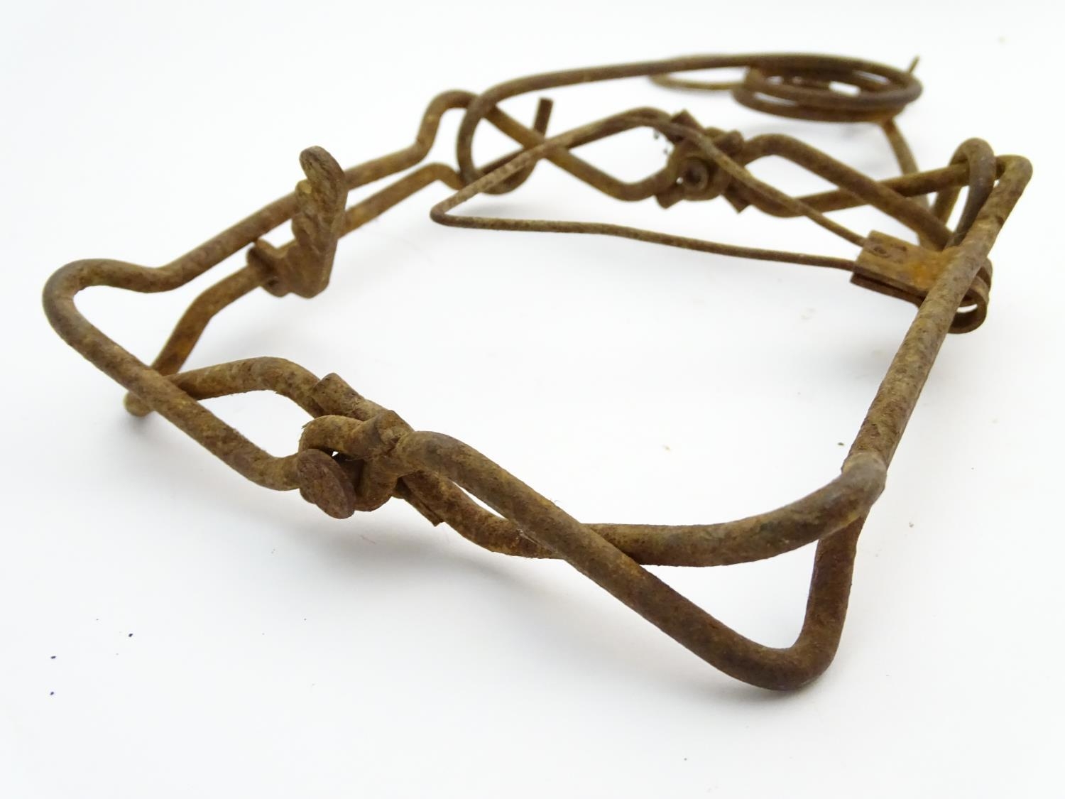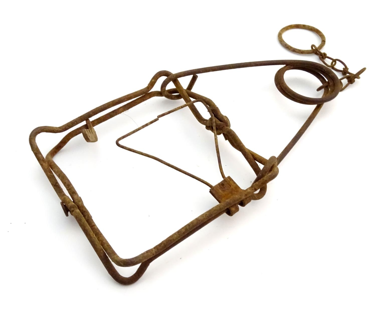 Antique trap: an early 20thC spring rat trap, 10" long
