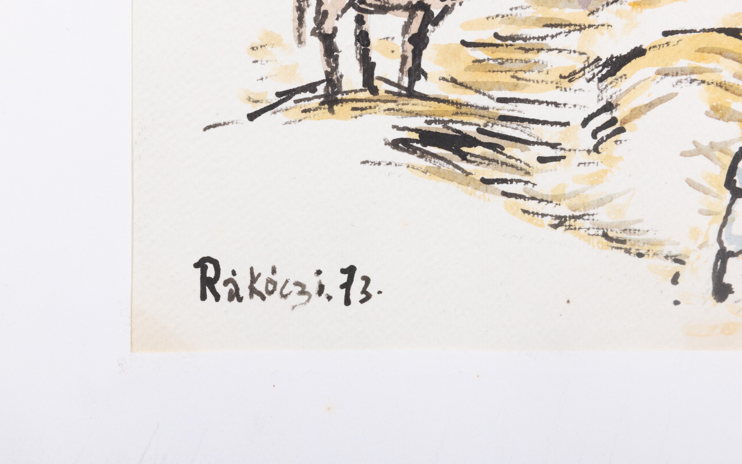 Basil Ivan Rakoczi (1908-1979) Farm, North Africa Watercolour and ink on paper, 32 x 40cm Signed and dated (19)73 Unframed