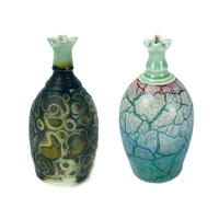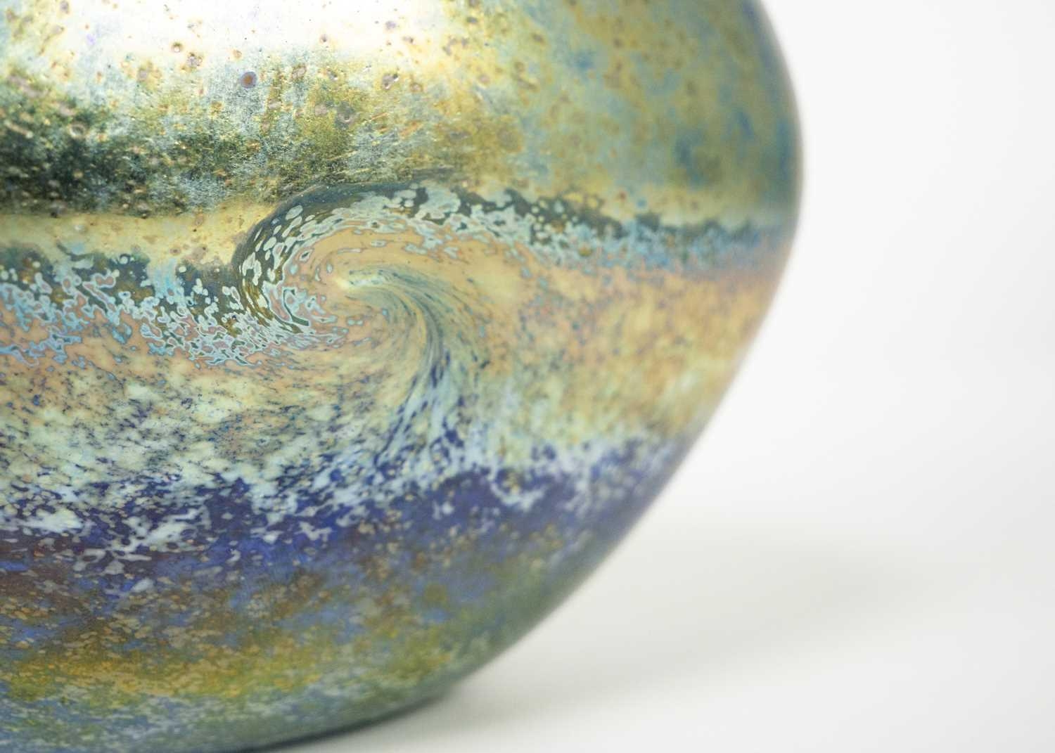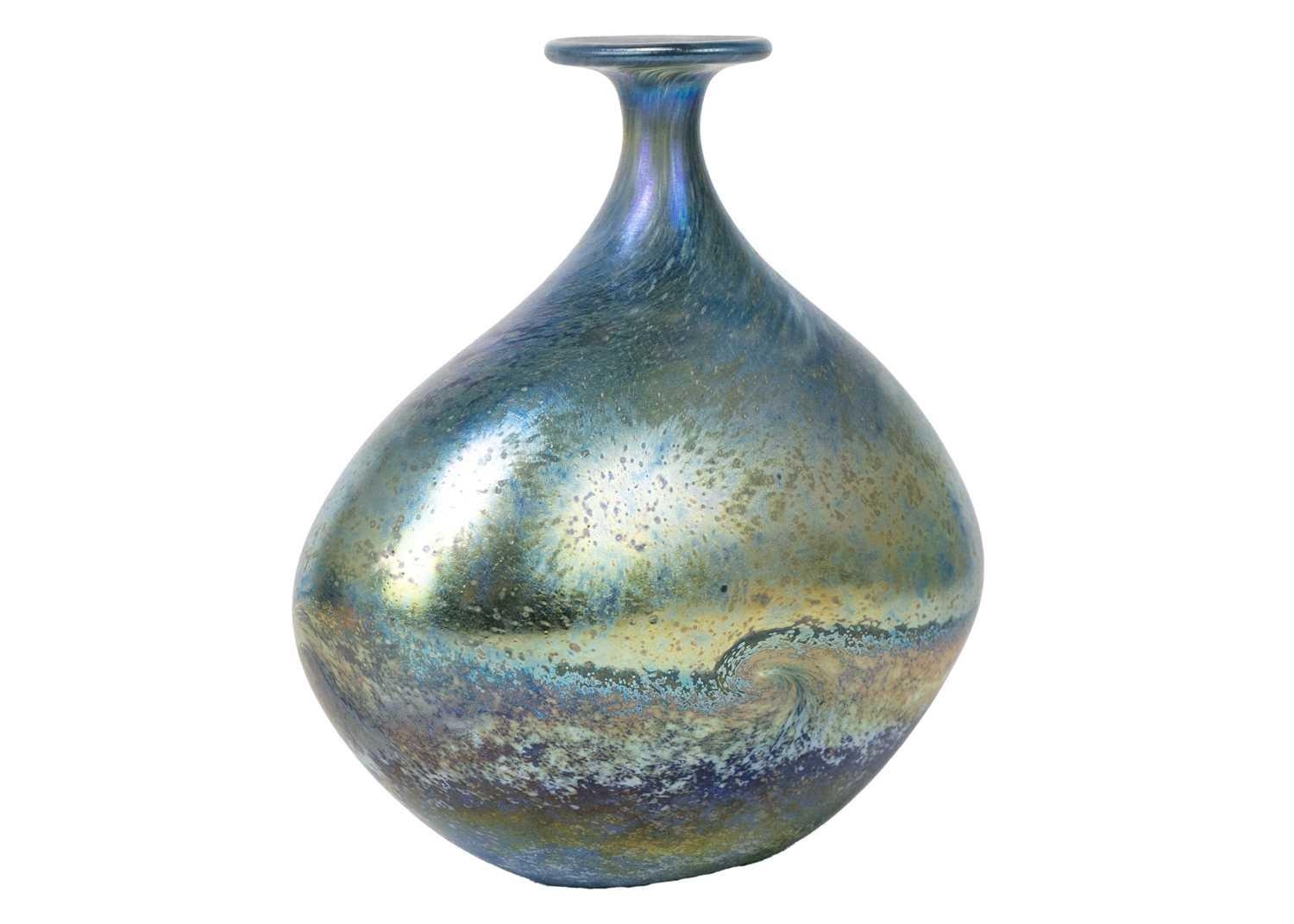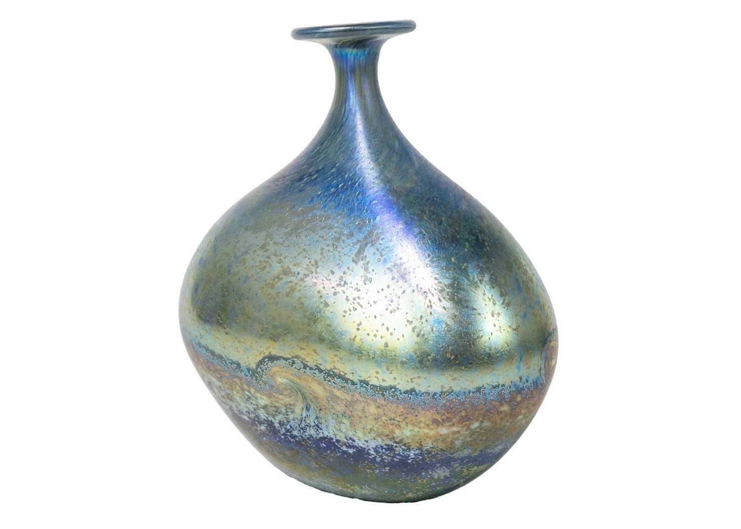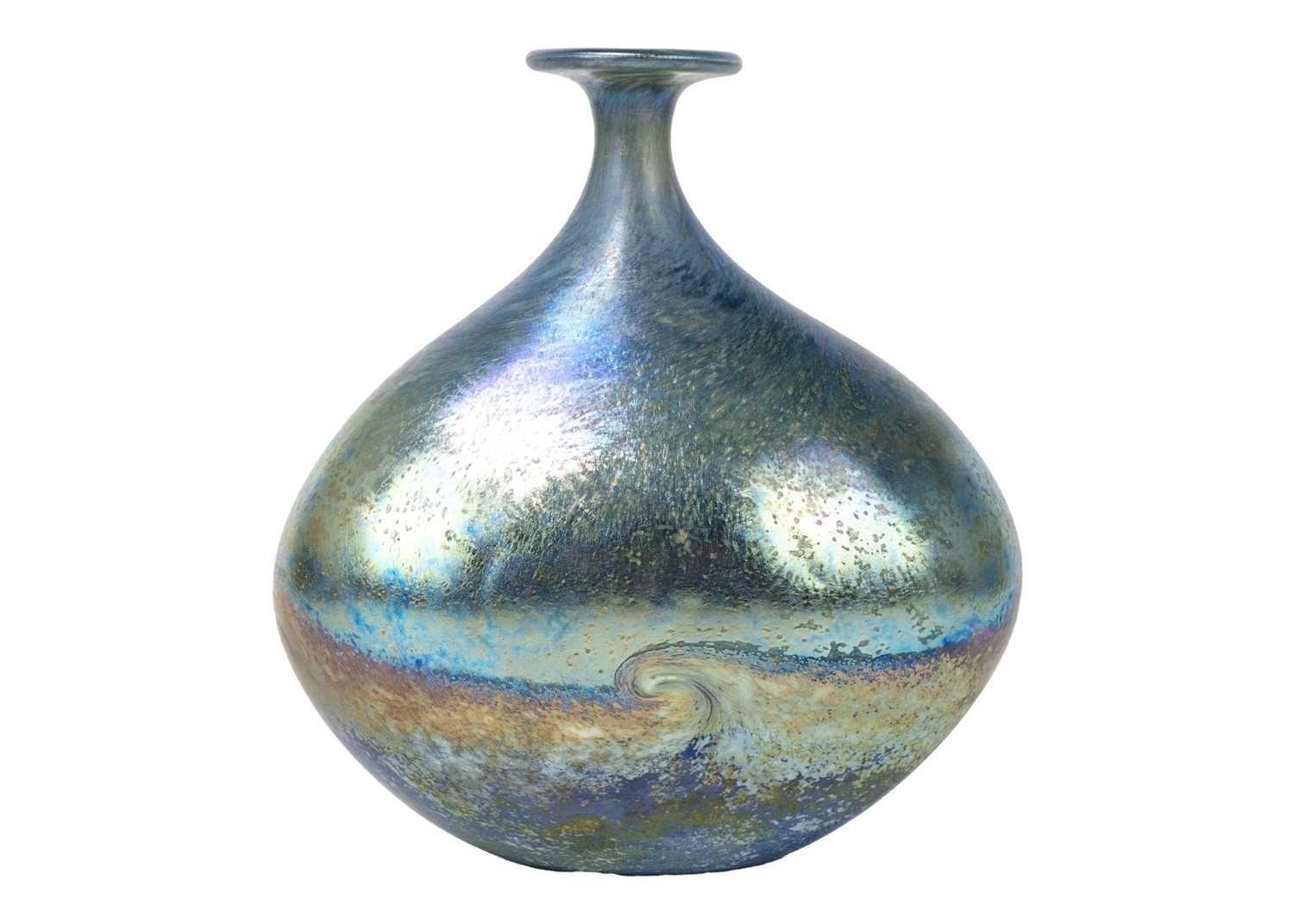 Norman Stuart Clarke studio glass bottle vase. Golden seascape pattern, signed and dated 92, height 18.5cm.
