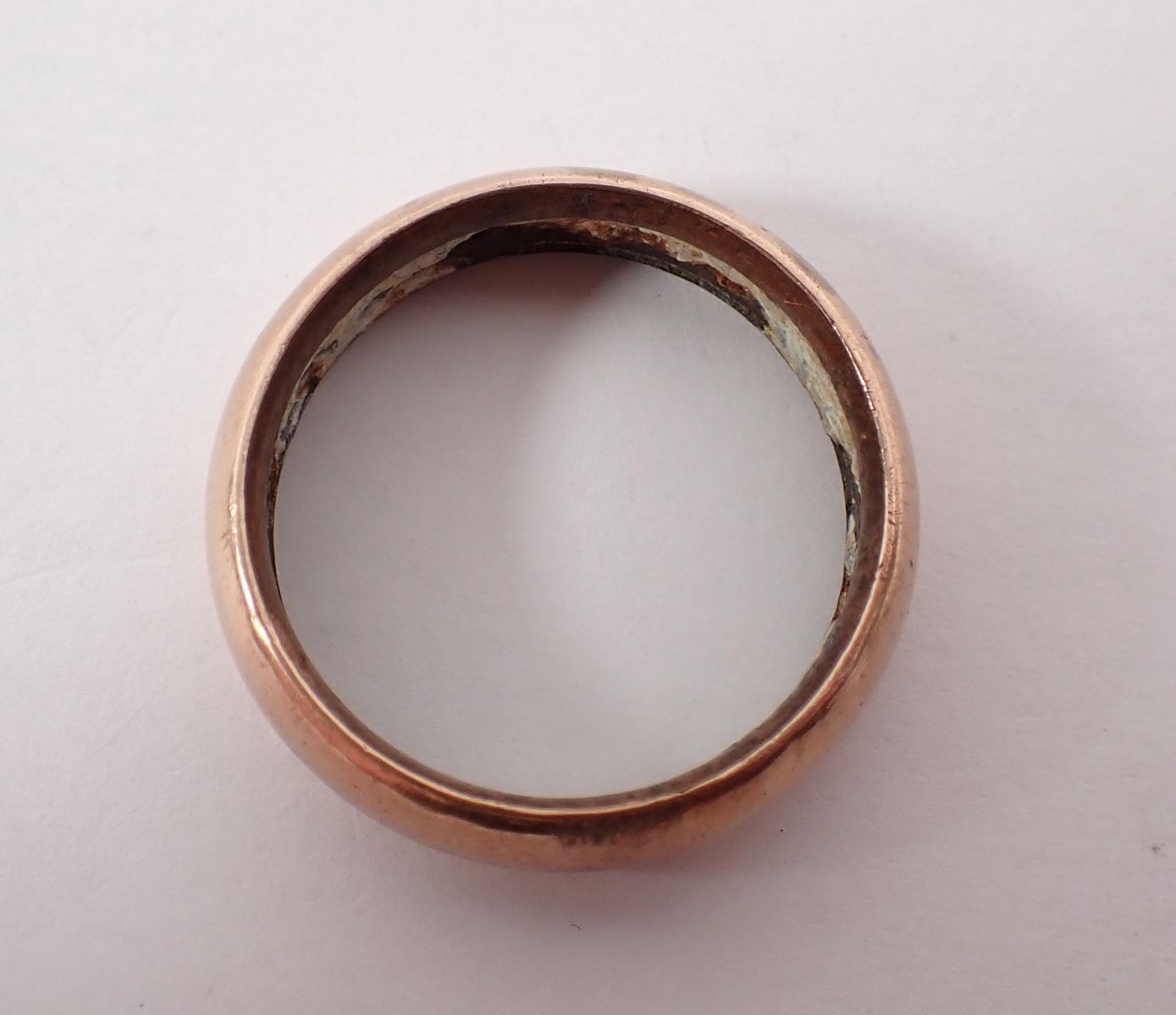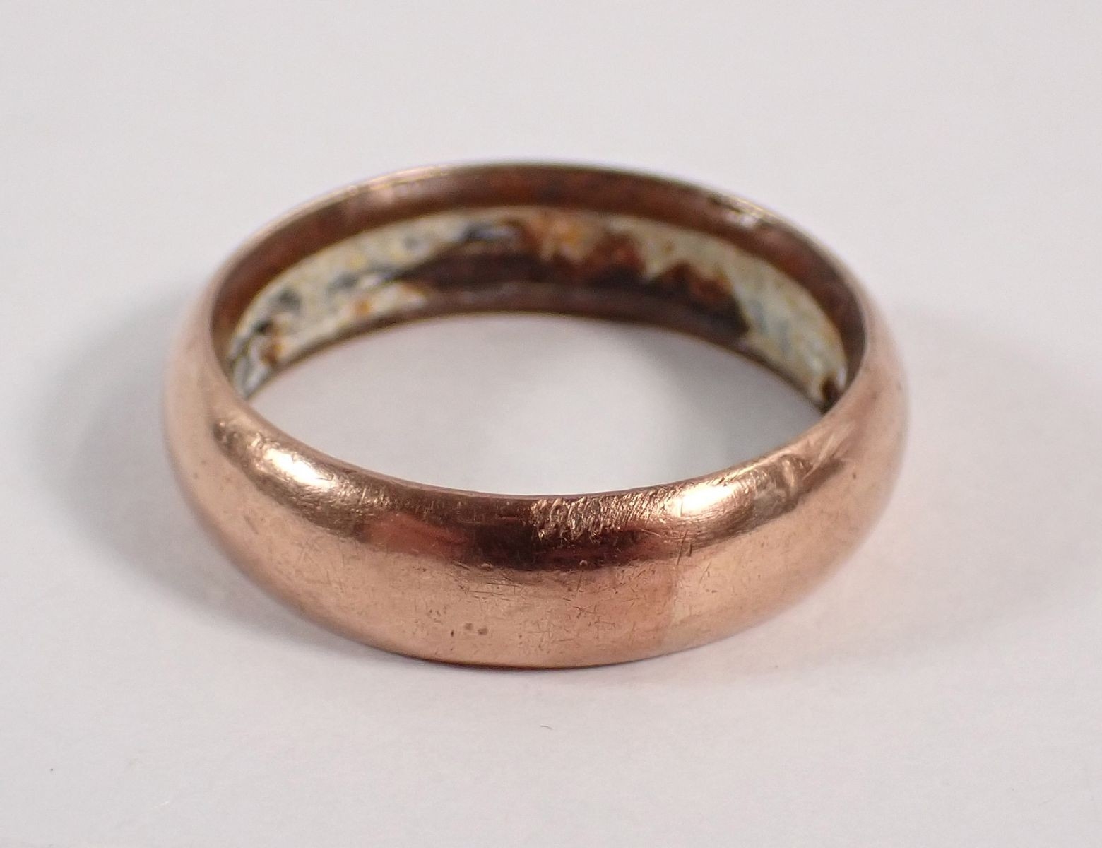 A yellow metal cased gentleman's wedding ring, (with metal core & composition filling to interior) size V to W, 6.5g total weight,