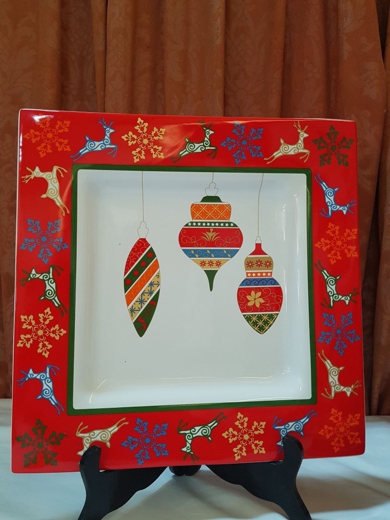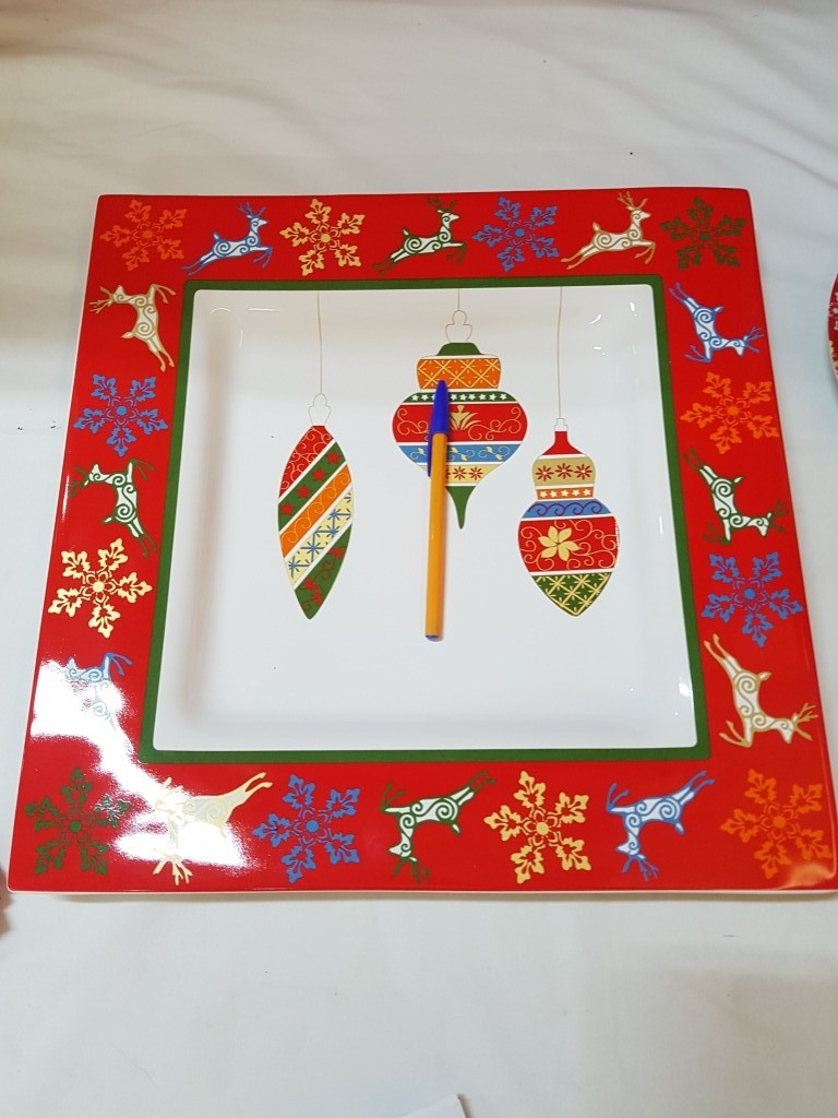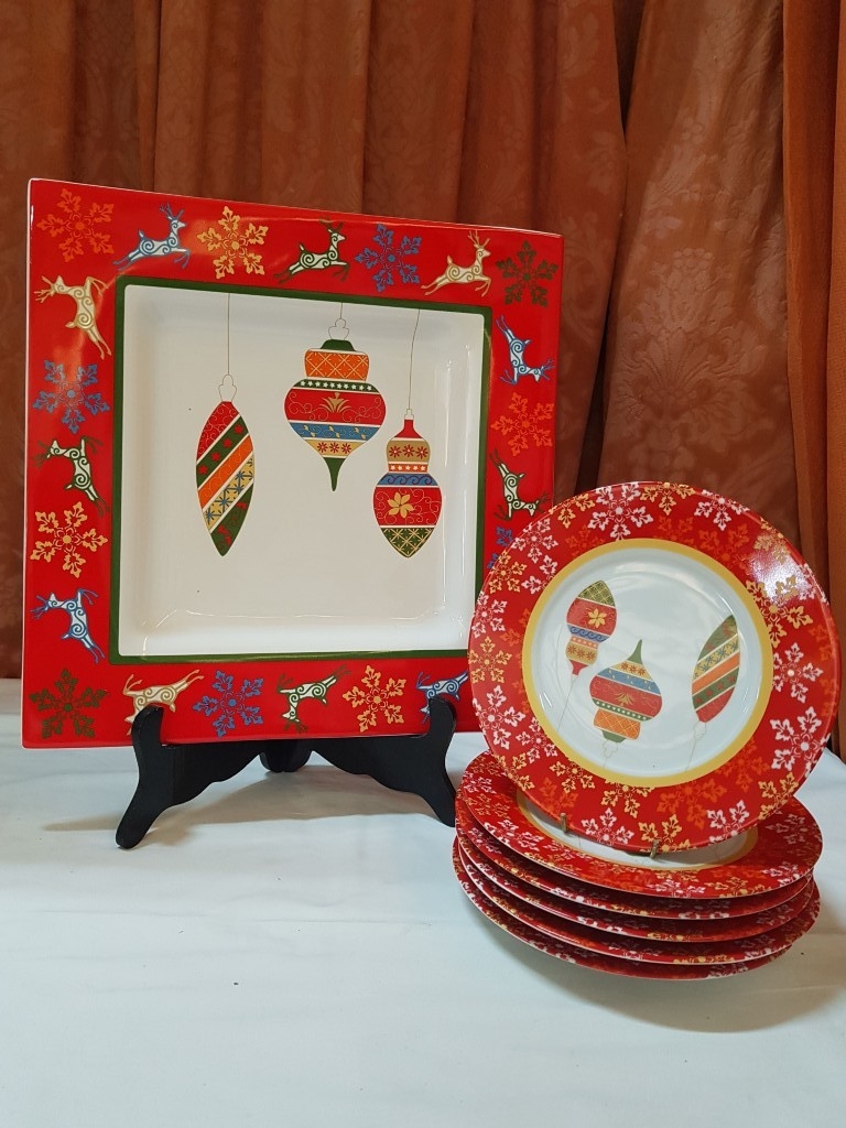 'Marry Winter' Pratos de Casa Portuguese Serving Dishes; Large Square Dish (Approx. 38cm x 38cm) and Set of 6x Matching Side/Cake Plates (Approx. Ø: 22cm Each). (7)