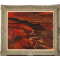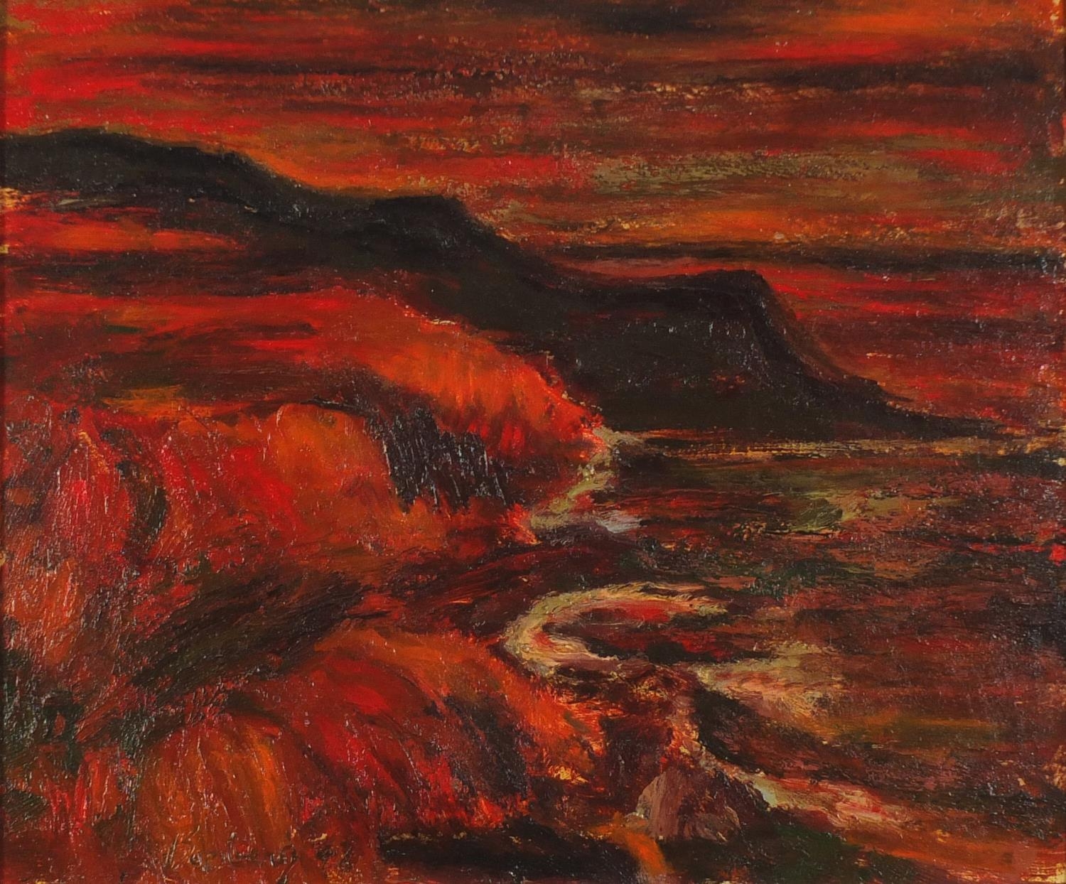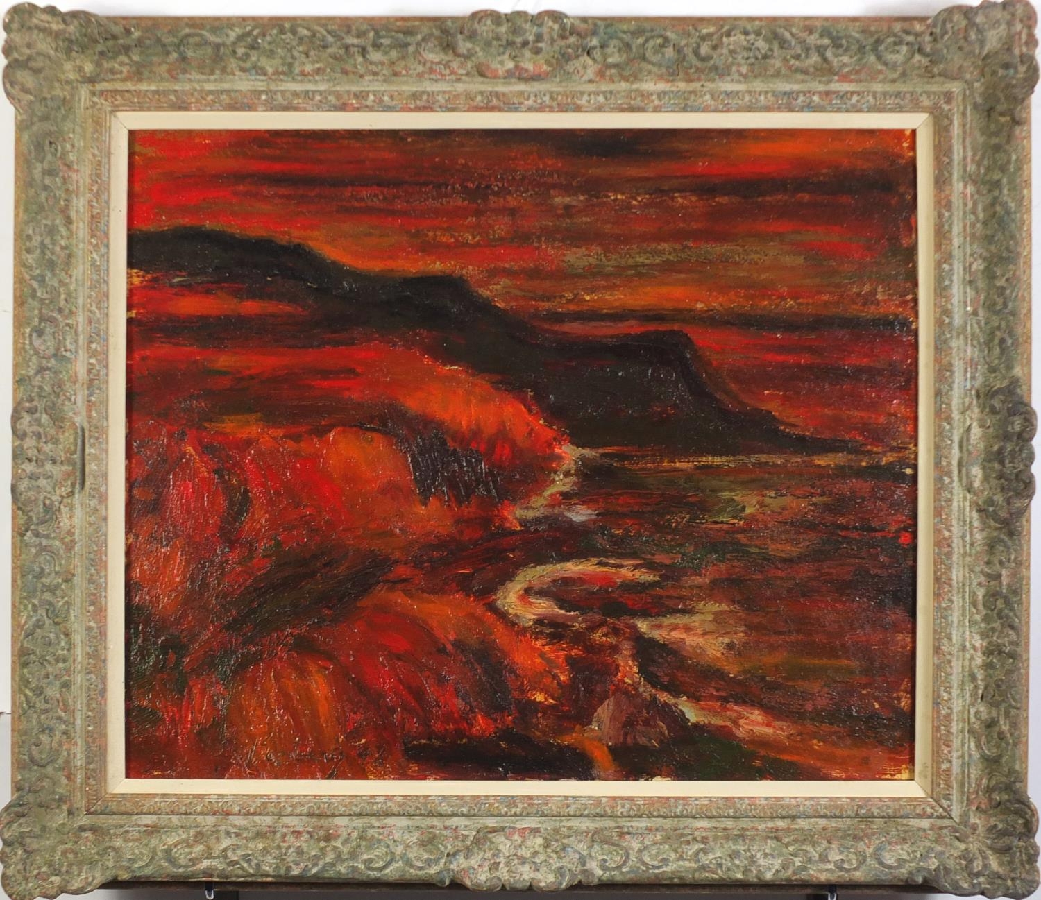 Manner of David Bomberg - Sunrise coastal scene, Post Impressionist oil on canvas, mounted and framed, 59cm x 49.5cm