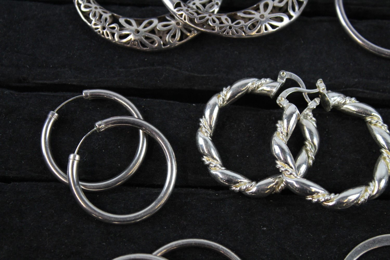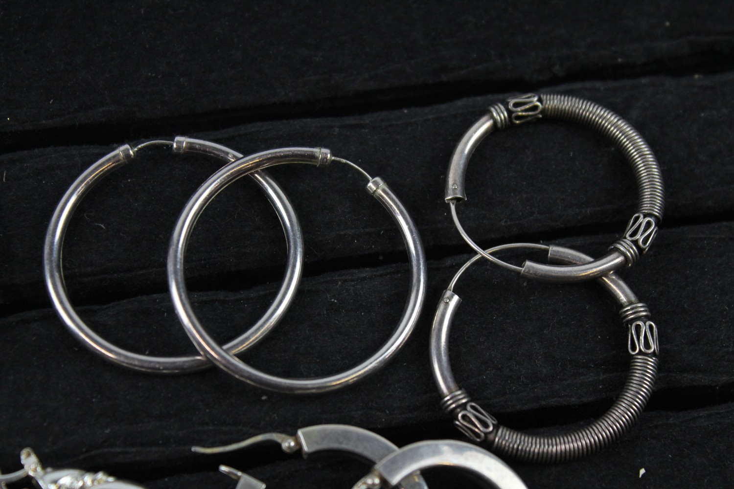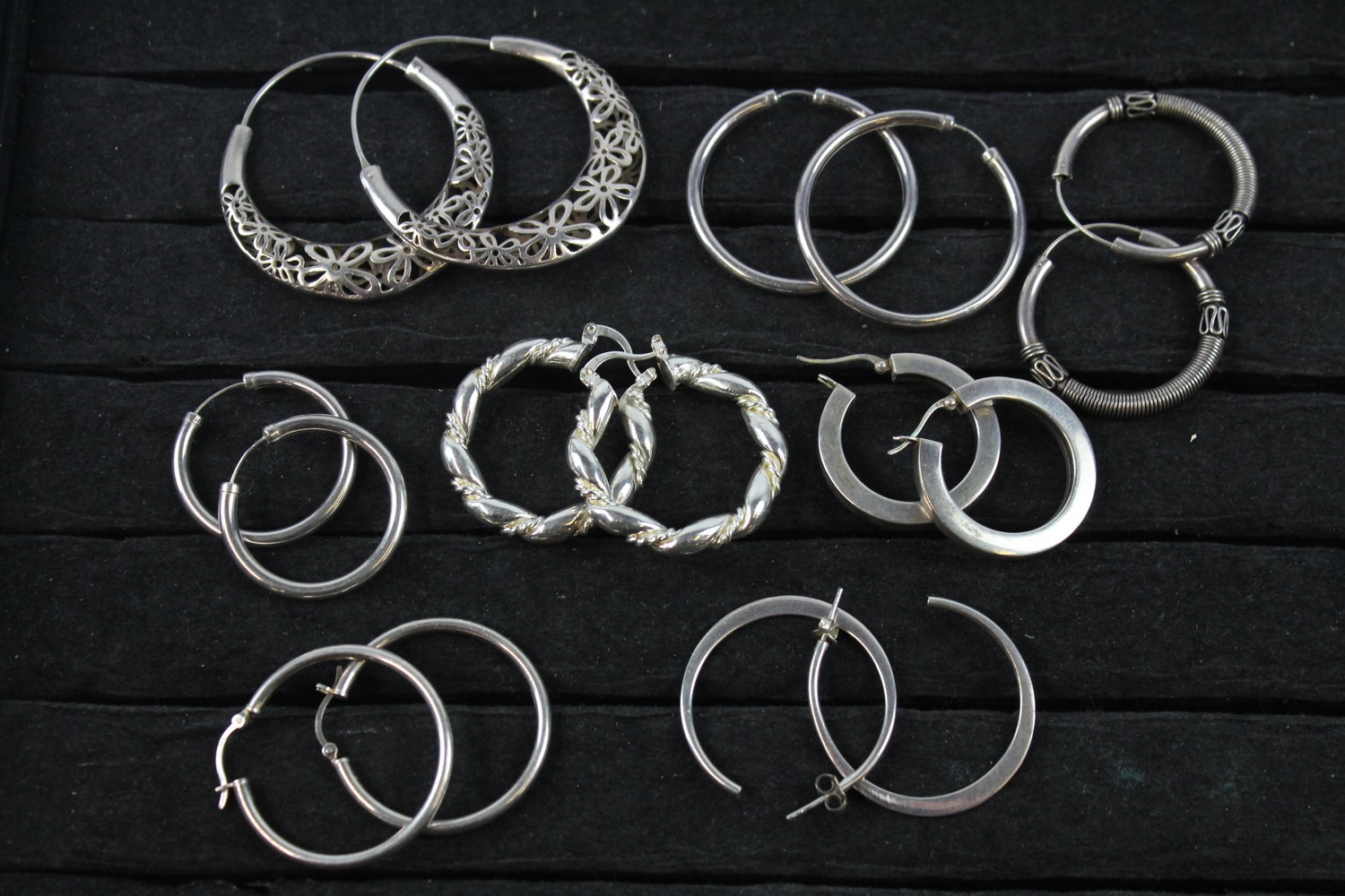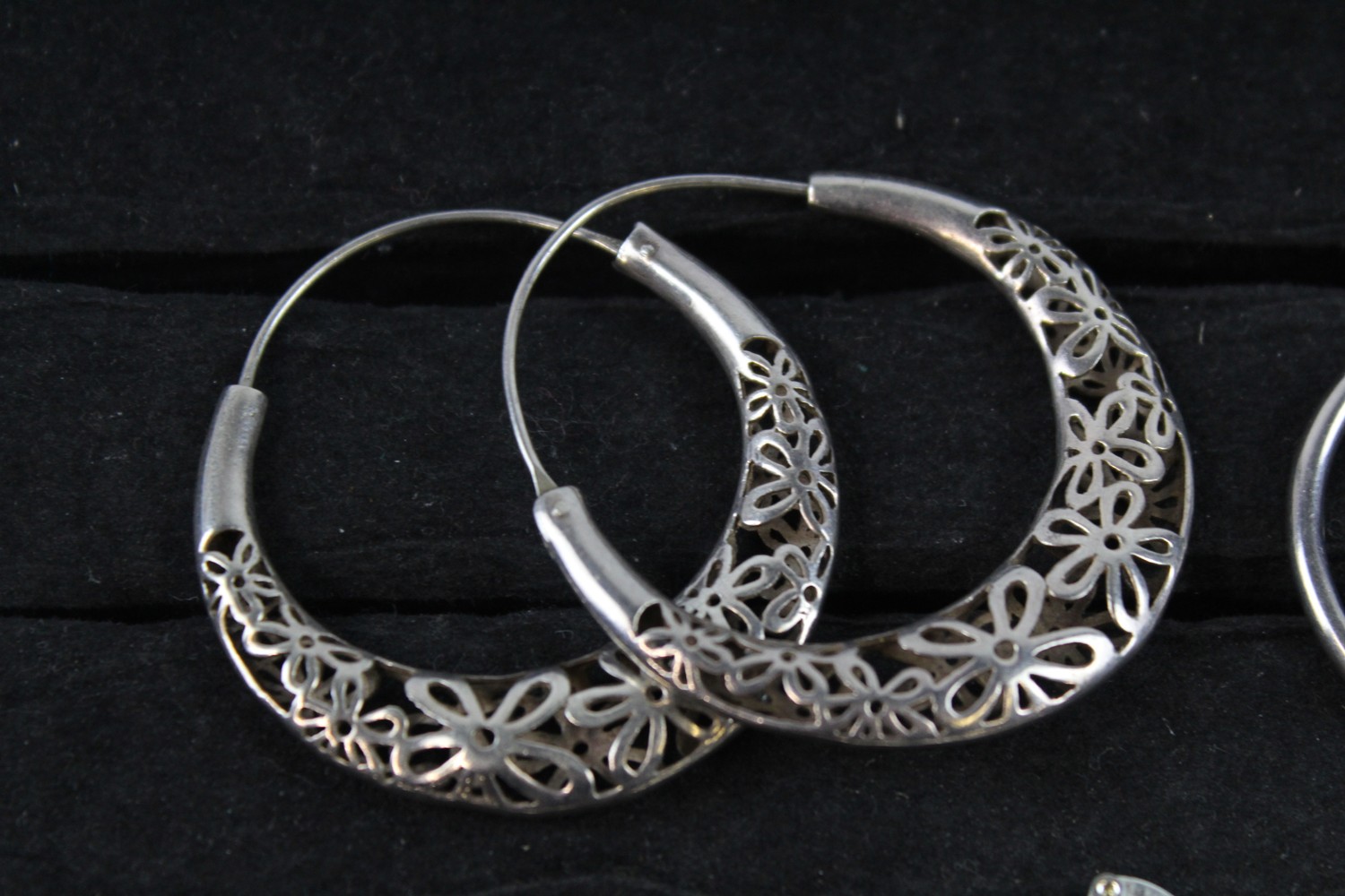 8 x .925 Sterling Silver HOOP EARRINGS inc. Floral, Statement, Chunky (55g)