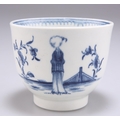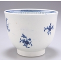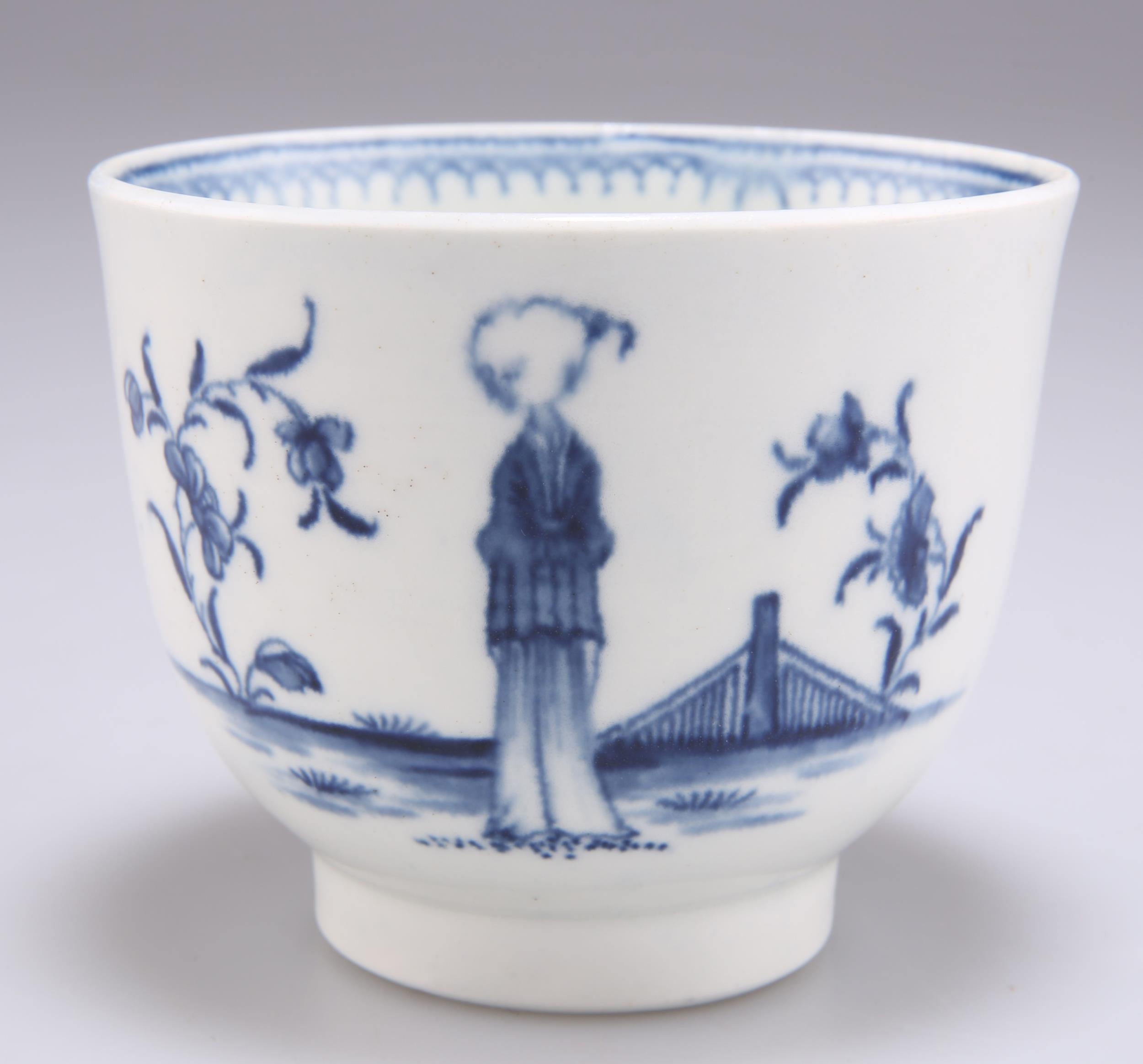A WORCESTER SUGAR BOWL, CIRCA 1770, underglaze blue decorated with the 'Waiting Chinaman' pattern, crescent mark. 7cm high