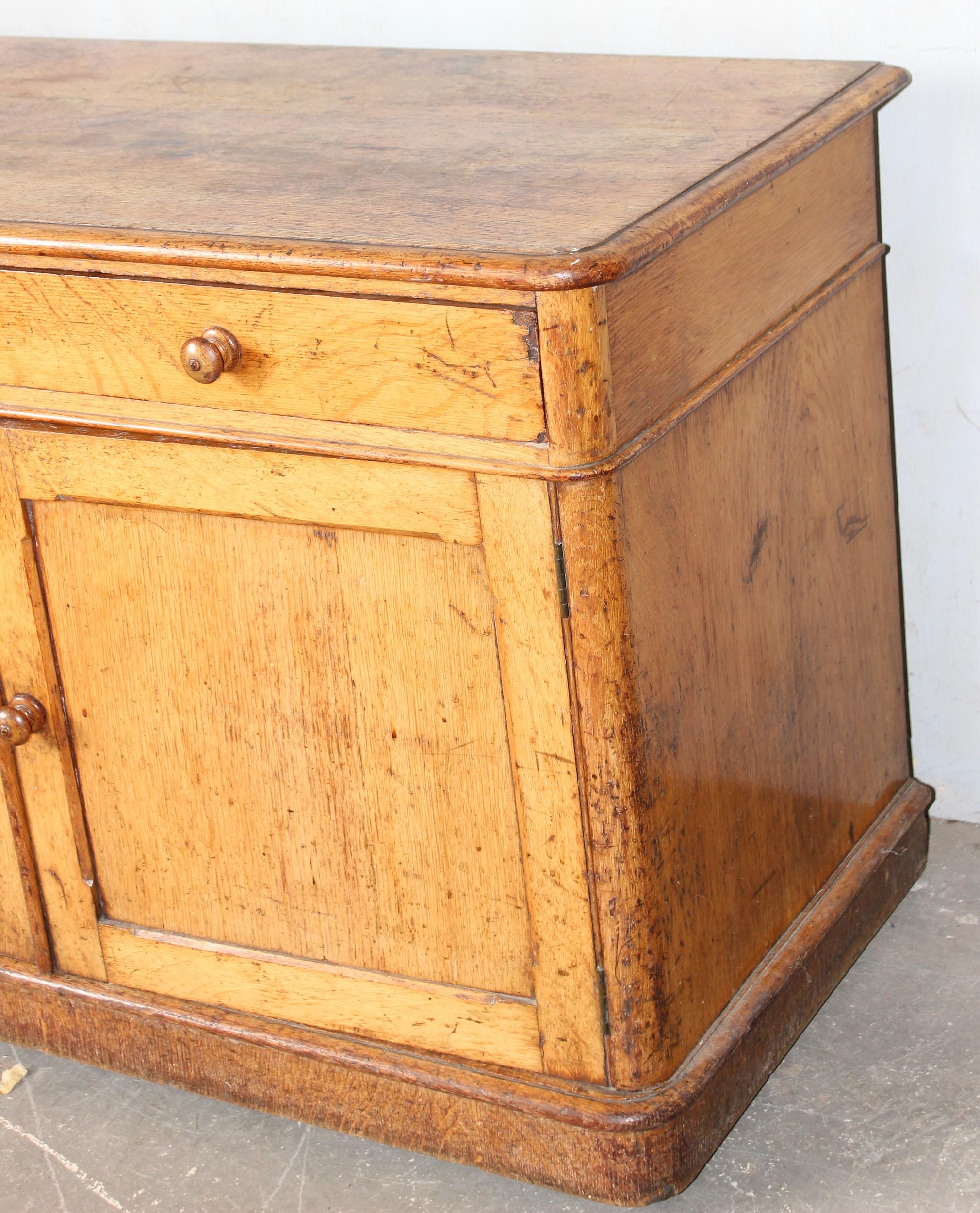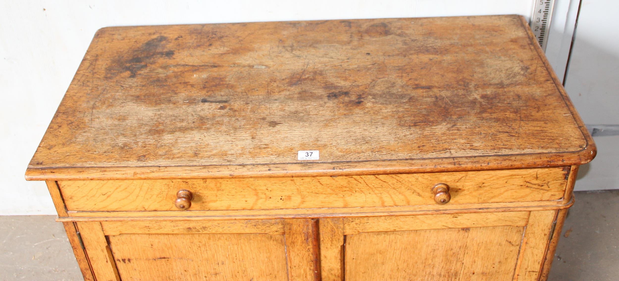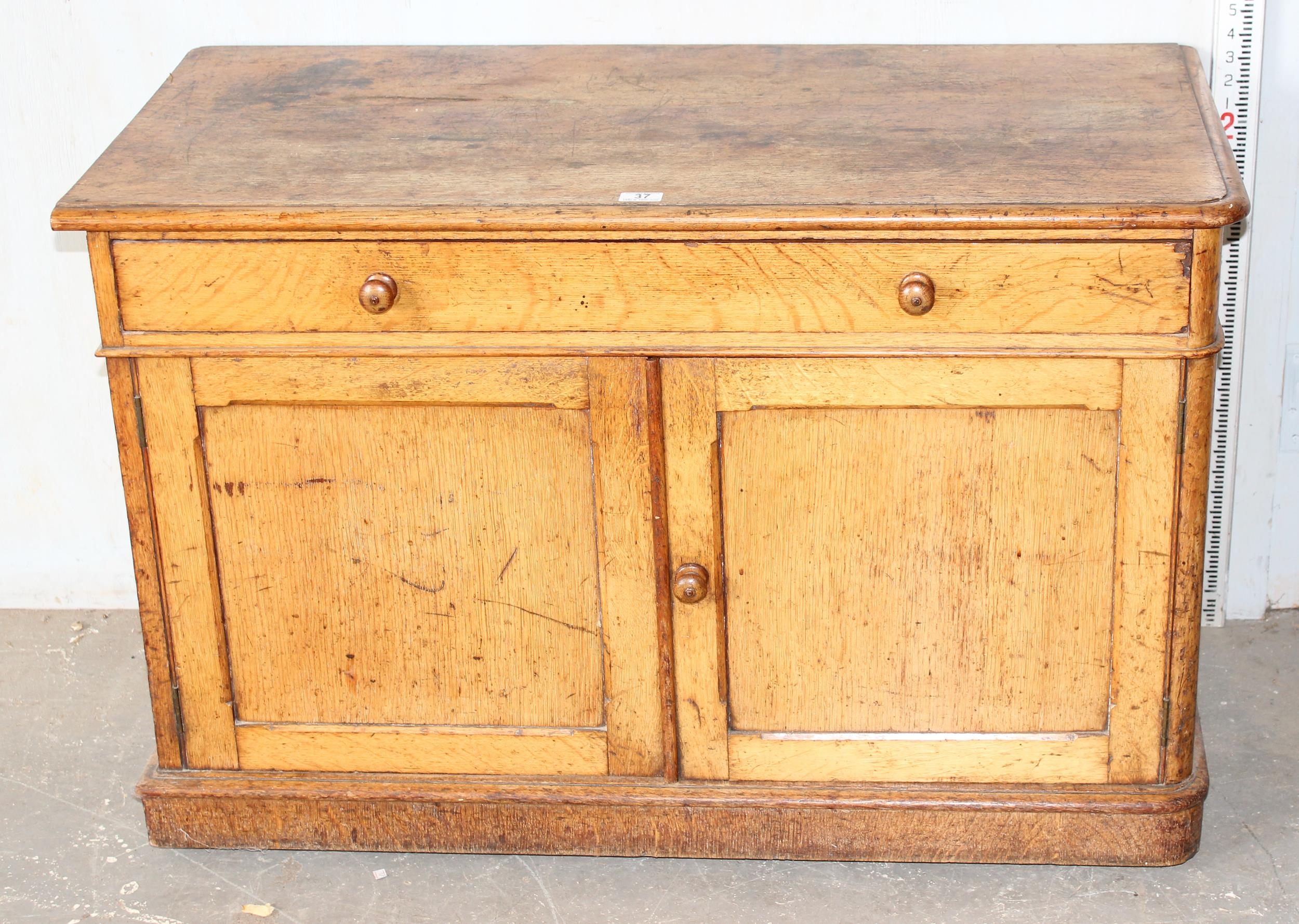 A small vintage oak cupboard with one long drawer, approx 107cm wide