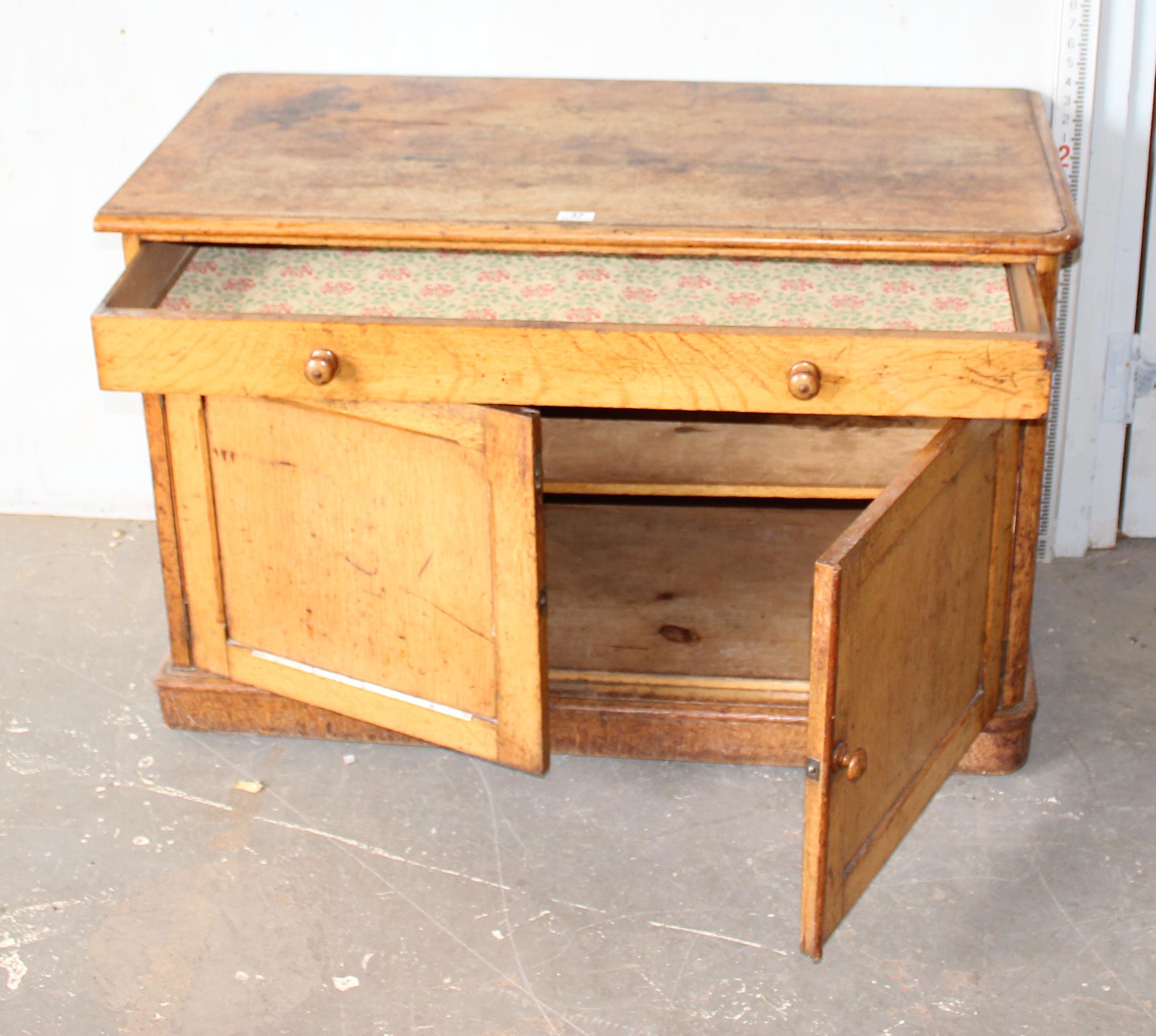 A small vintage oak cupboard with one long drawer, approx 10...