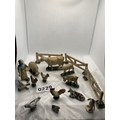LEAD playworn toys comprising farmers wife, bull, sheep, cow, goat, fowl, rabbit, penguin and fencing