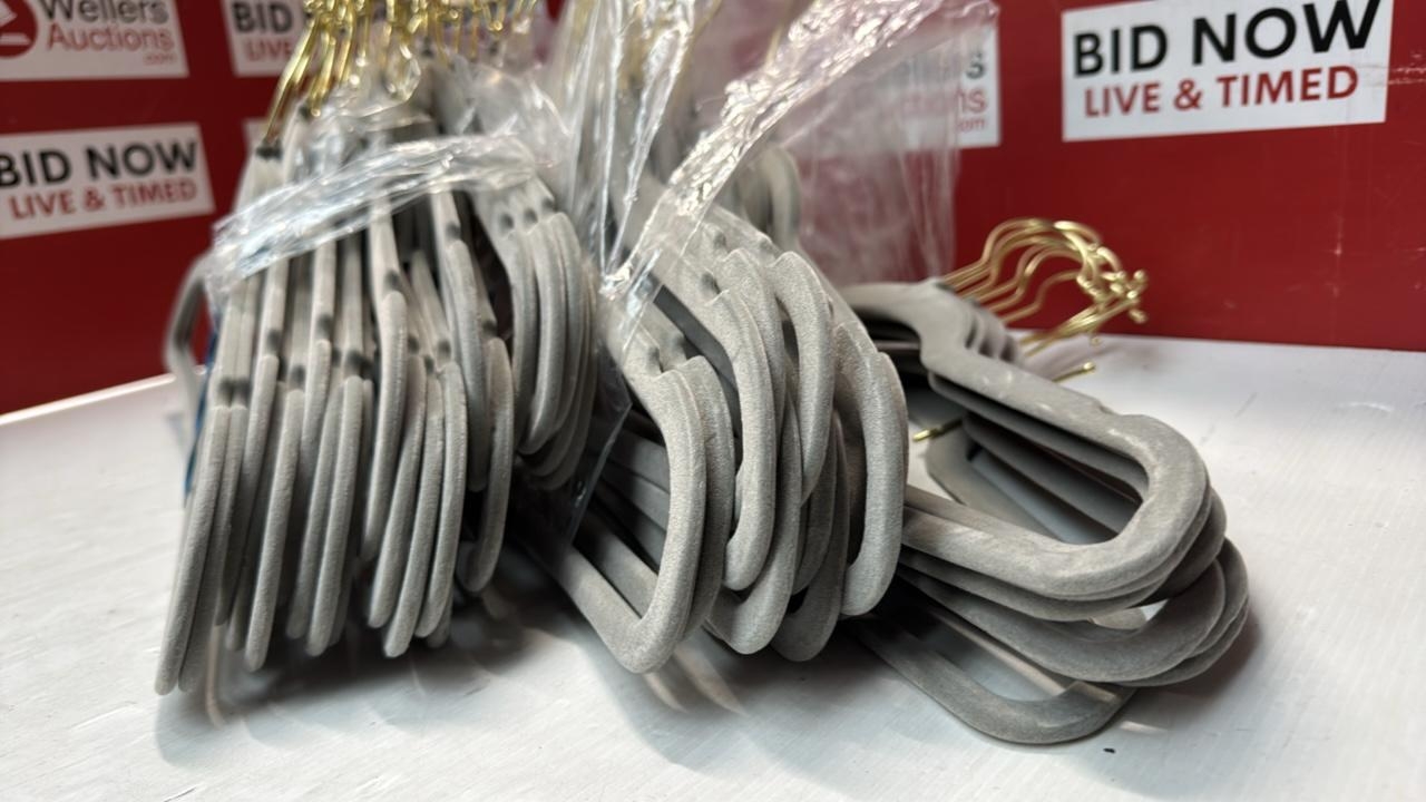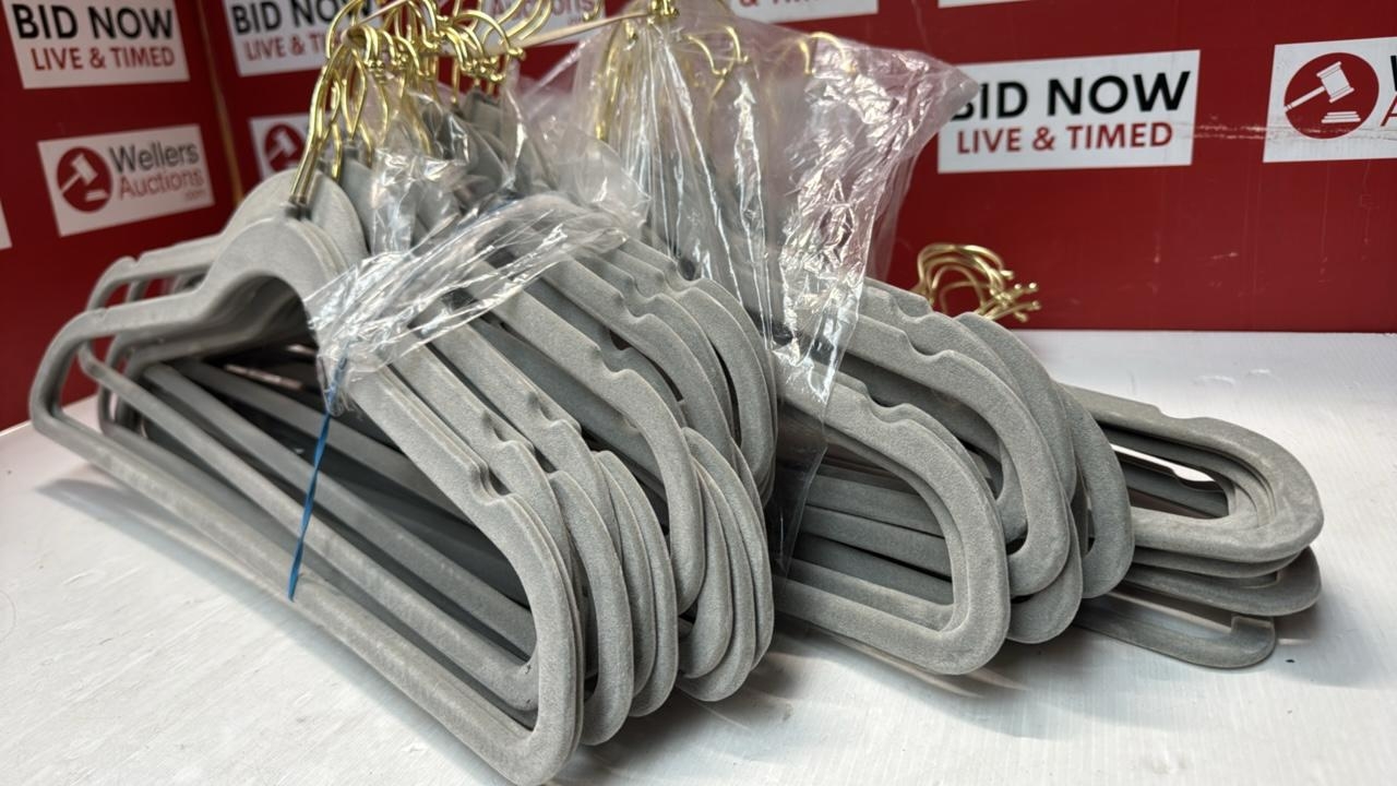 MANGOTREE VELVET COAT HANGERS WITH 360� SWIVEL GOLD HOOK, NON-SLIP FELT SUIT HANGERS, SLIM SPACE SAVING CLOTHES HANGER FOR JACKET, SWEATER, SHIRT, DRESS, PANT (48 PACK, GREY) [48]