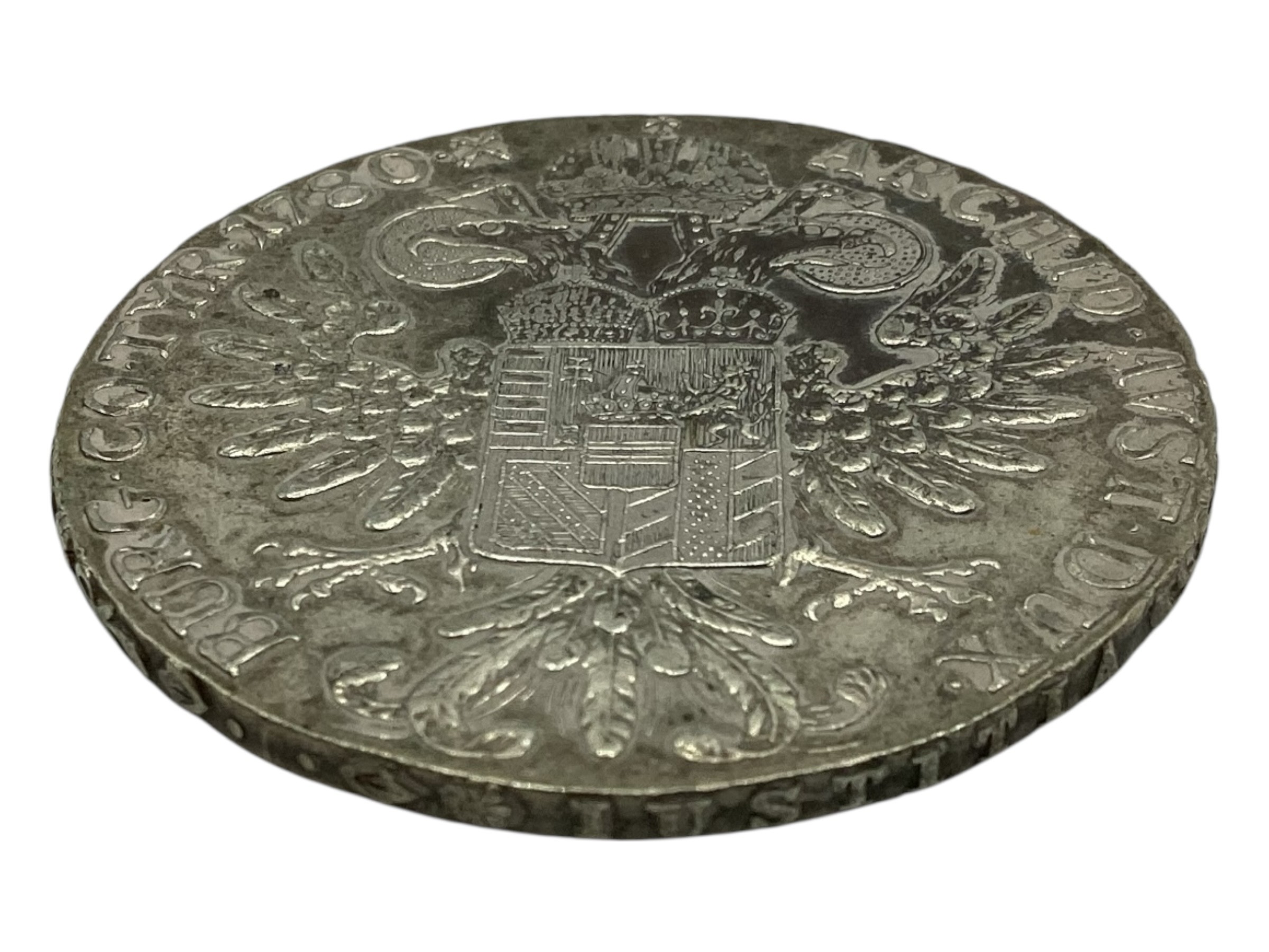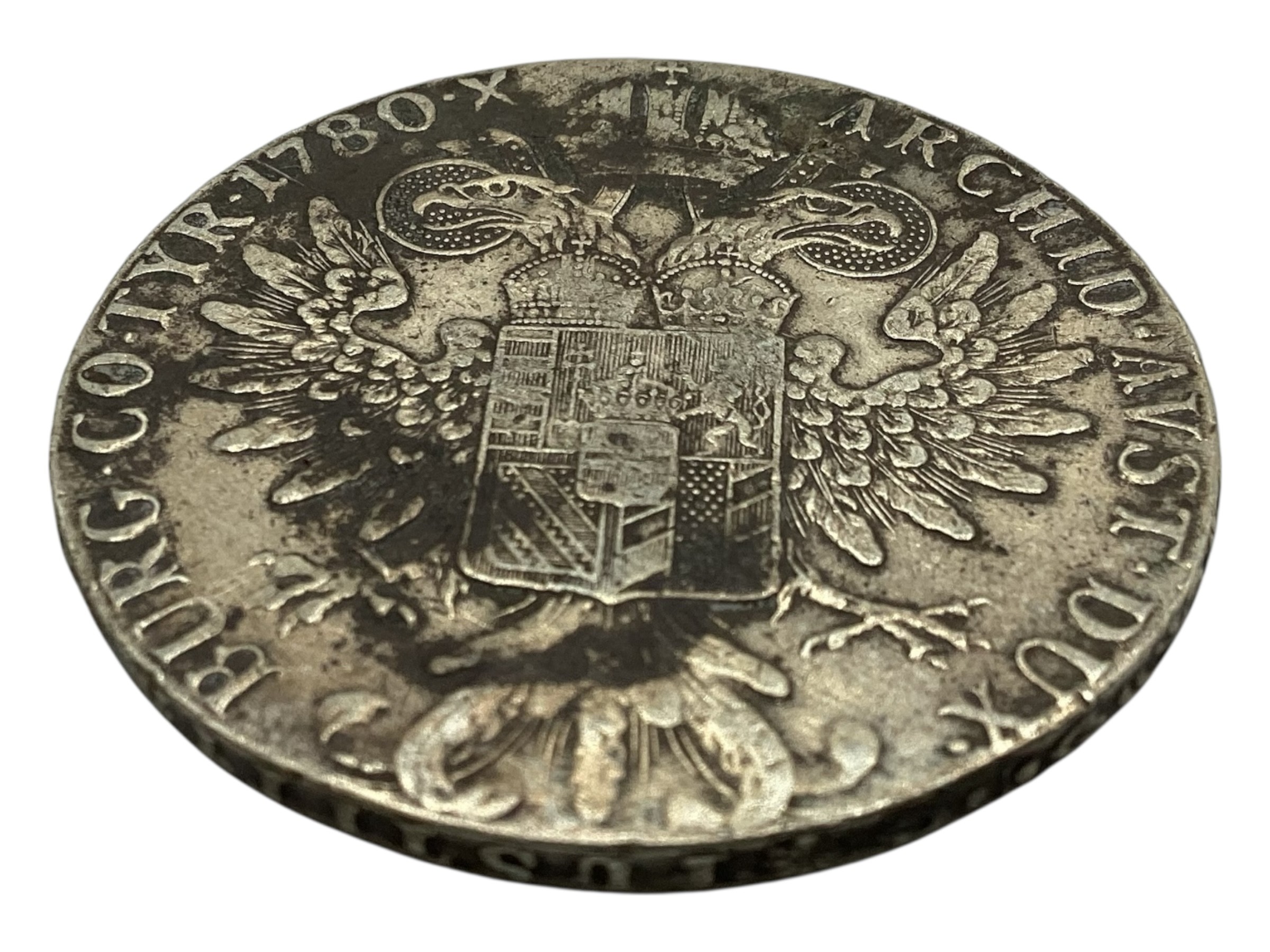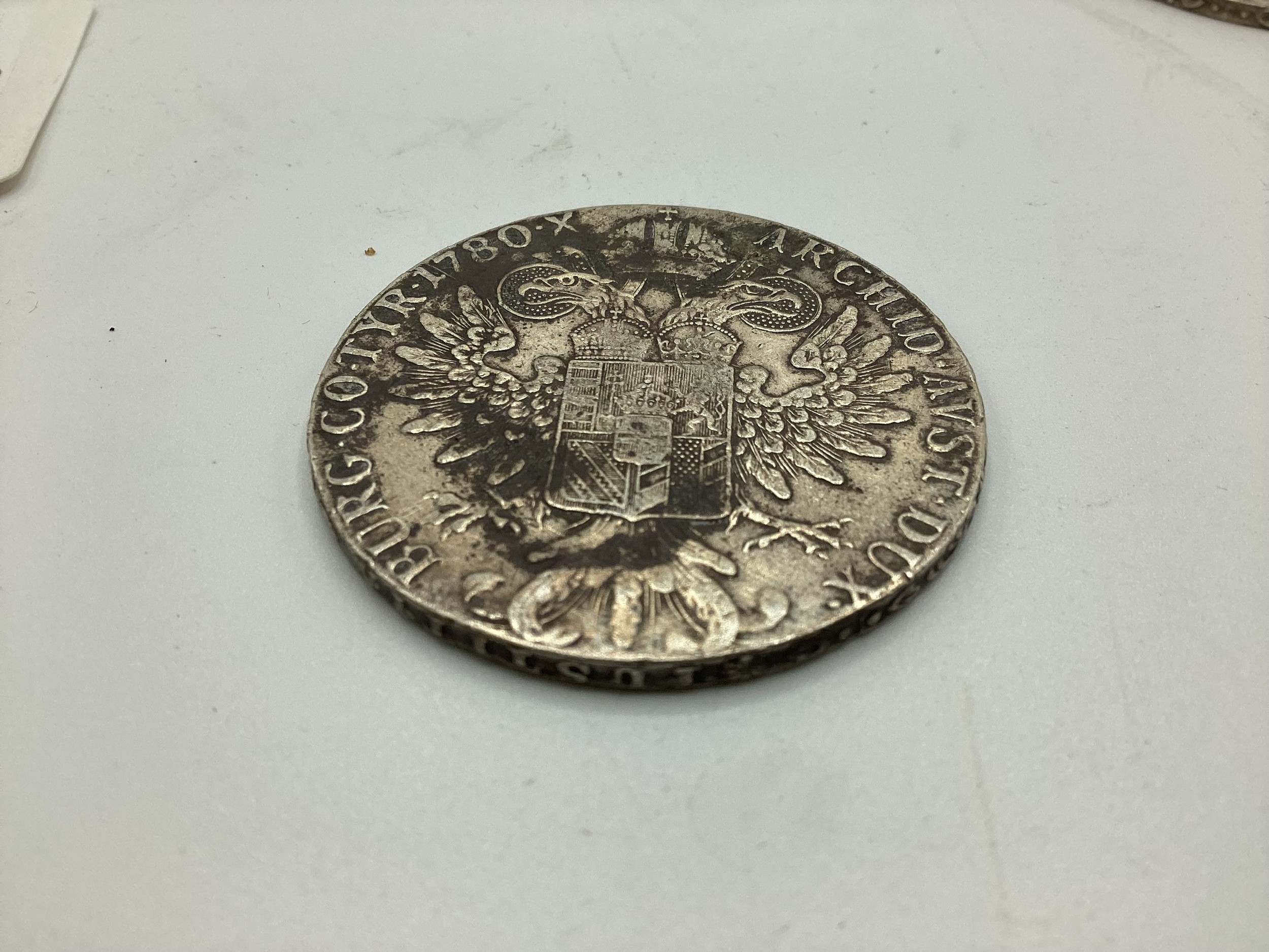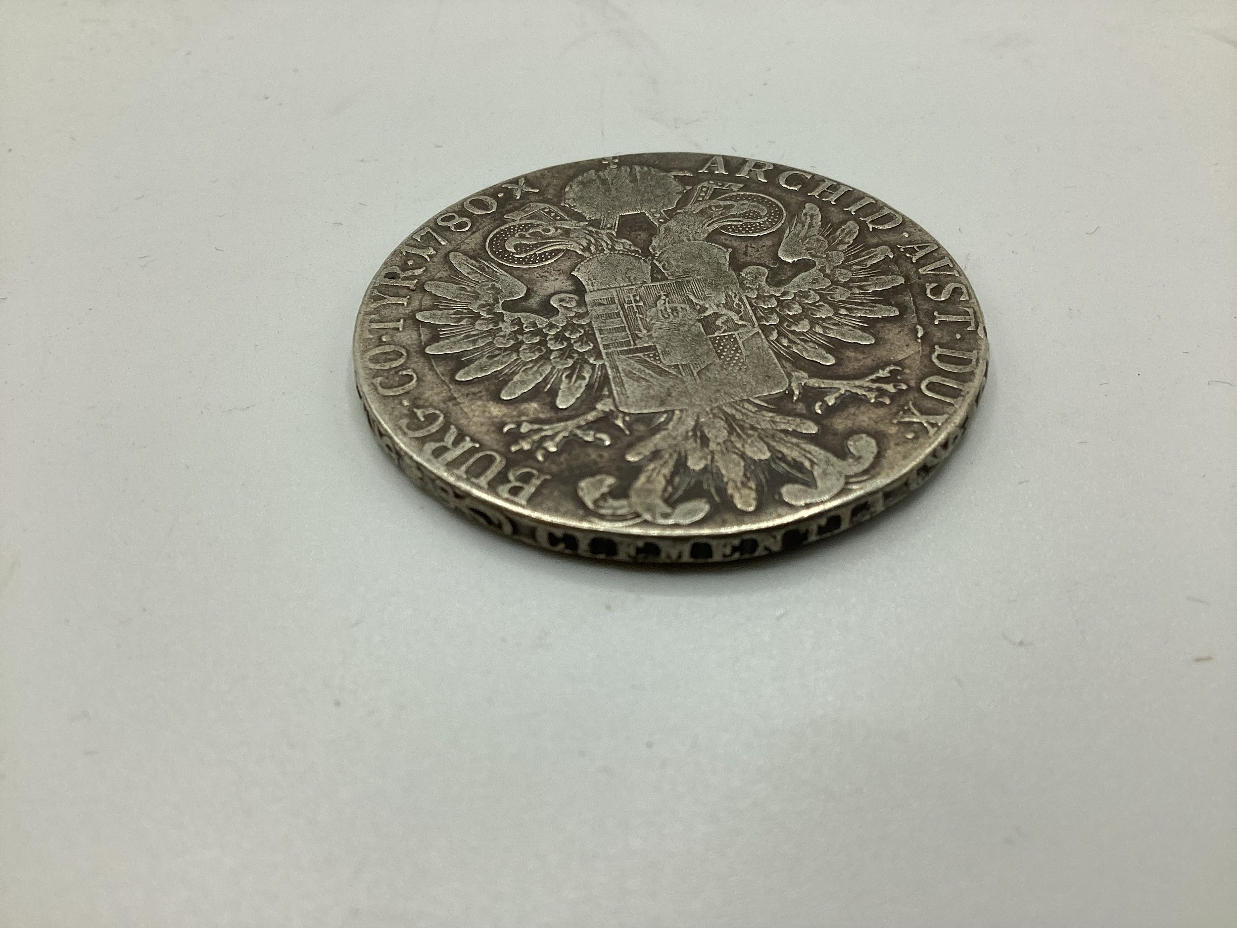 Three Maria Theresa coins dated 1780 together with a Victorian 1890 double florin and an Ottoman white metal coin together with three commemorative coins.