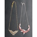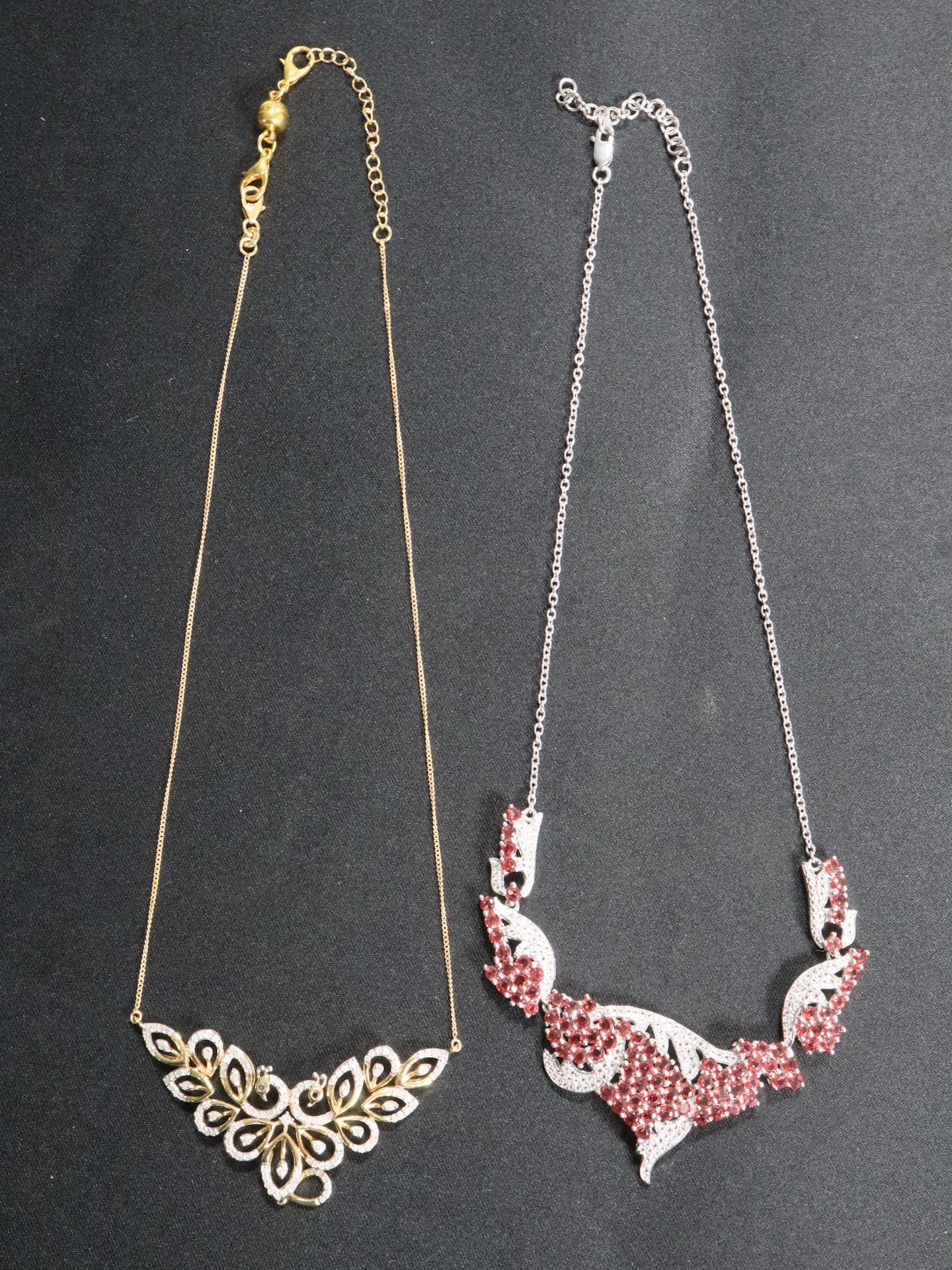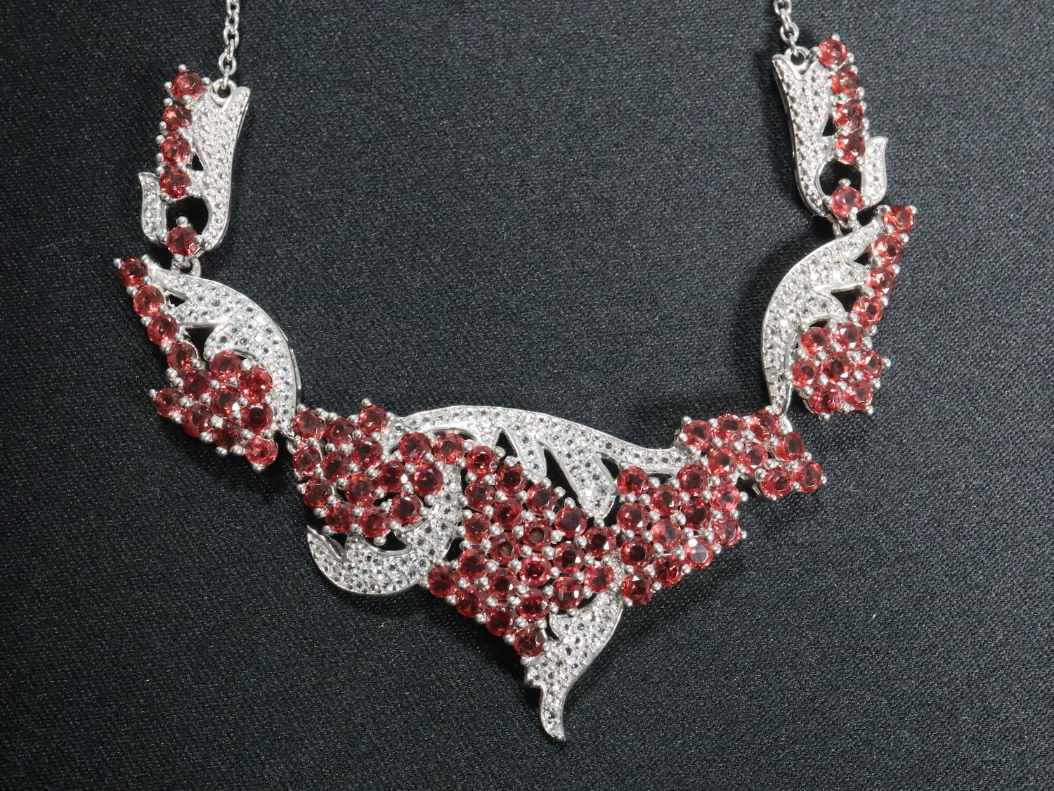 Mozambique Garnet & White Topaz Sterling Silver Necklace 14.09cts + 1.3ct White & Black Diamond Midas Gold Plated Silver Necklace with COA's