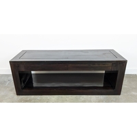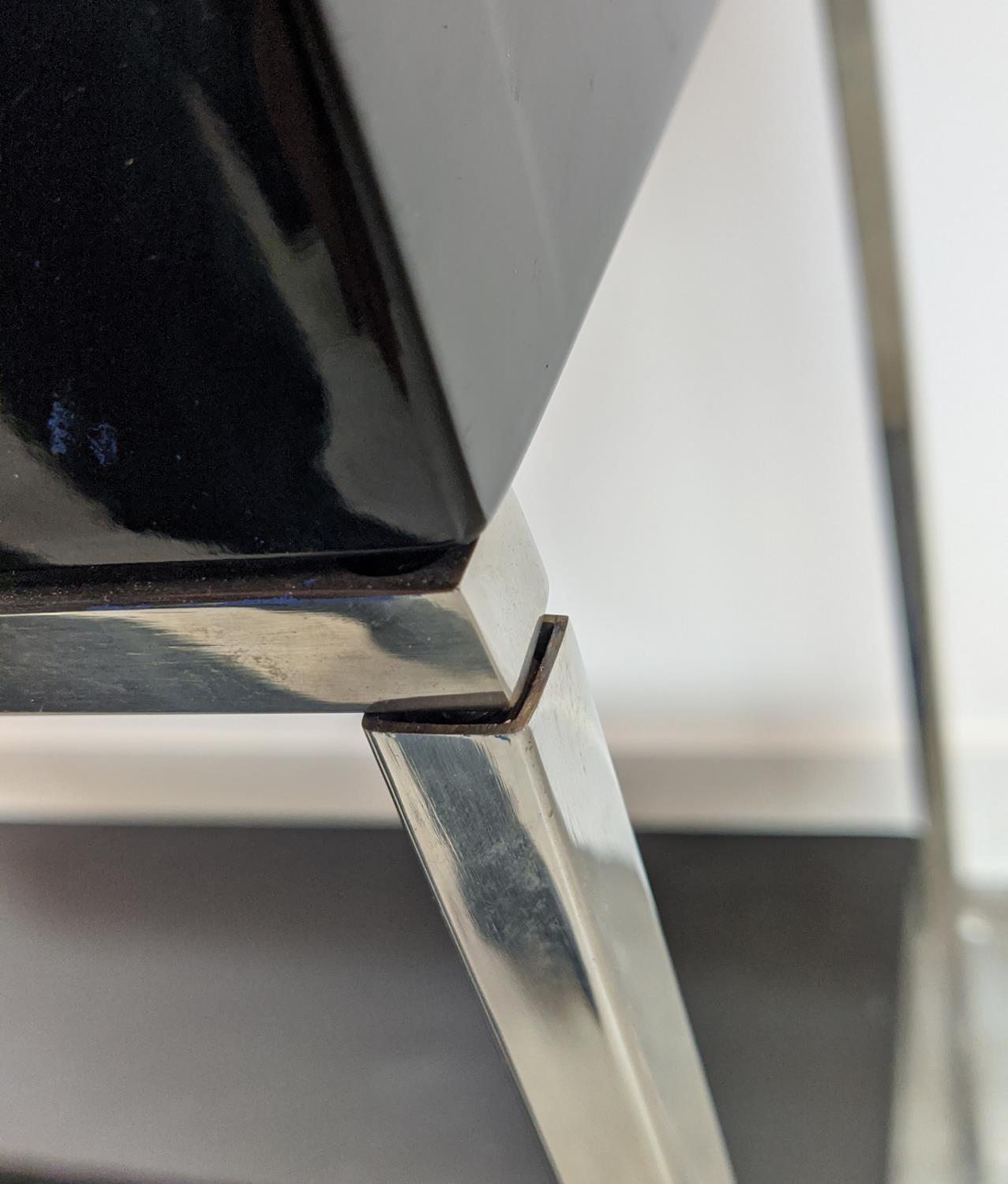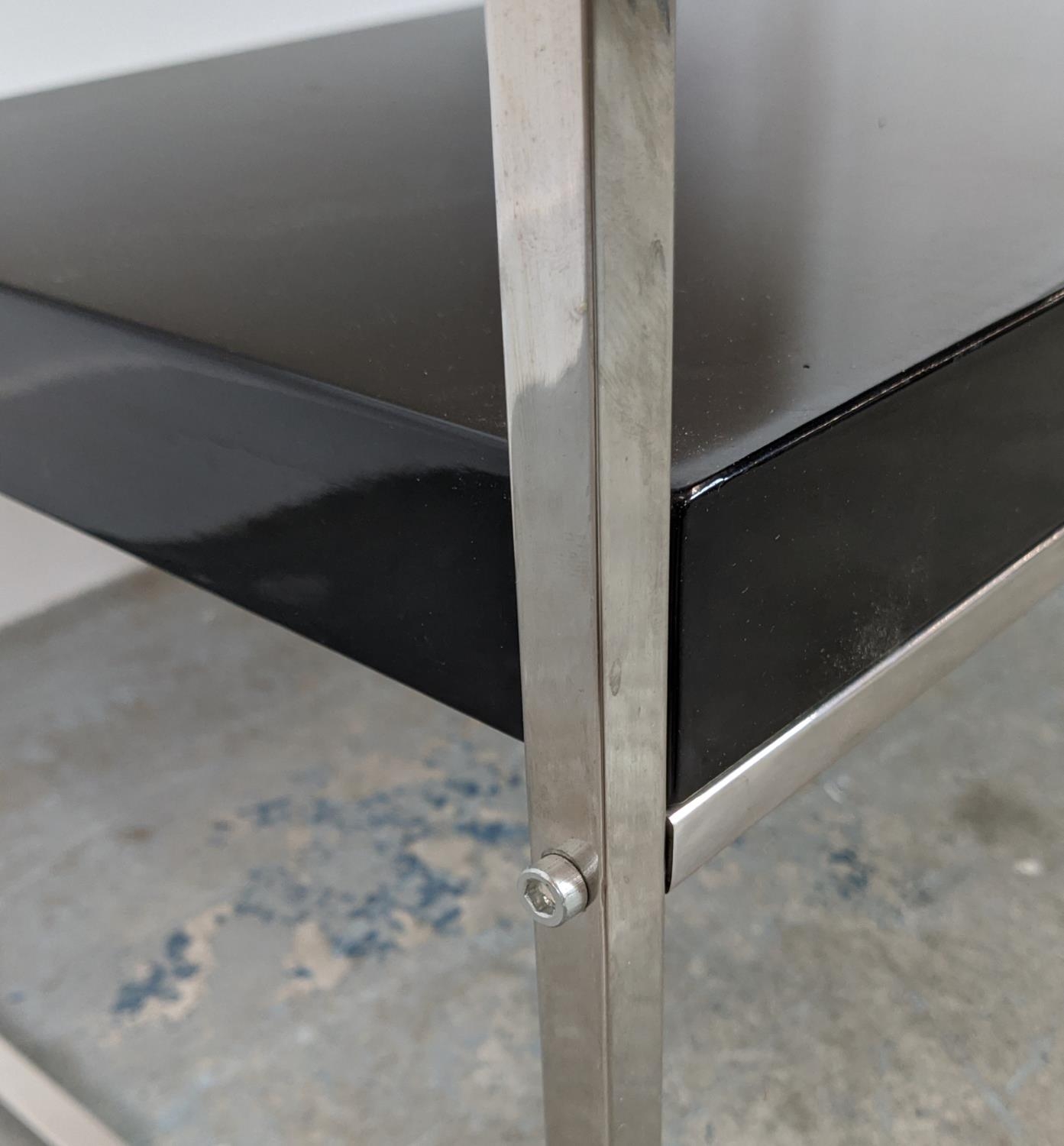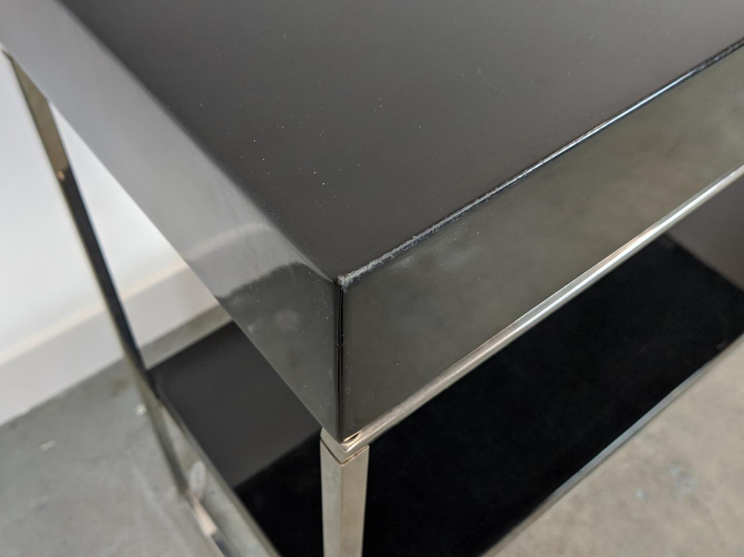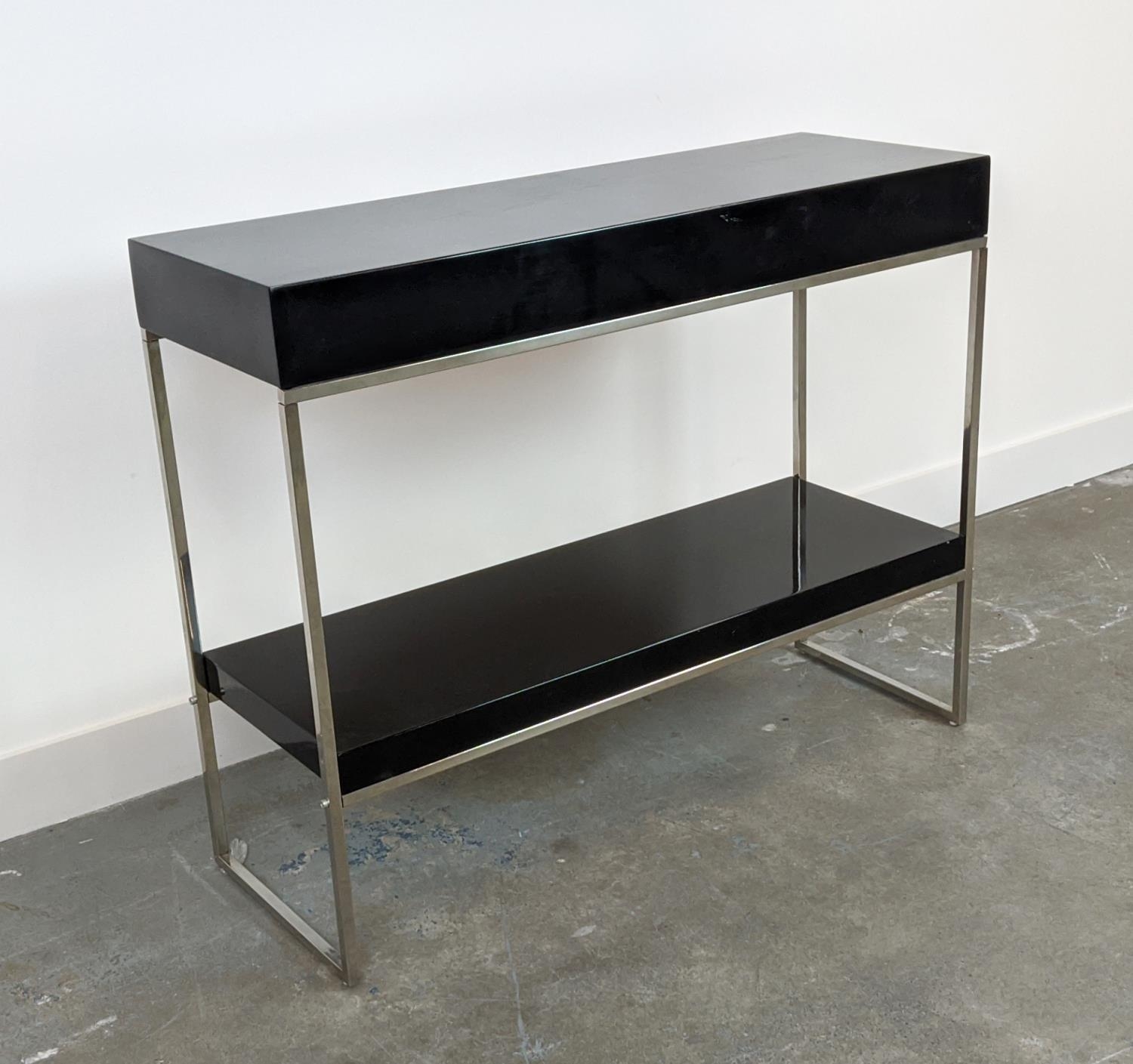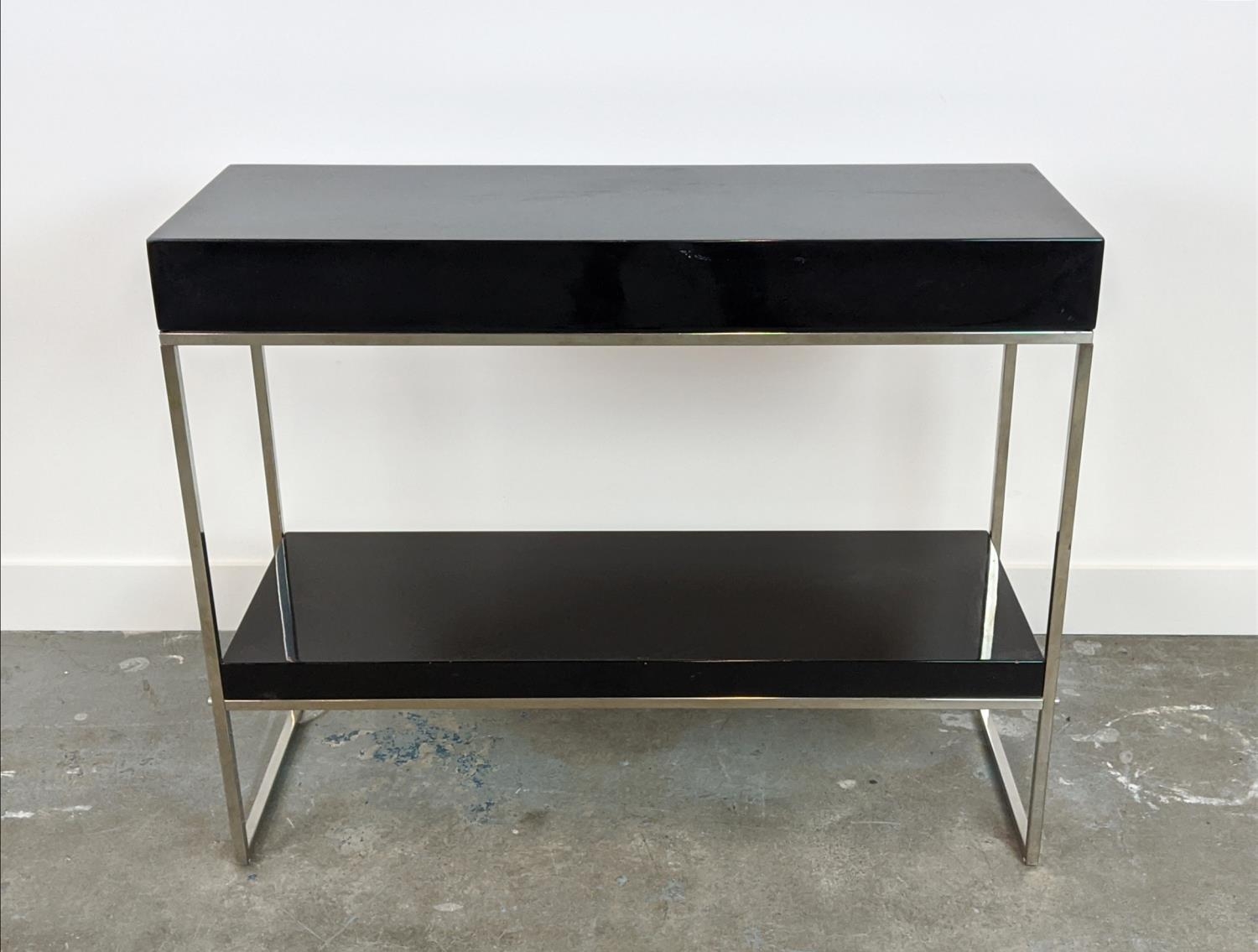 CONSOLE TABLE, 100cm x 35cm x 80cm, black lacquered and polished metal.