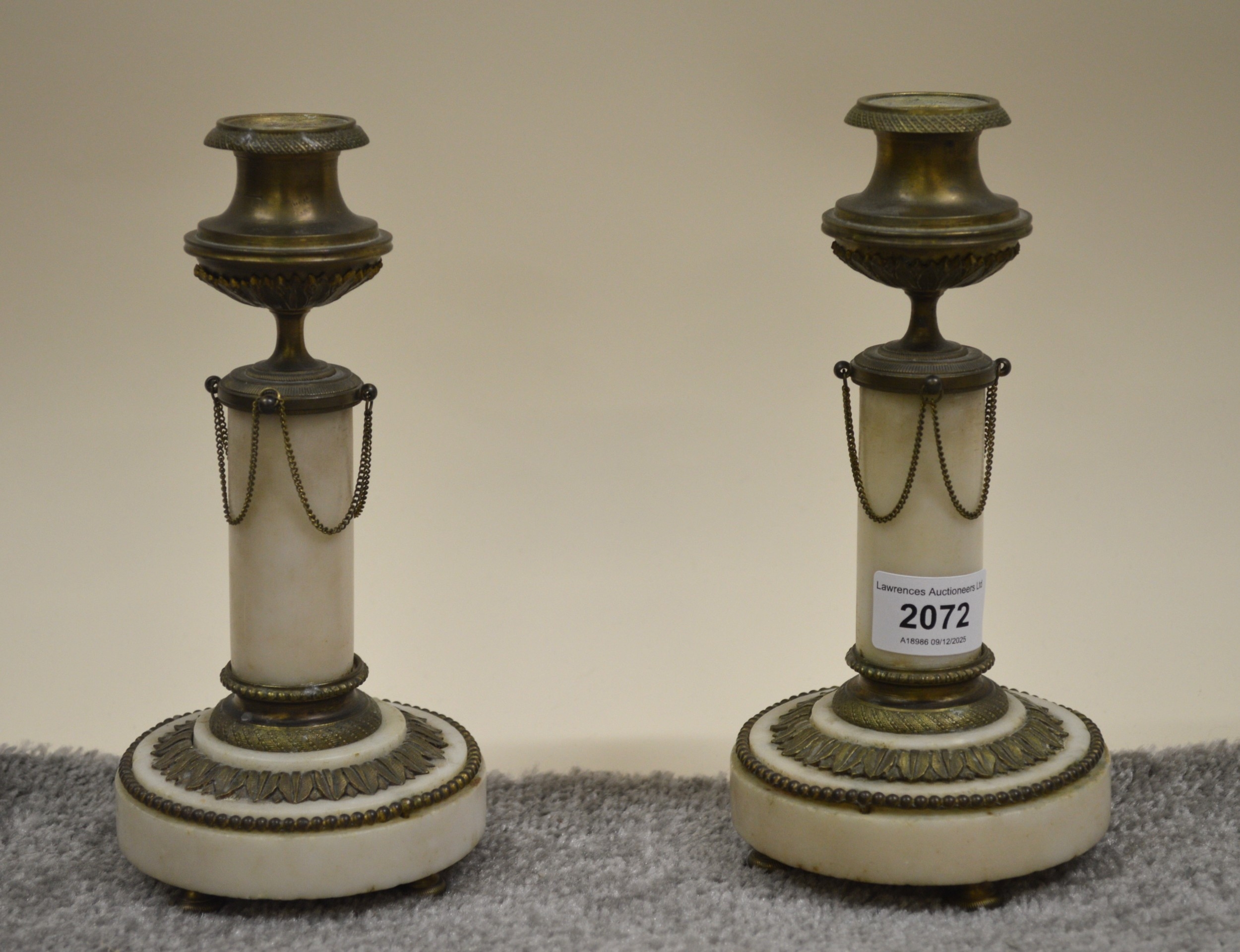 Small chips to alabaster bases. Dirty and dusty. Otherwise in good condition.