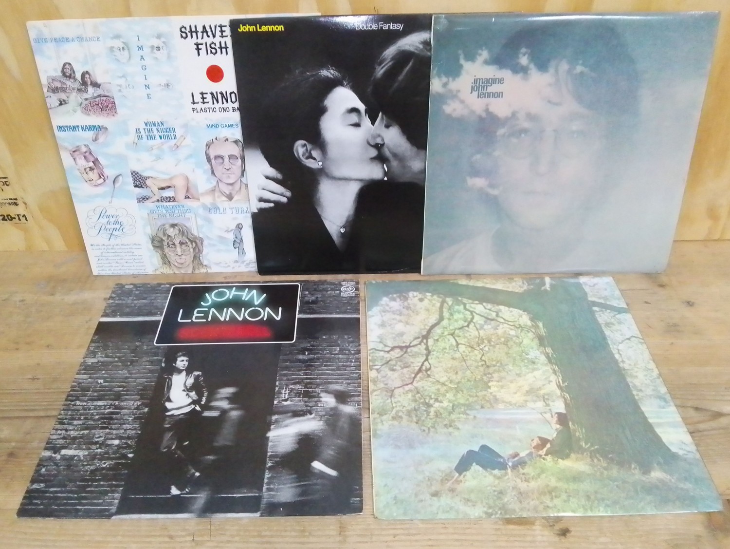 Five John Lennon/Yoko Ono LPs; Shaved Fish, Double Fantasy, Imagine, Rock 'n' Roll and John Lennon/Plastic Ono Band.