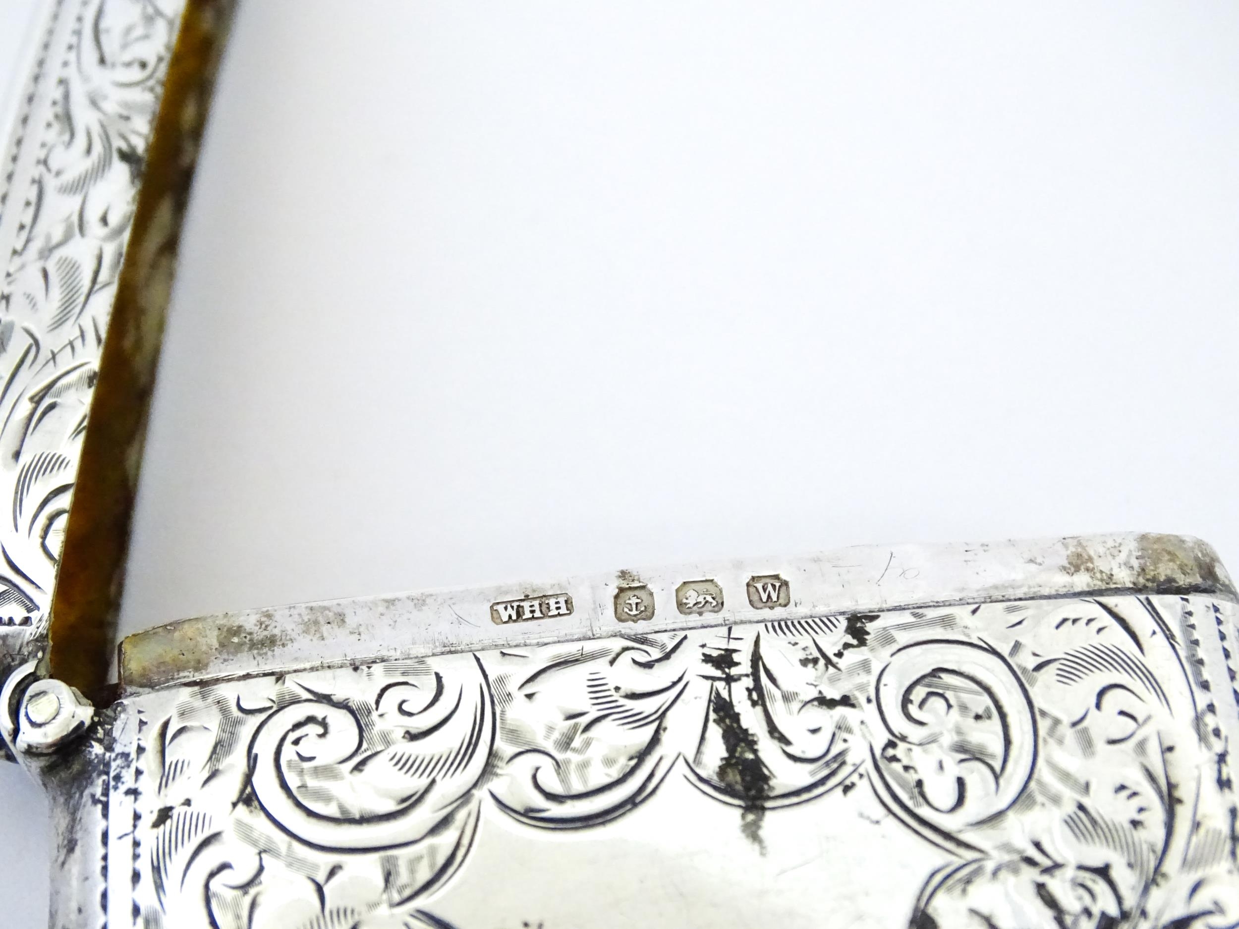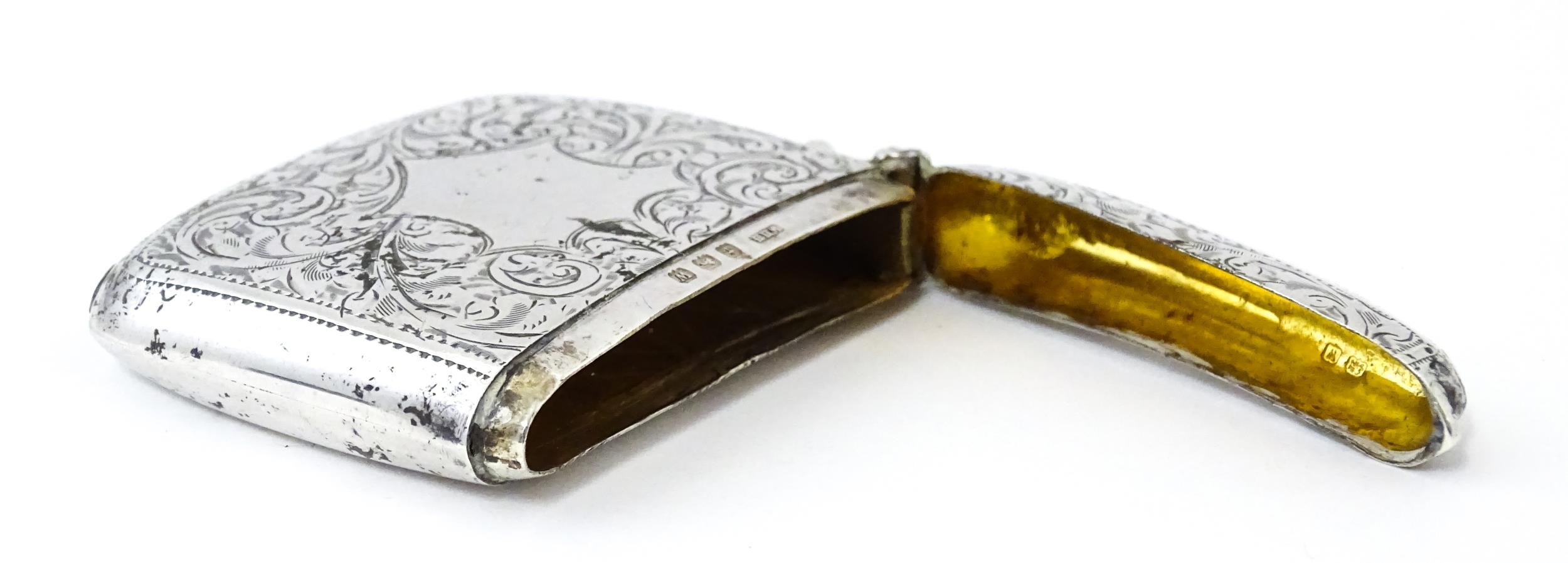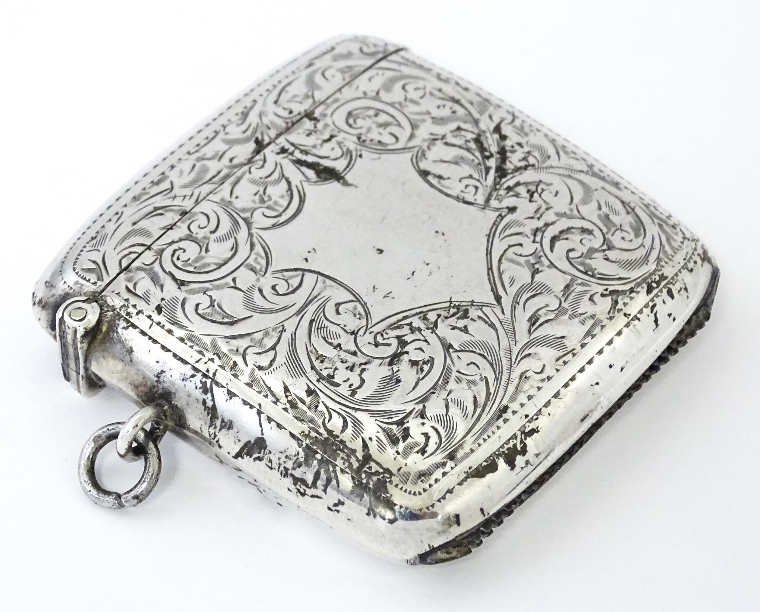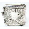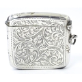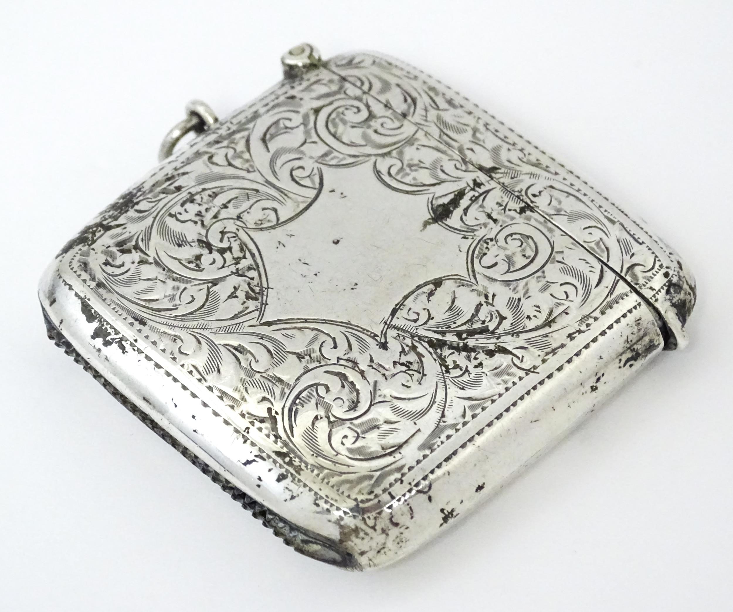 A large silver vesta case with engraved acanthus scroll decoration, hallmarked Birmingham 1921, maker William Hair Haseler. Approx. 2" high