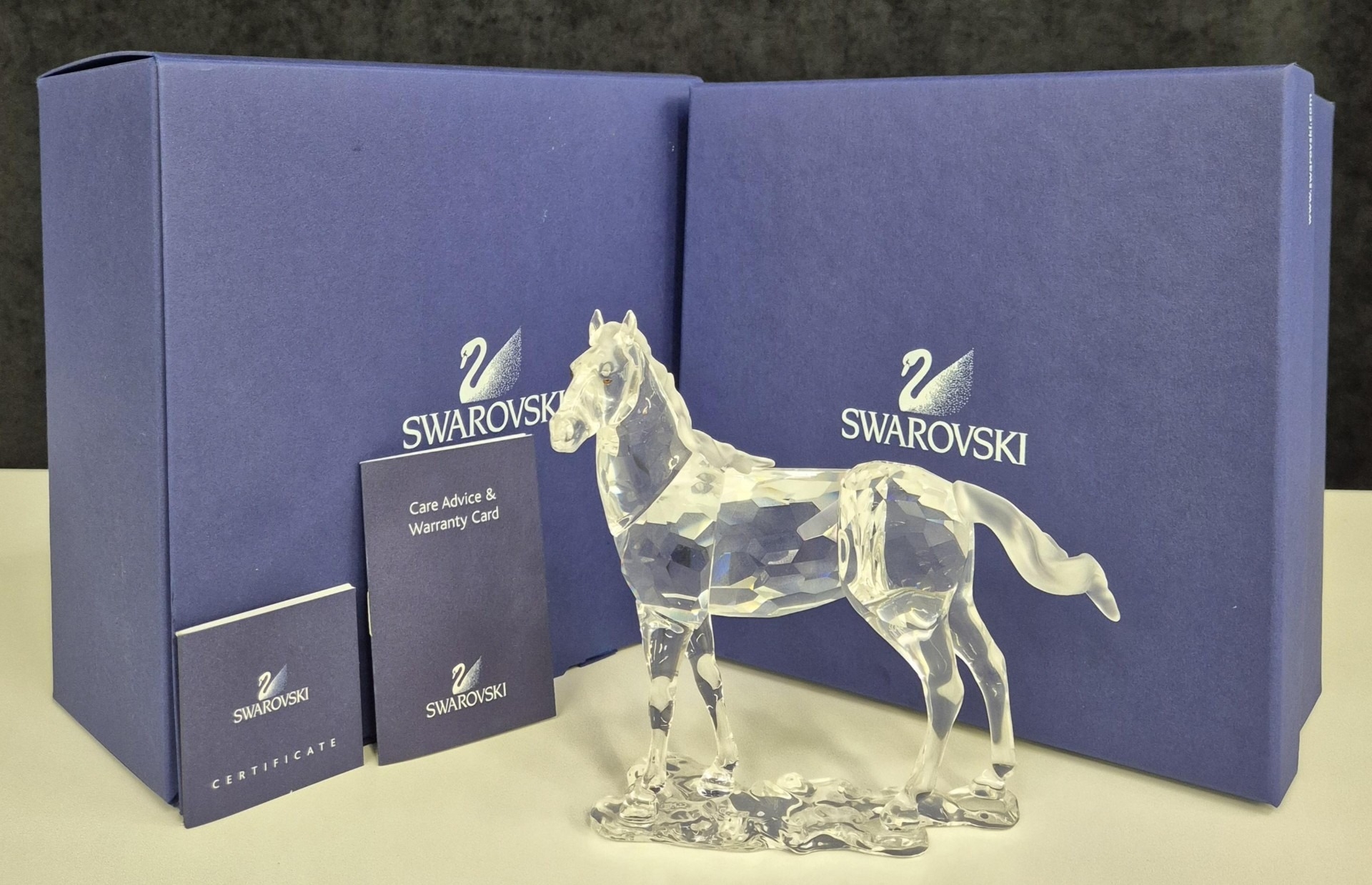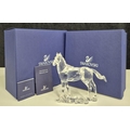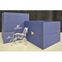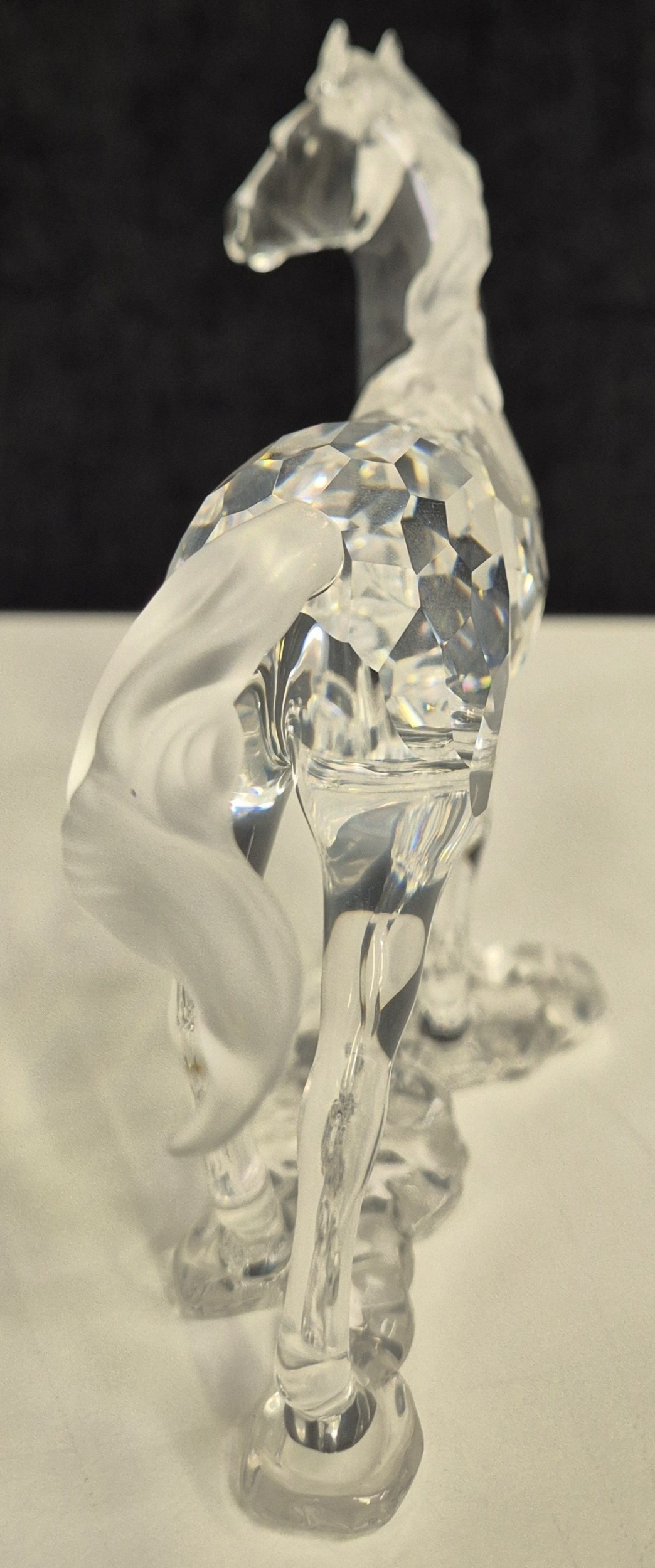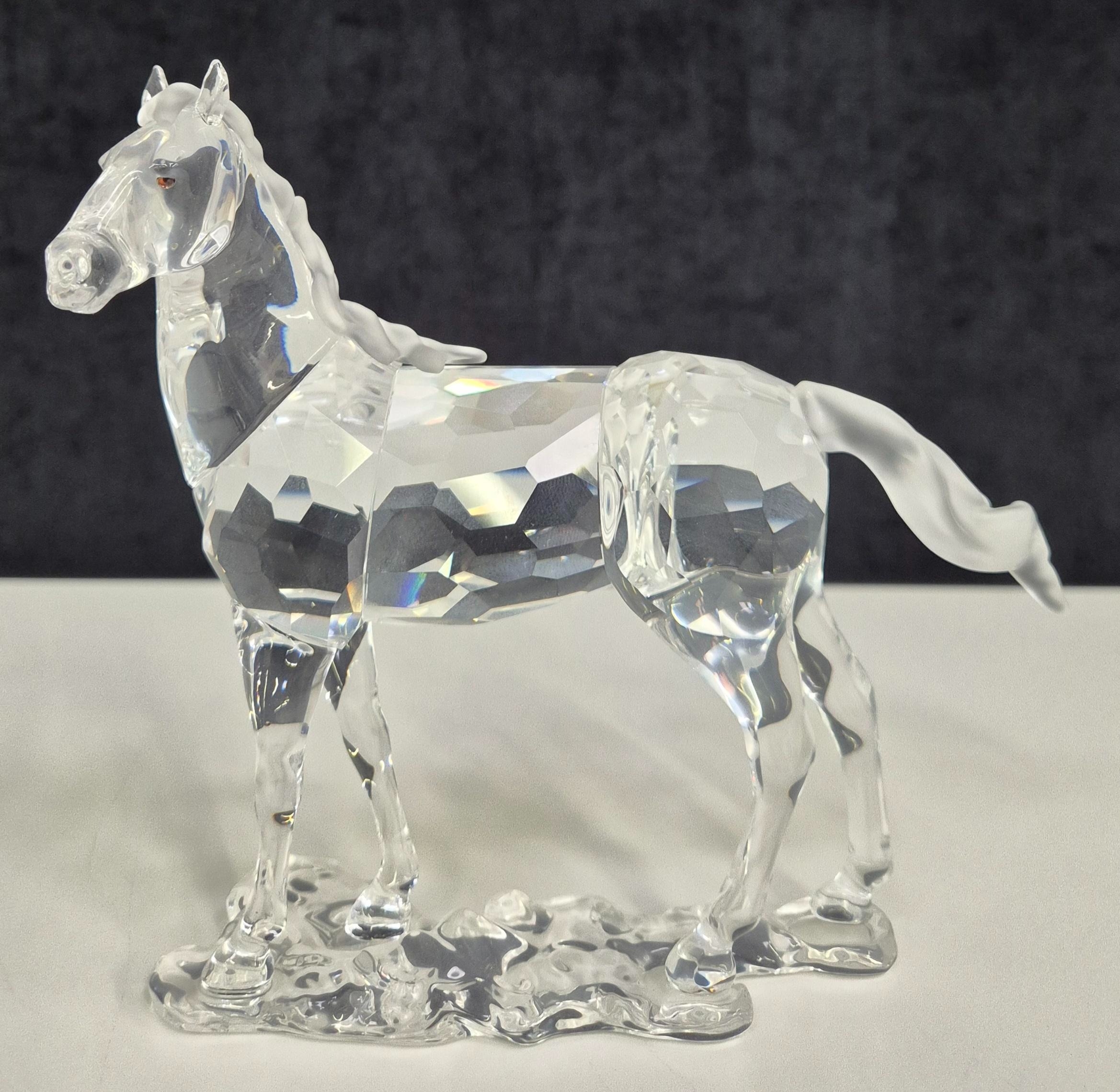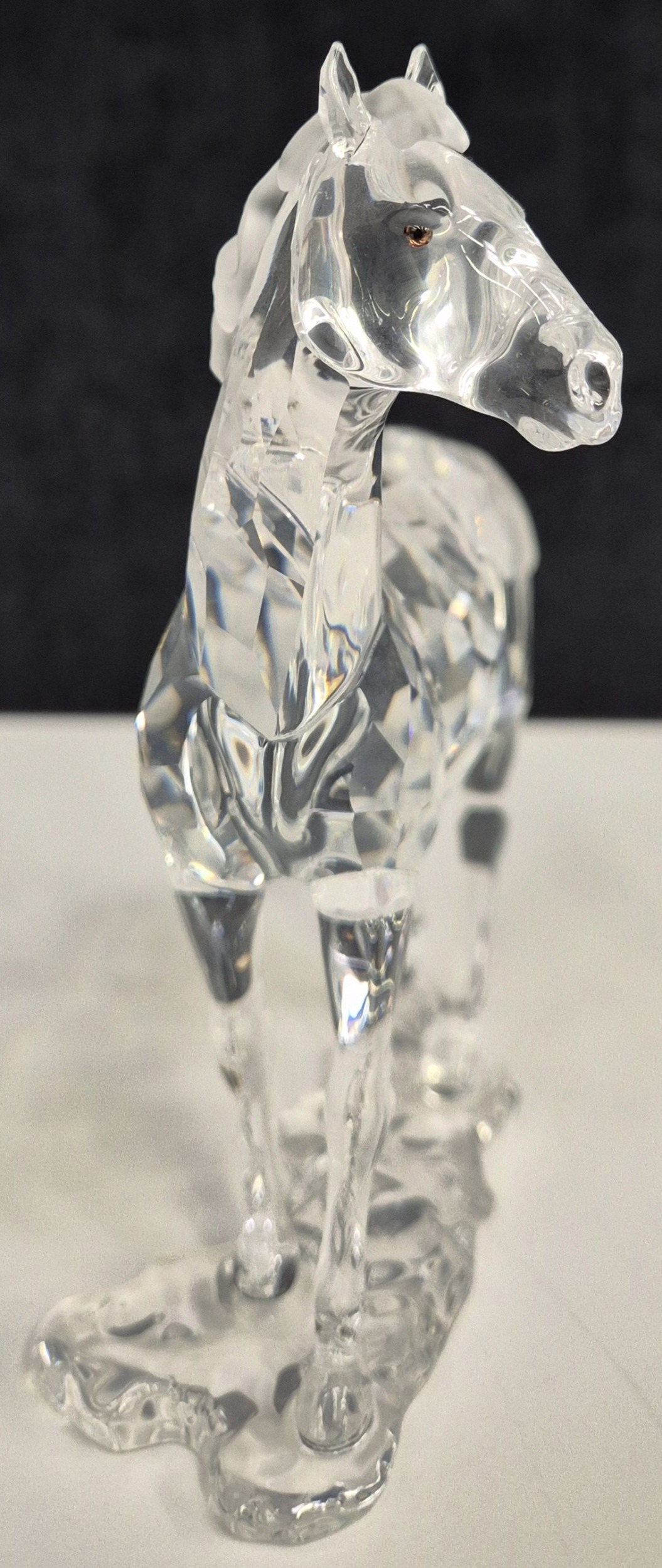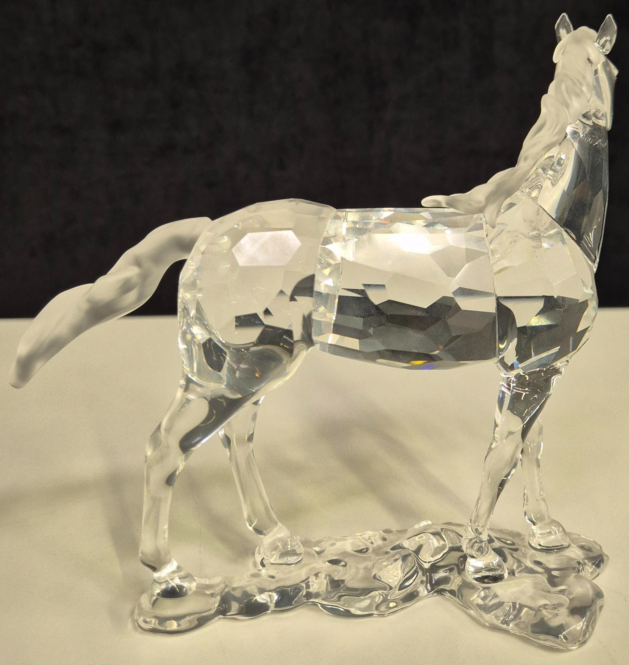 This retired Swarovski crystal mare was part of “The Peaceful Countryside” group. A beautiful replica of a majestic animal. The female horse is in faceted clear crystal whereby the mane and tail contrast in matt crystal. She stands on an unfaceted clear crystal base.