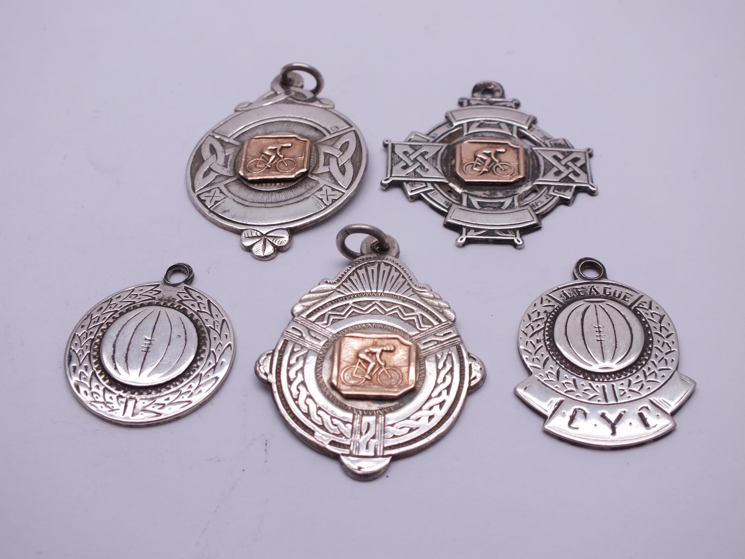 FIVE IRISH STERLING SILVER DUBLIN HALLMARKED MEDALS - weight 45g