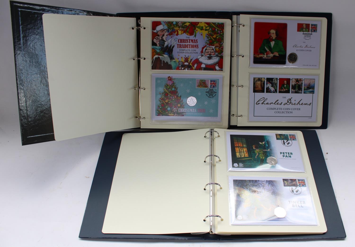Three coin cover collections to include Charles Dickens £2 collection, Christmas traditions 50p covers and Peter Pan 50p covers