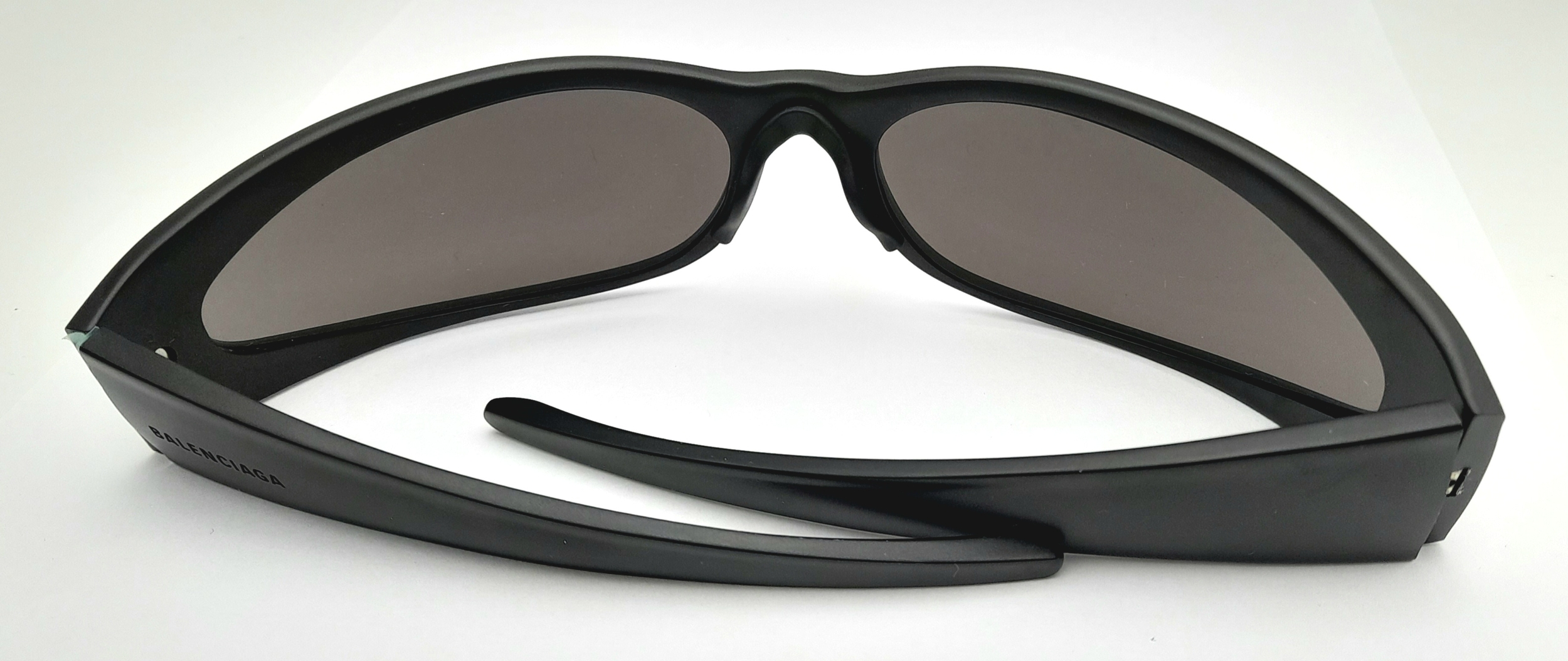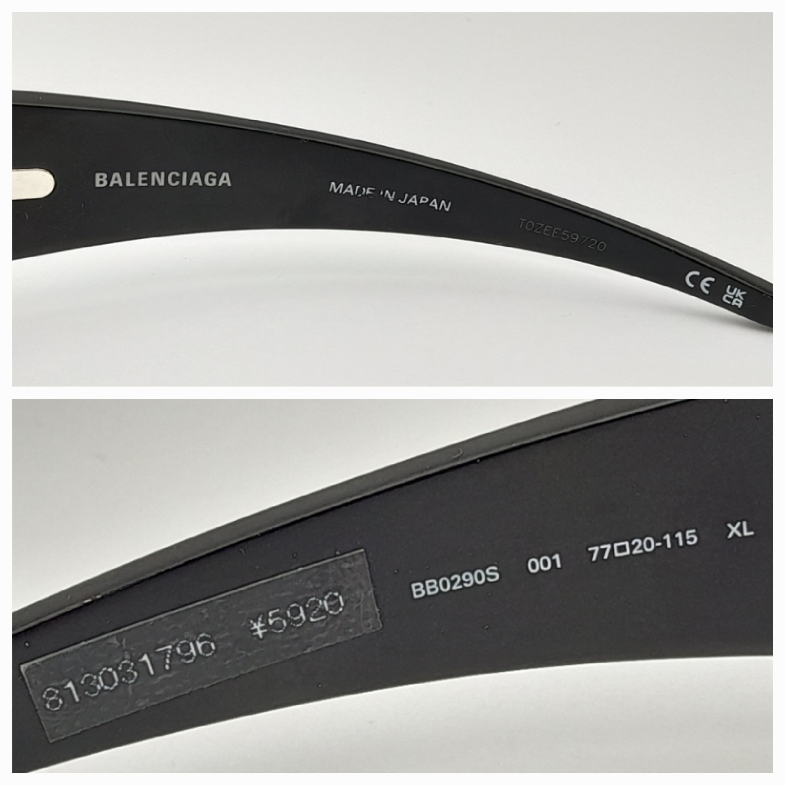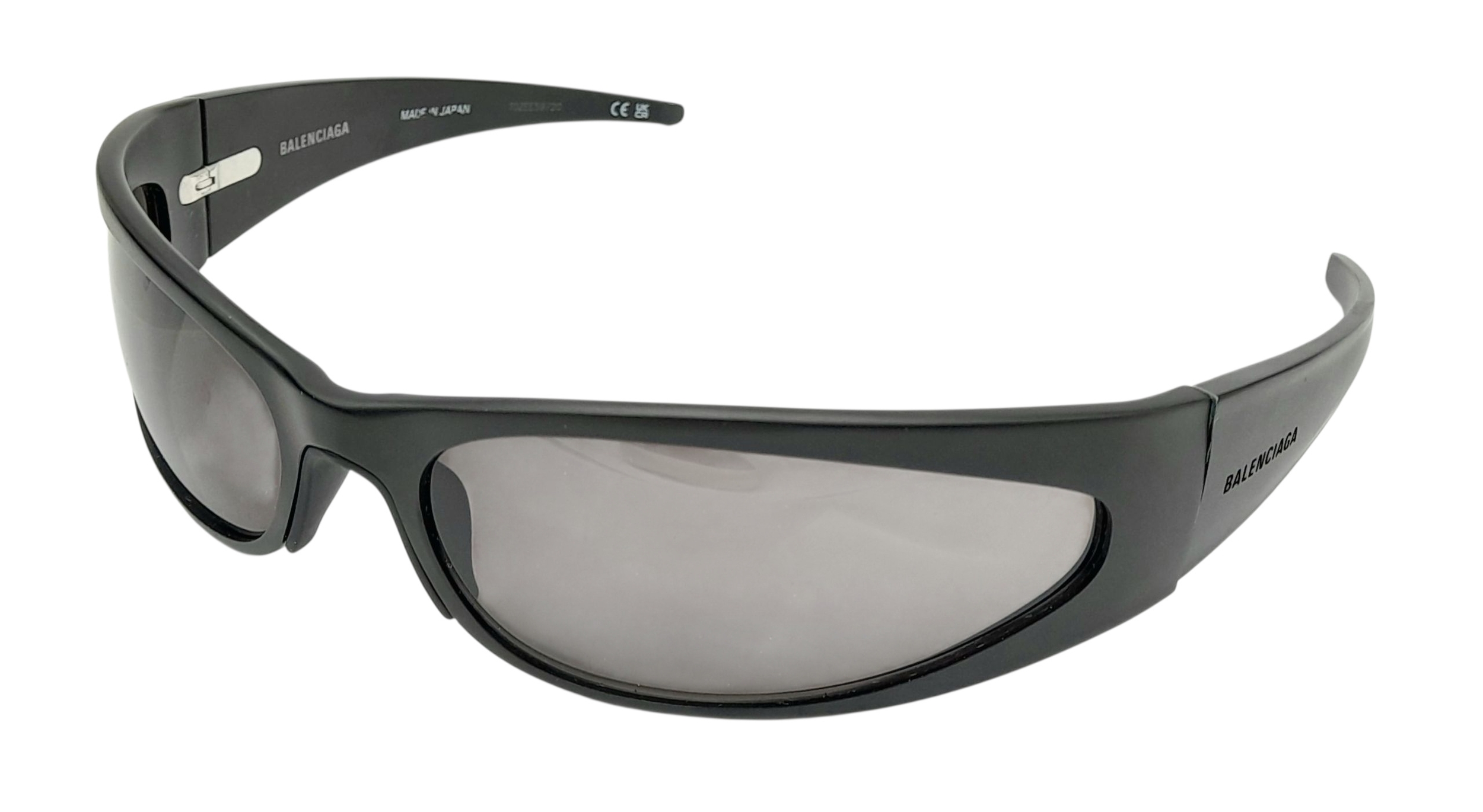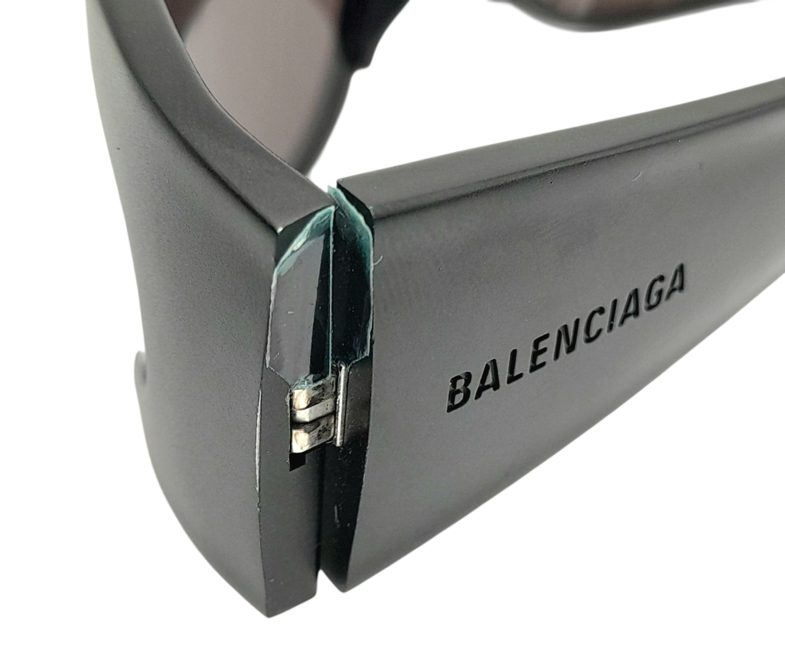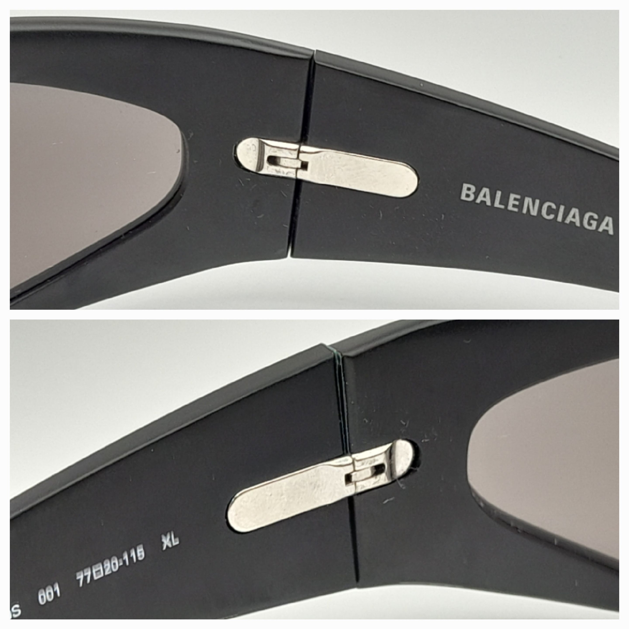 A pair of Balenciaga black aluminium women's sunglasses. Total length 17cm. Comes with original case and paperwork. Ref J289