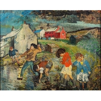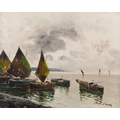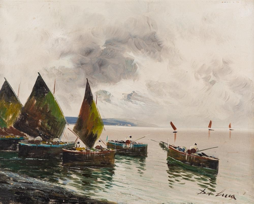 *G. de Luca (Italian, 20th century) Fishing boats in a bay, possibly the bay of Naples signed lower right oil on canvas 39 x 49cm