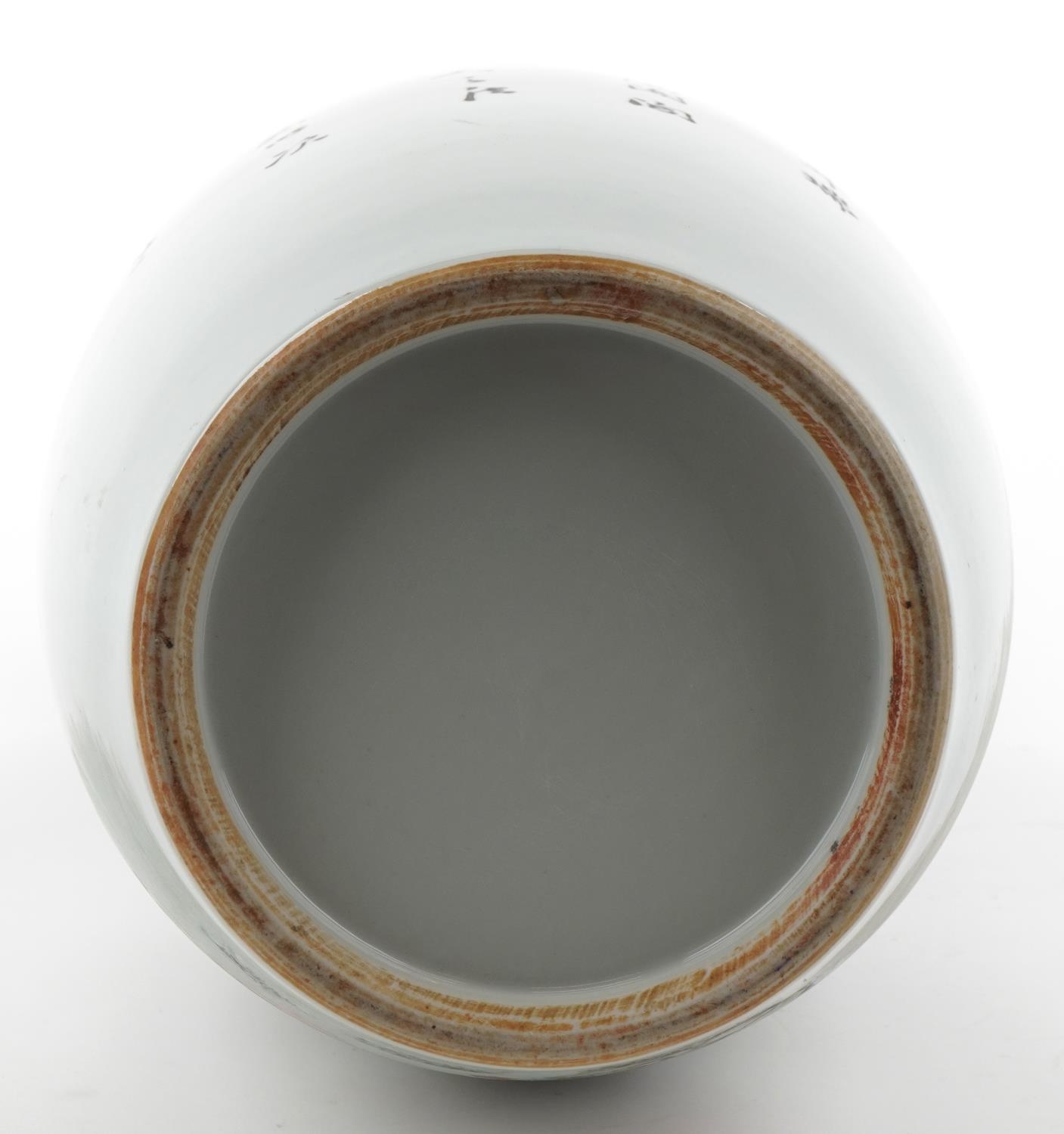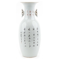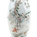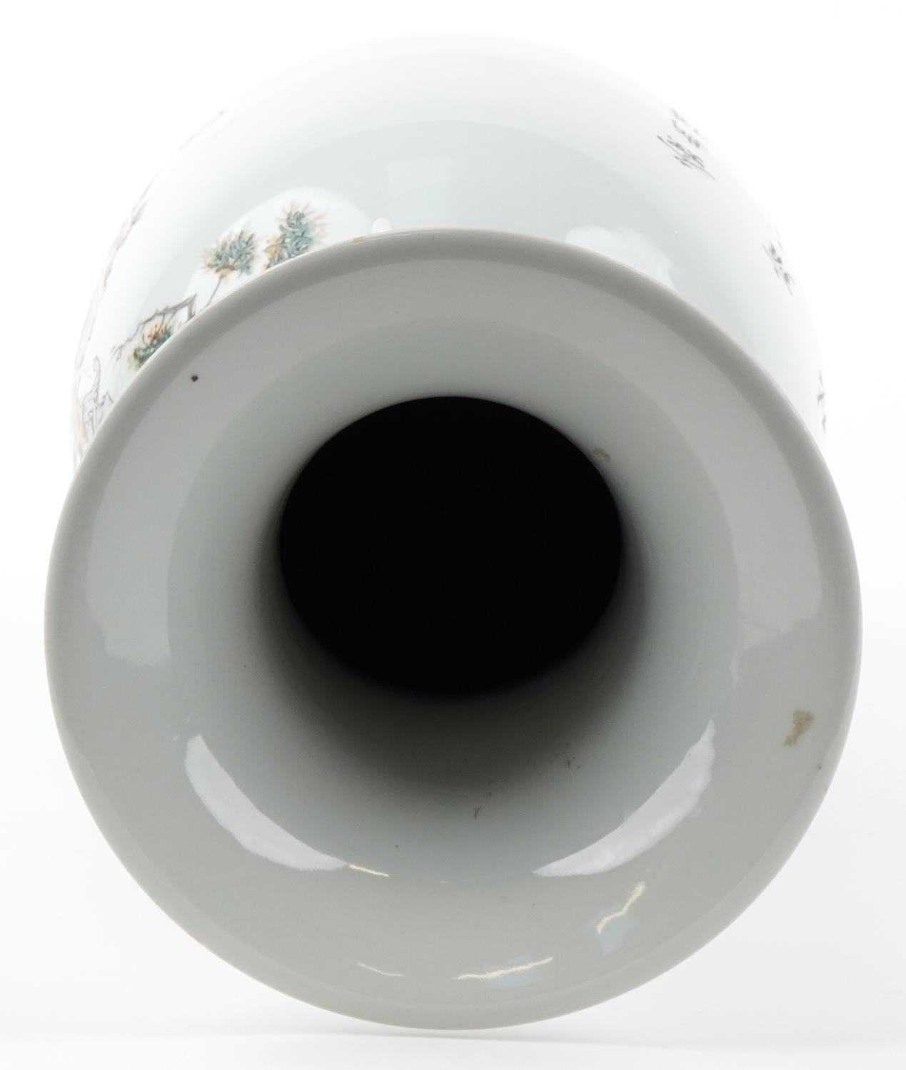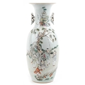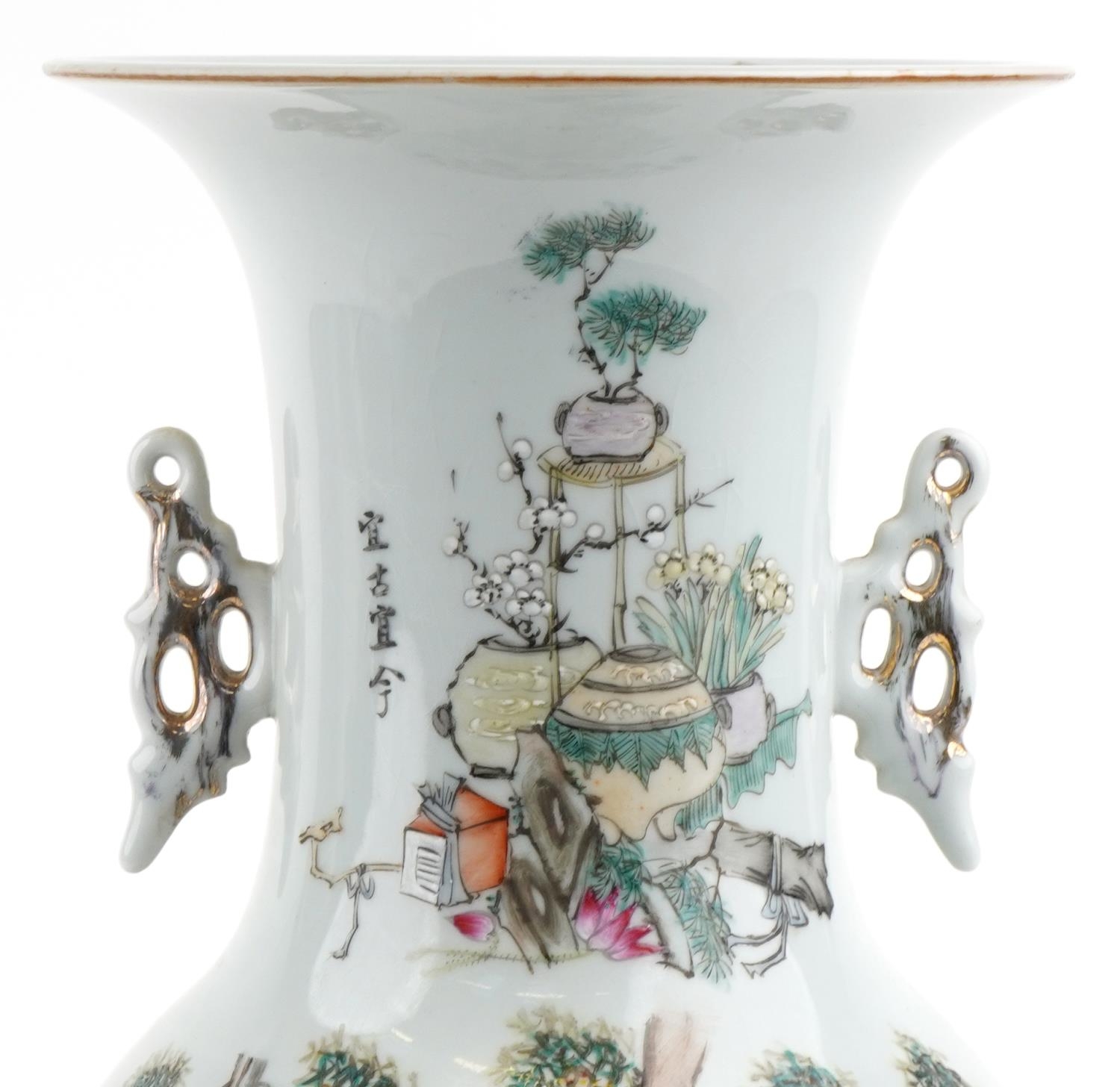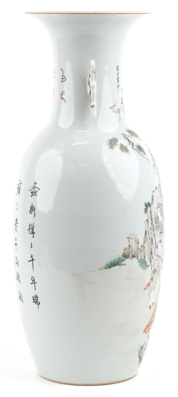 A large Chinese porcelain vase with twin handles hand painted with children playing under a tree and script, 47.5cm high.