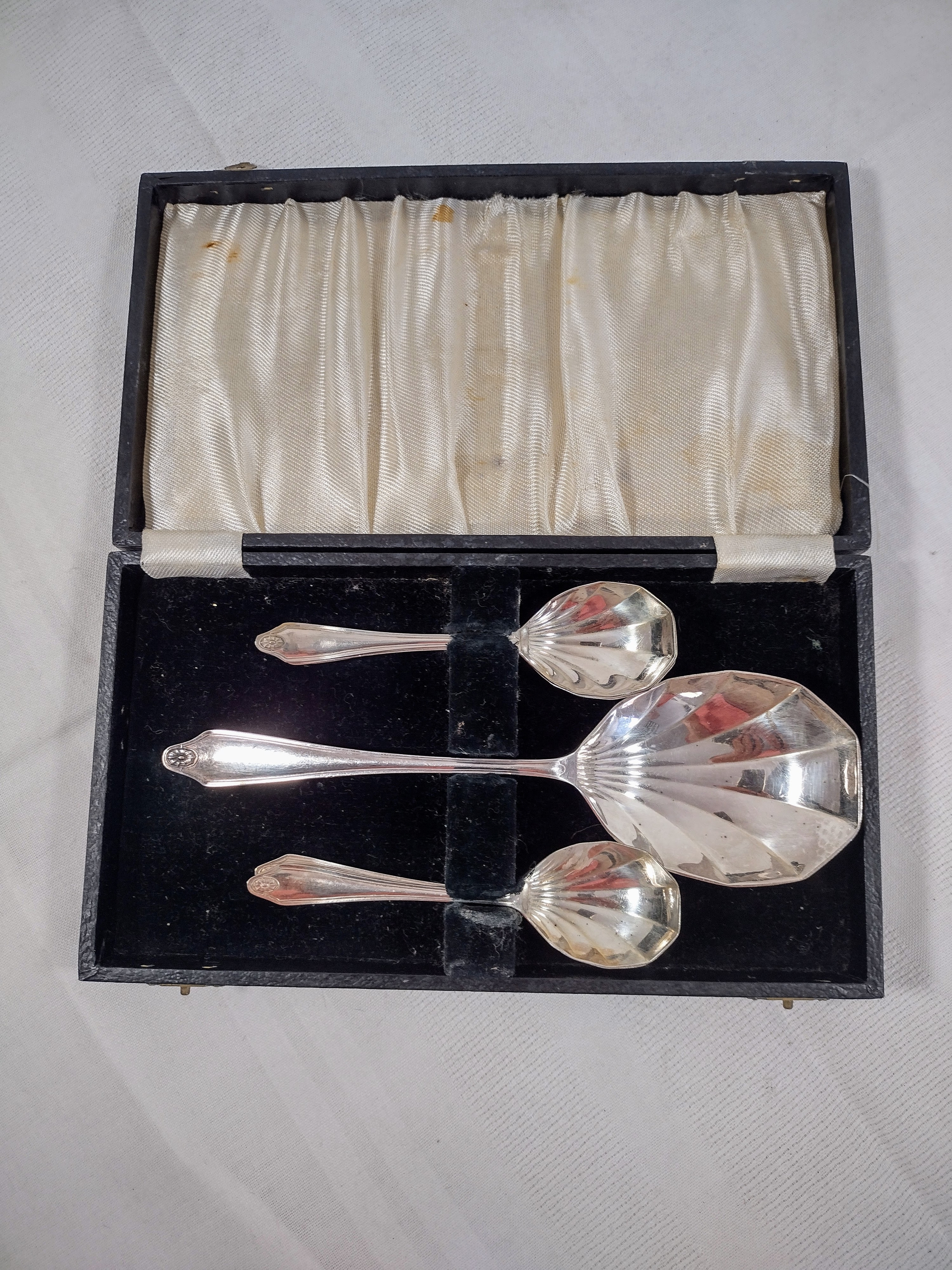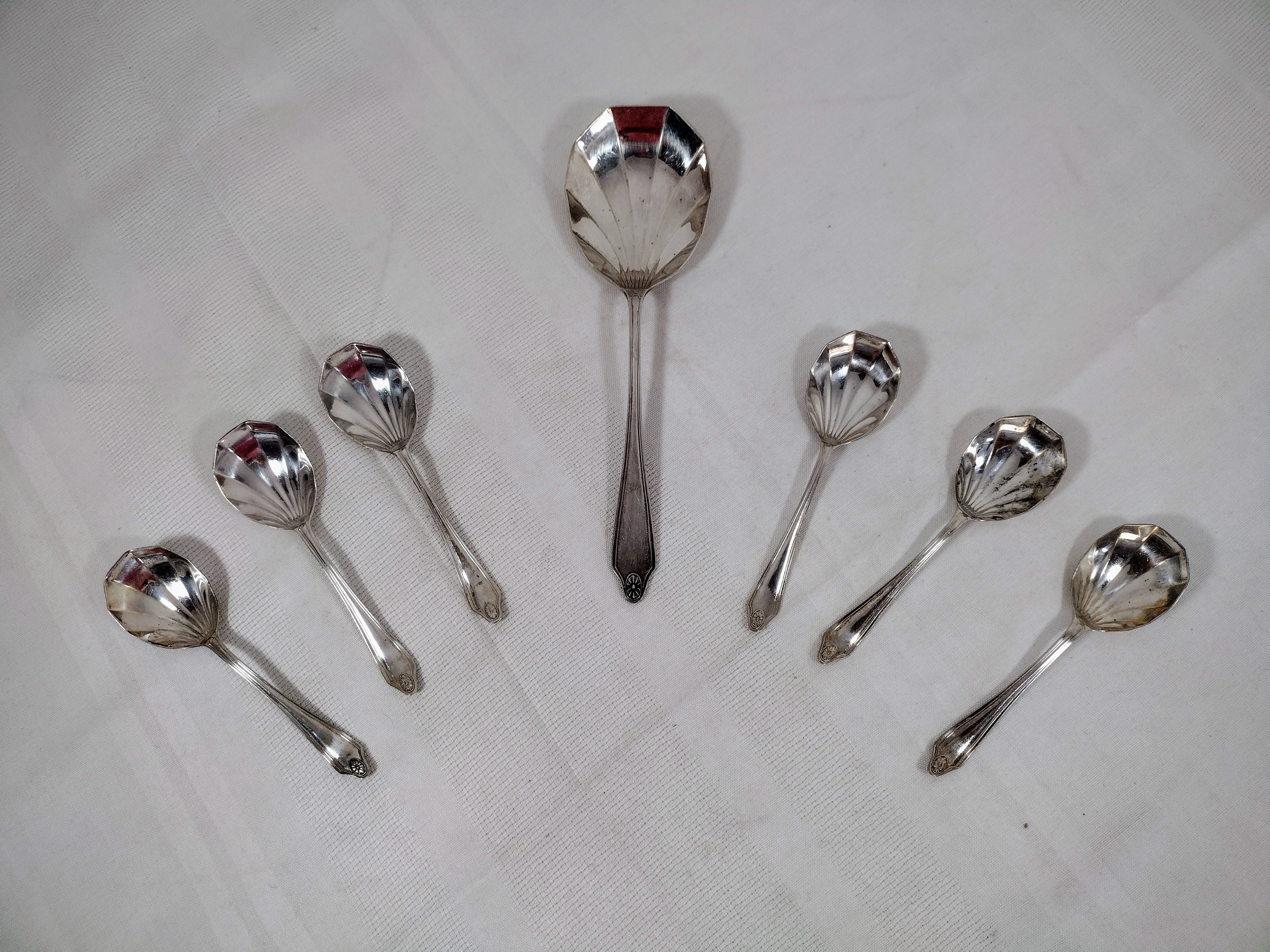 C Bros Sheffield Art Deco Silver Plate Dessert Spoons x 6 Serving Spoon x 1