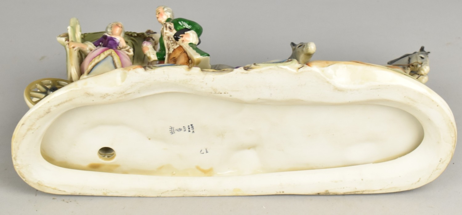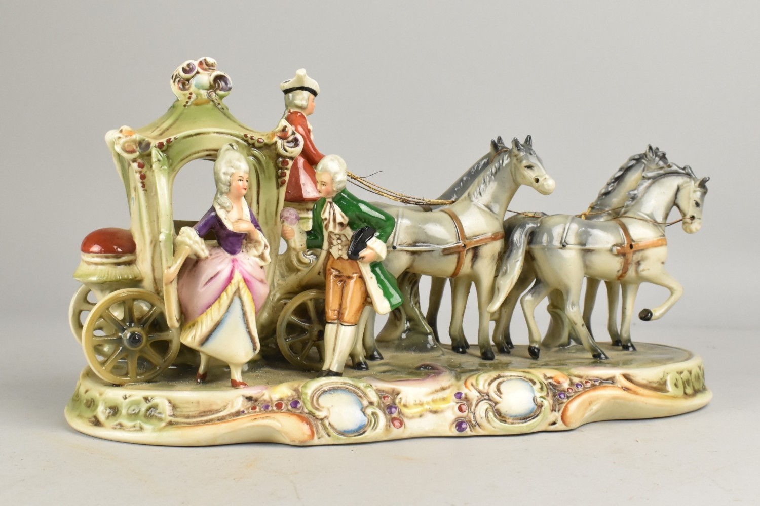 A Mid Century German Figure Group, Lady Stepping From Carriage, 31cms Wide