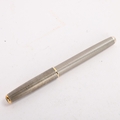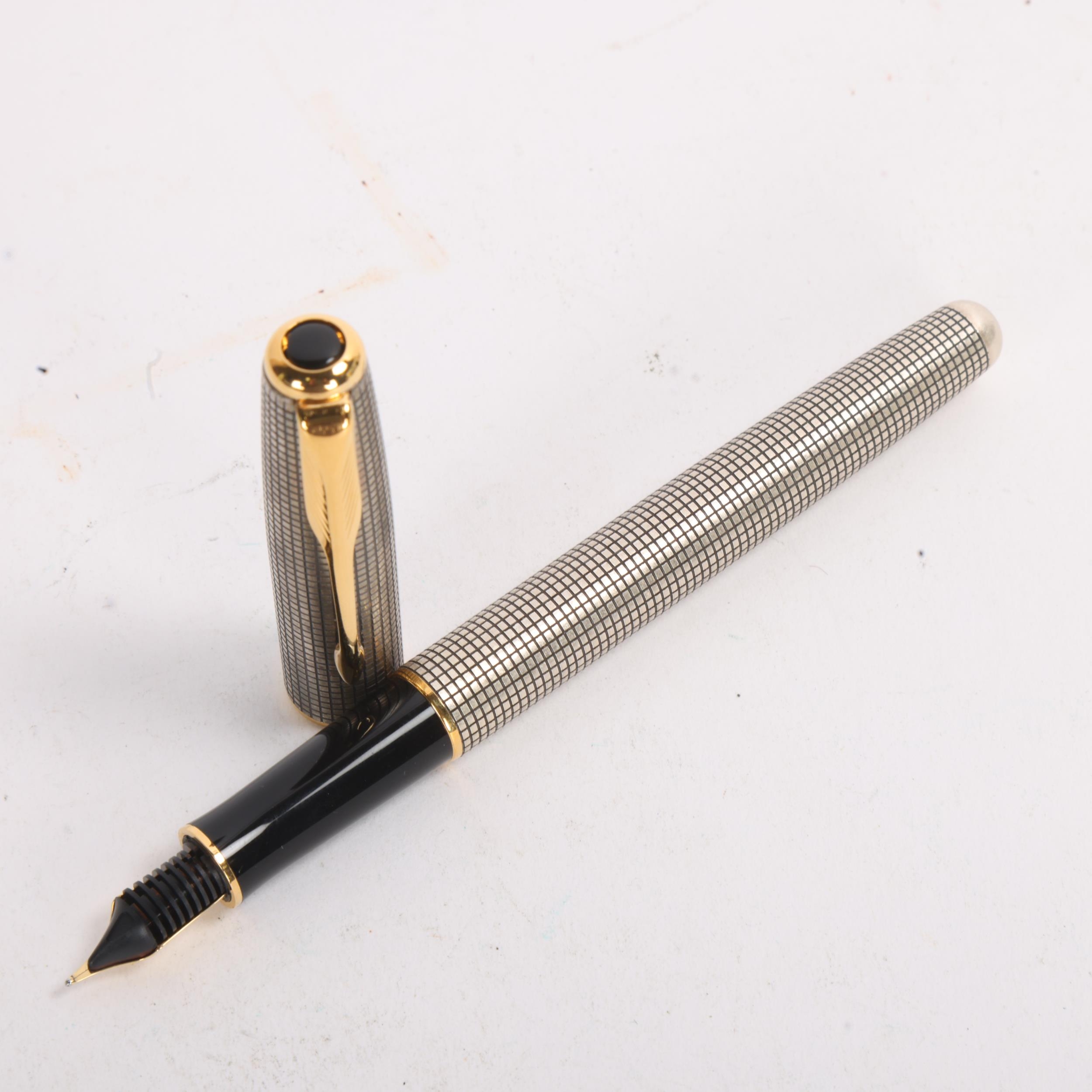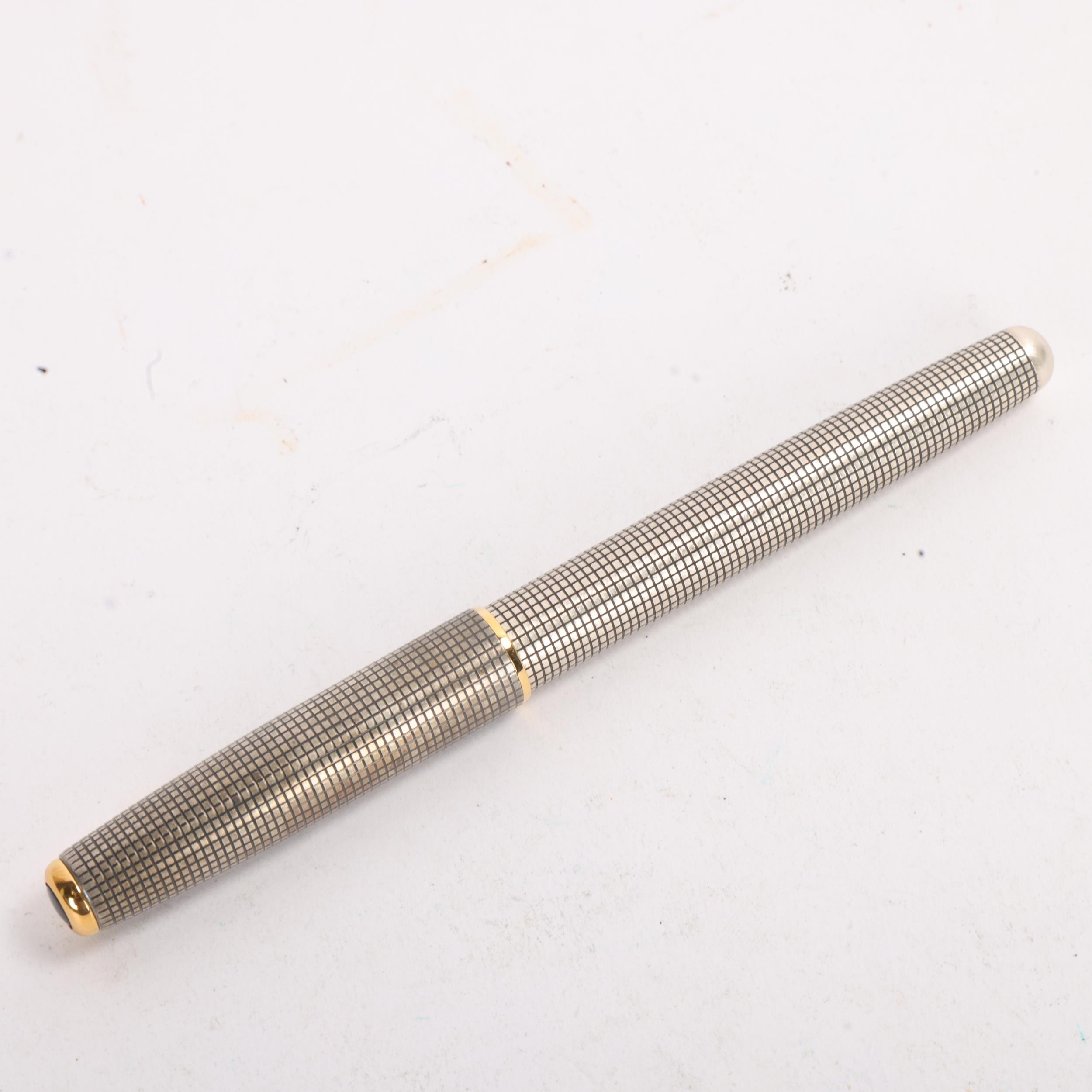 A Parker Cisele fountain pen, with unmarked white metal crosshatch body, 18k nib and converter