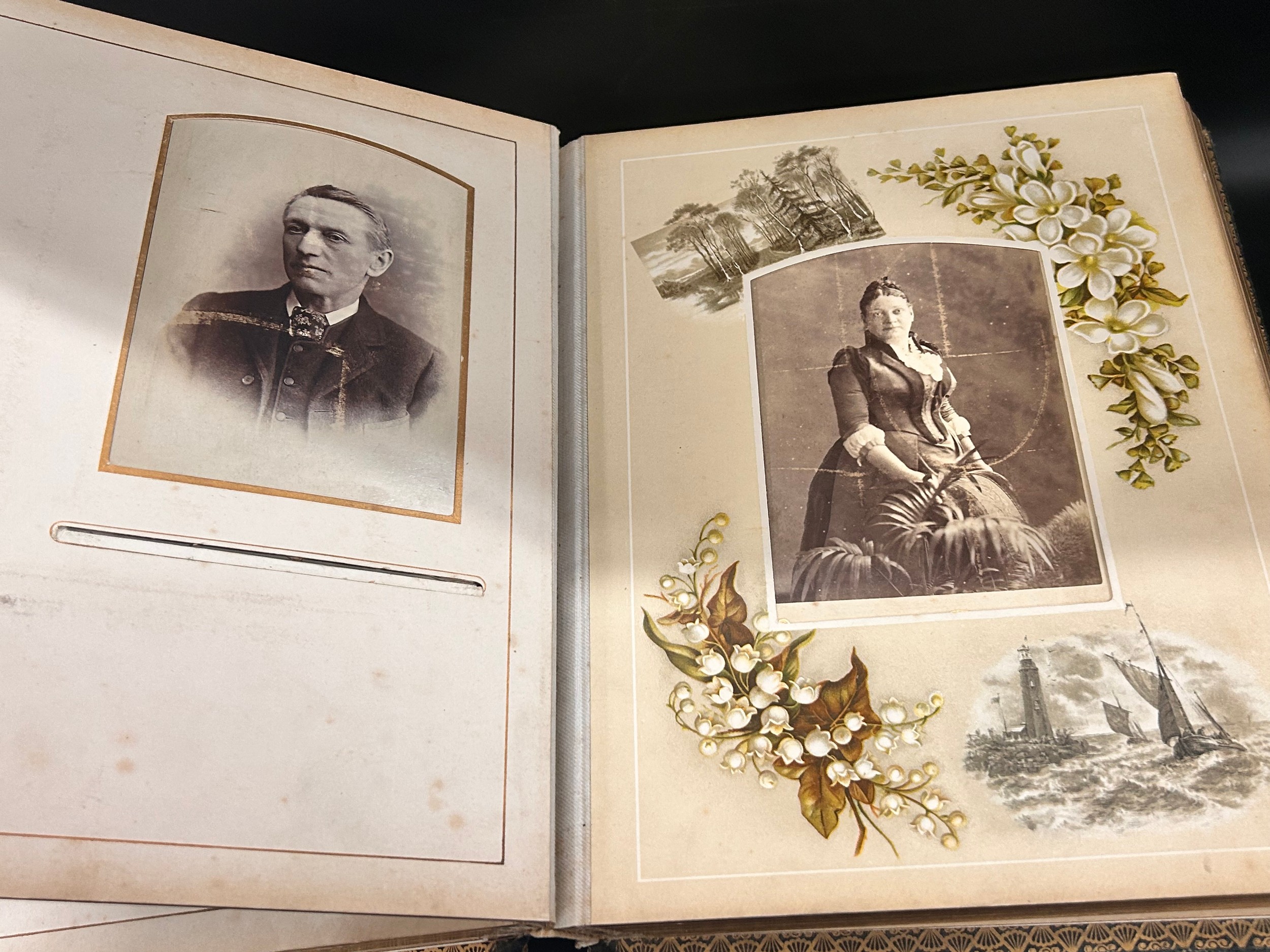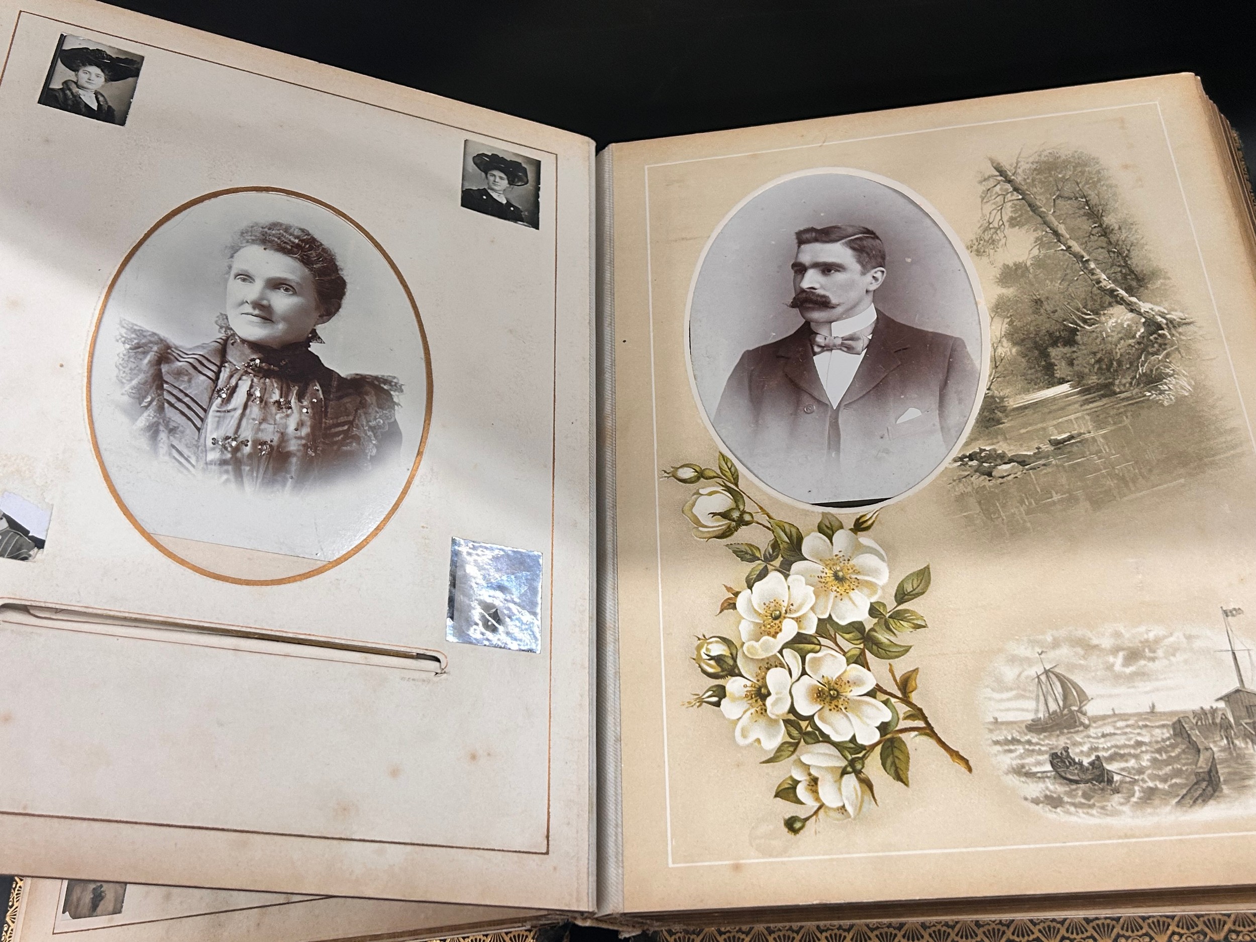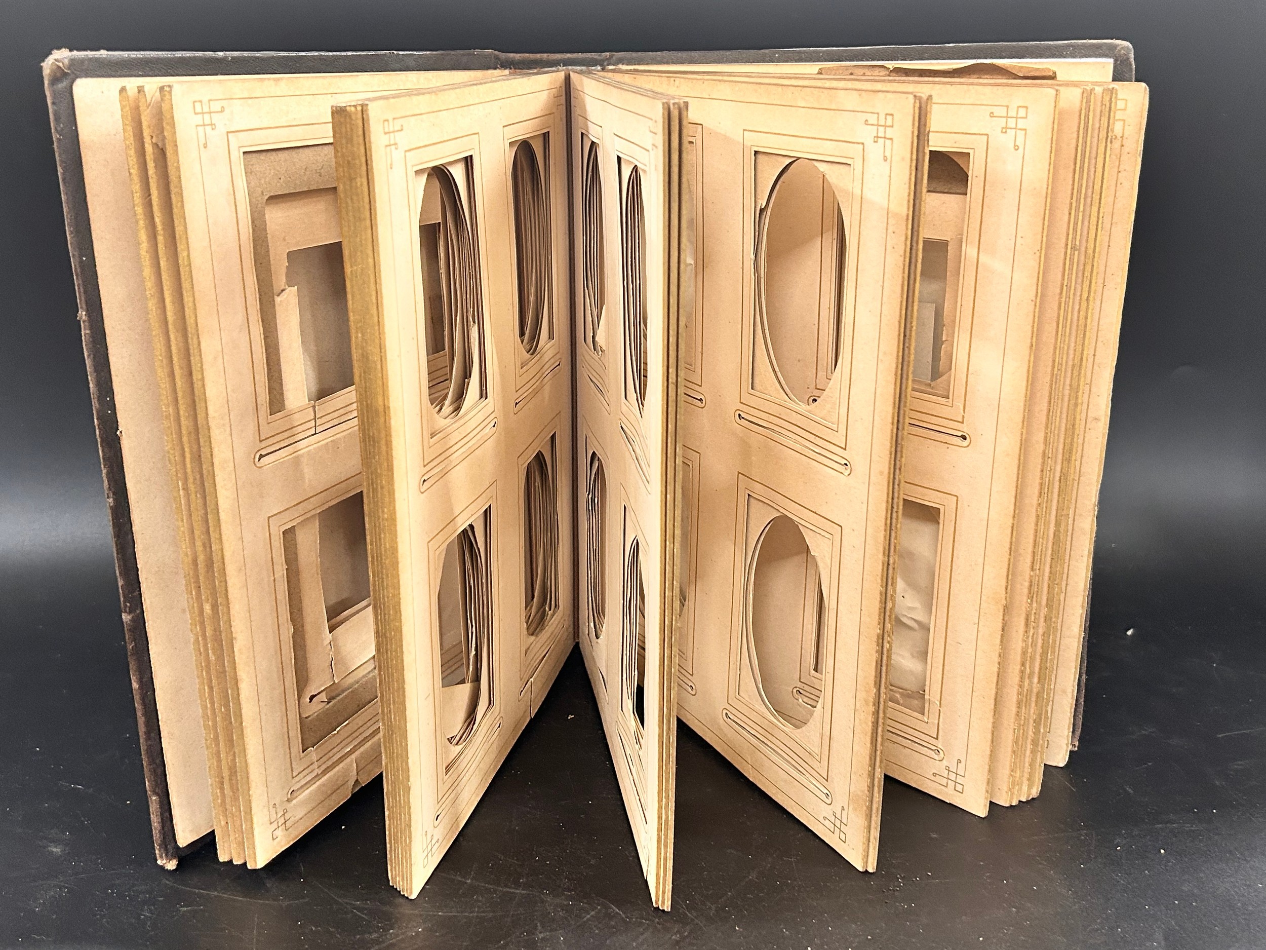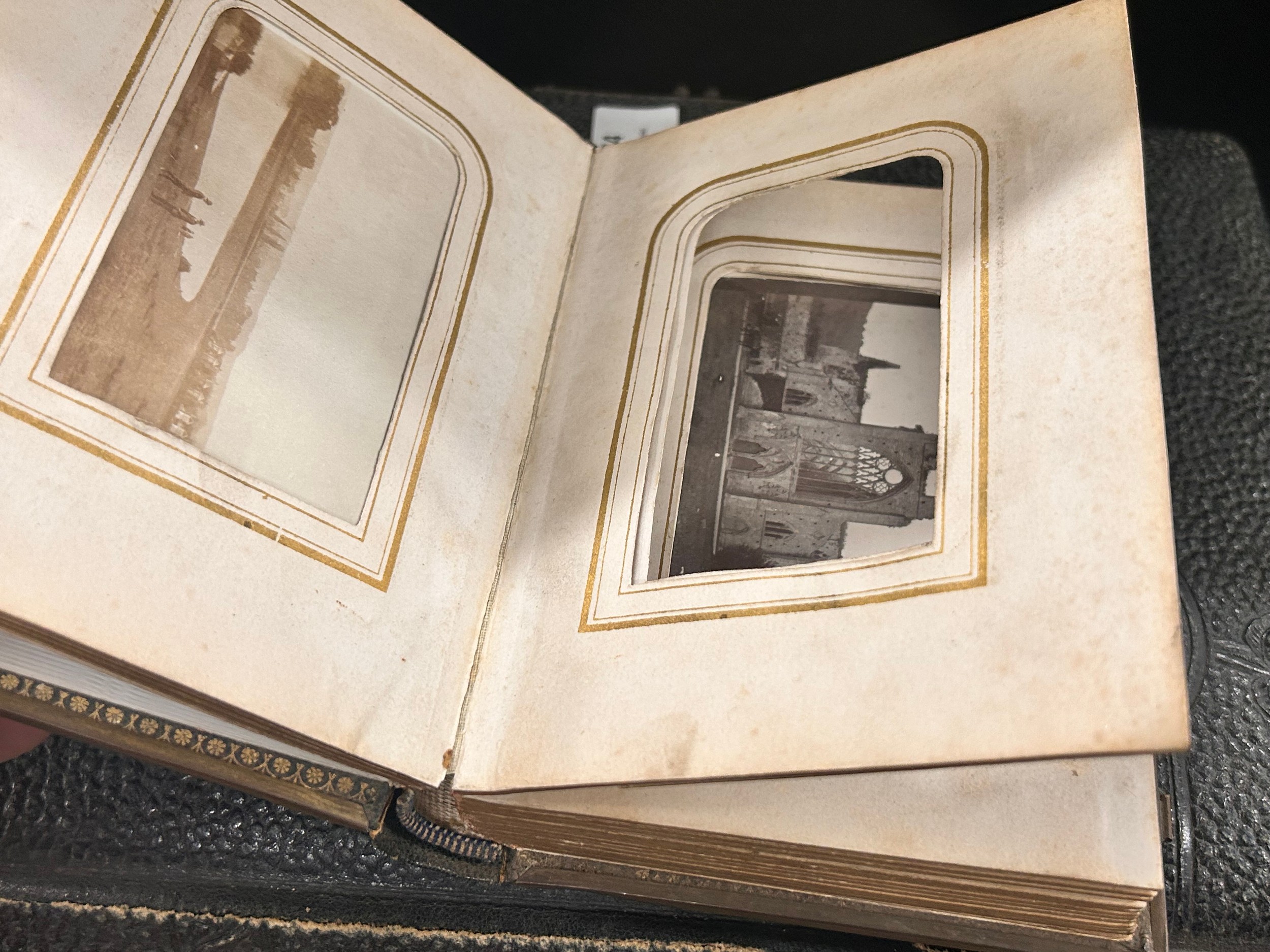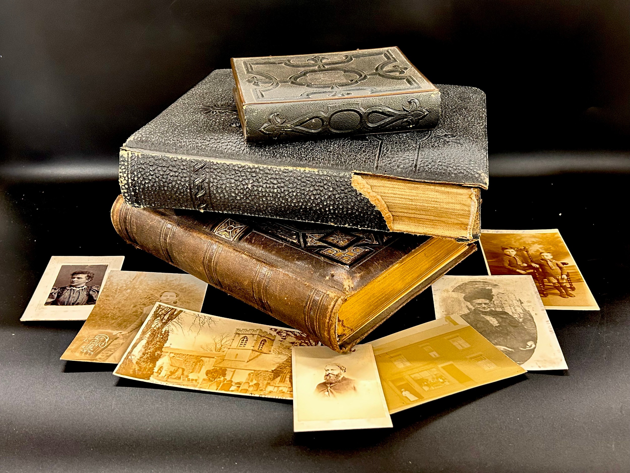 Three Victorian photo albums 1860-1880, one with Victorian photos, one half full, one empty, together with loose photos