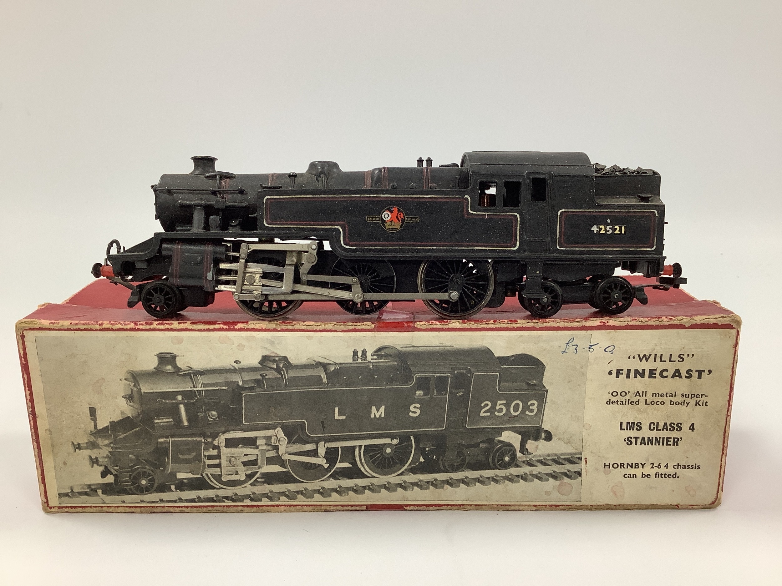 A boxed kit-built (Wills Finecast) 00 gauge Stanier 2-6-4 tank engine, fitted to a Hornby-Dublo 2-rail chassis (as per kit instructions), untested.