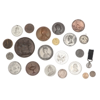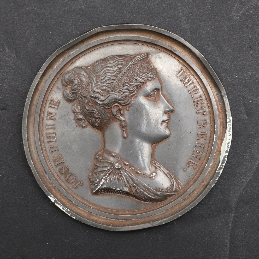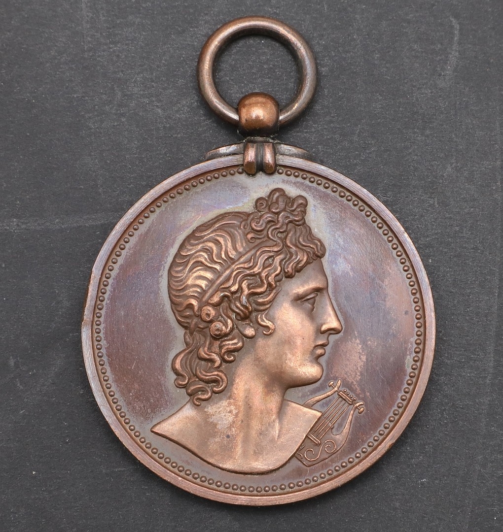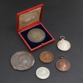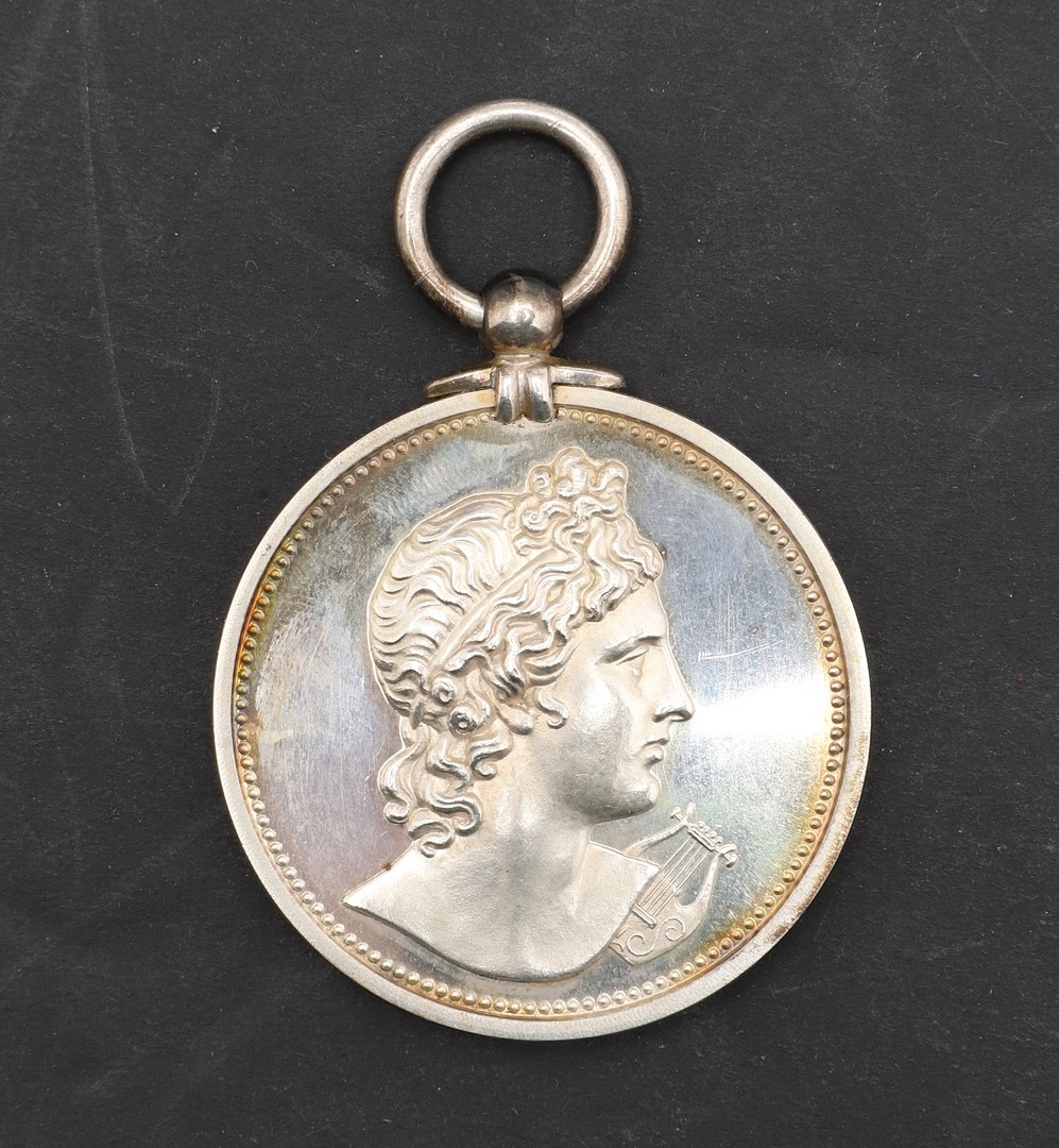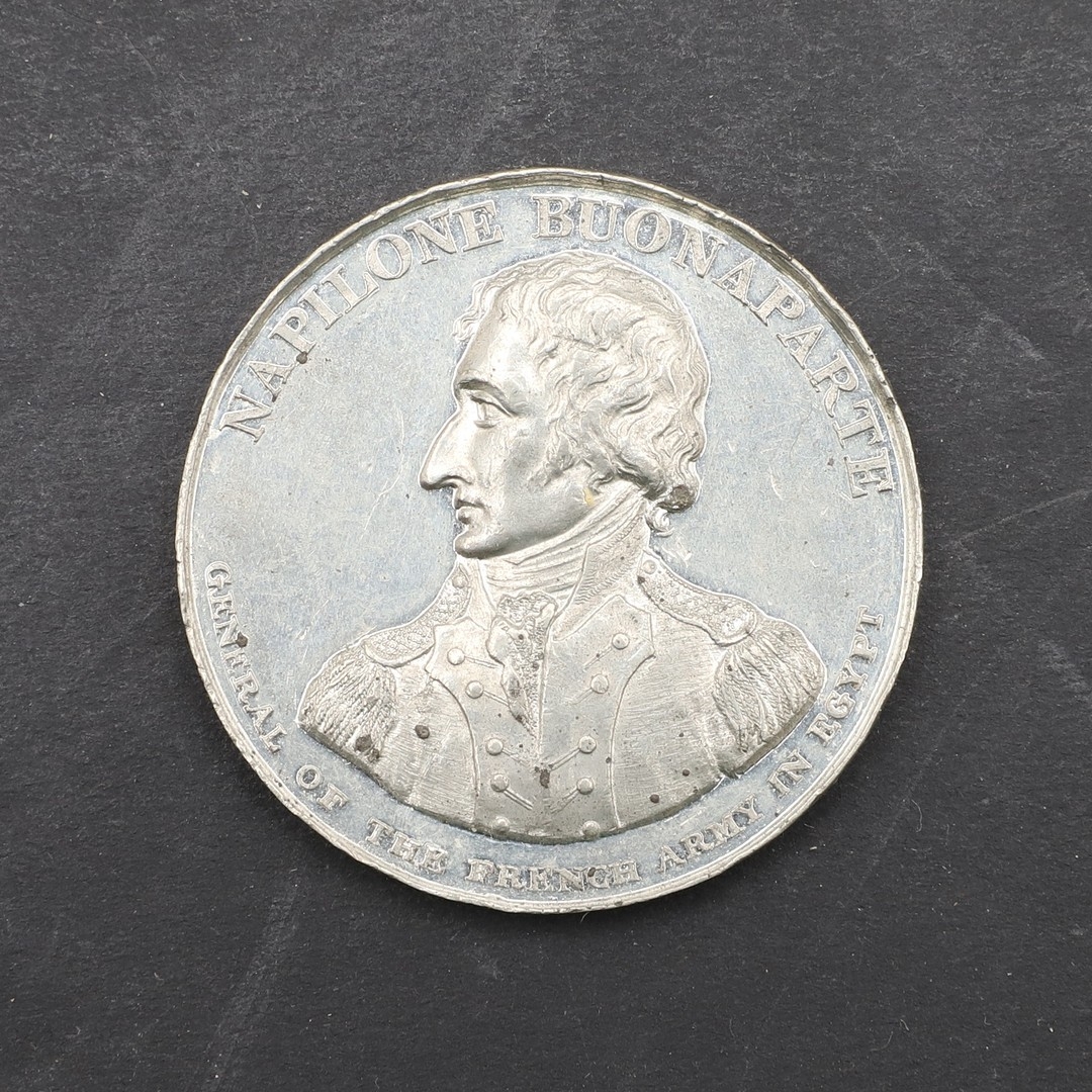 A WHITE METAL MEDAL COMMEMORATING NAPOLEON IN ALEXANDRIA AND OTHER PRESENTAION MEDALS. A white metal medal commemorating Napoleon's landing at Alexandria in 1798, 37 mm. Dassier's medal for James II, two Royal School of Music awards and two others. 6 items.