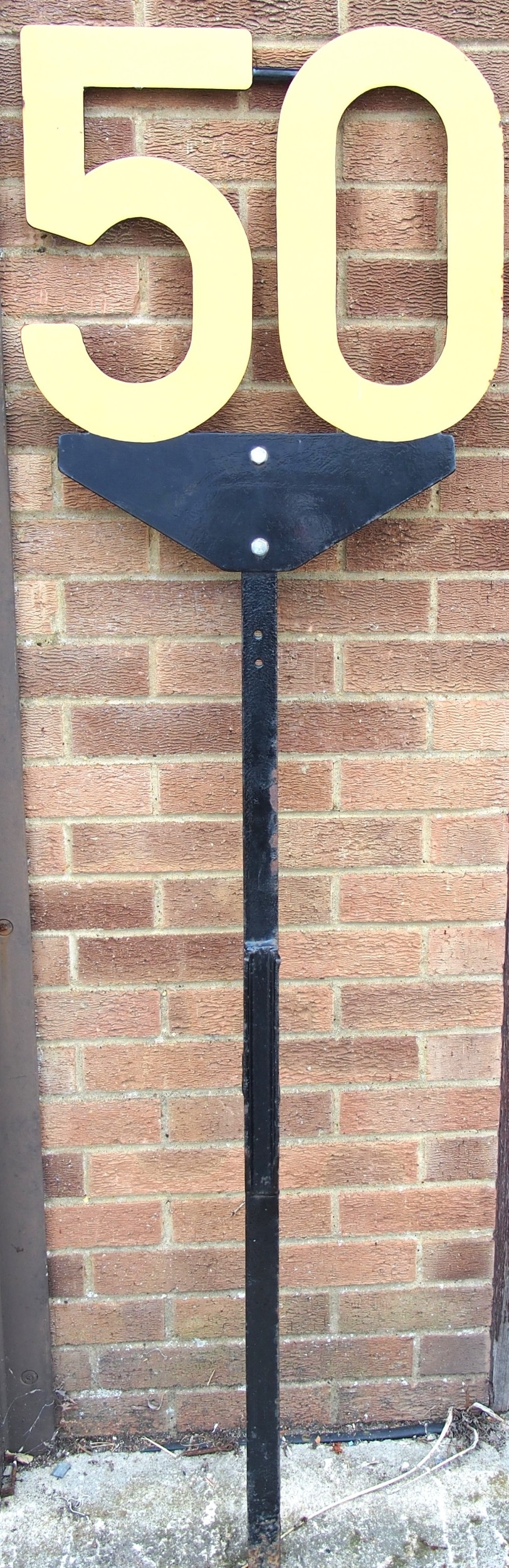 50 MPH lineside speed restriction marker, restored, stands 72" tall. (SHD) (Dispatch by Mailboxes/Collect from Banbury Depot)