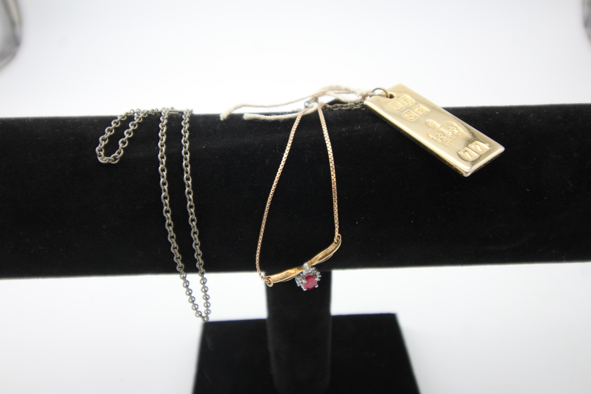 Queen Elizabeth II silver anniversary pendant and a single ruby stone necklace